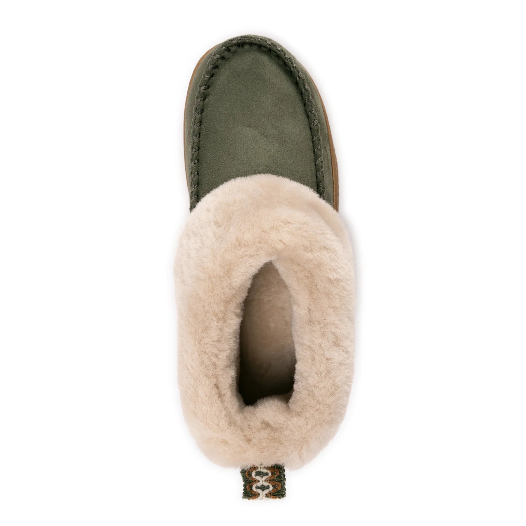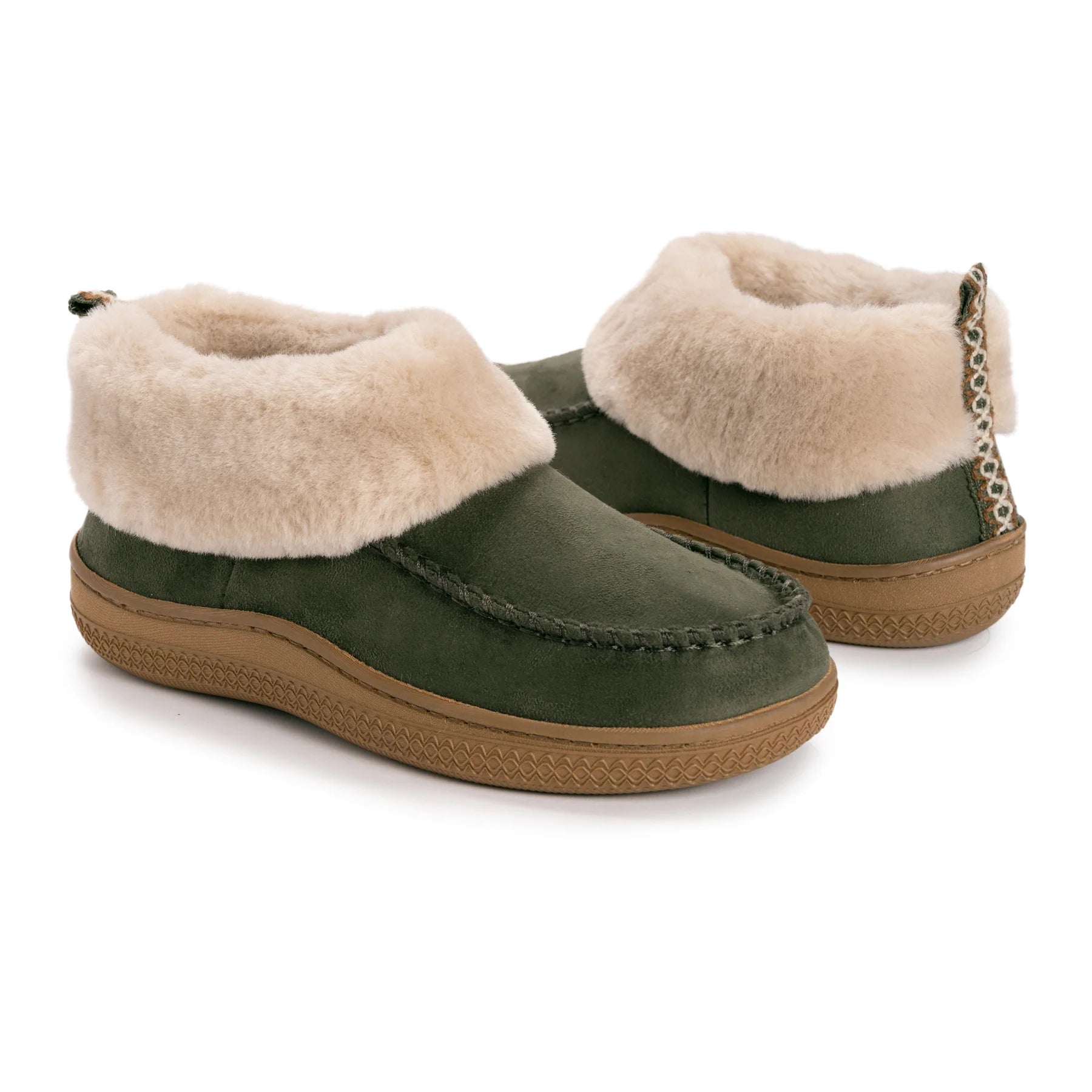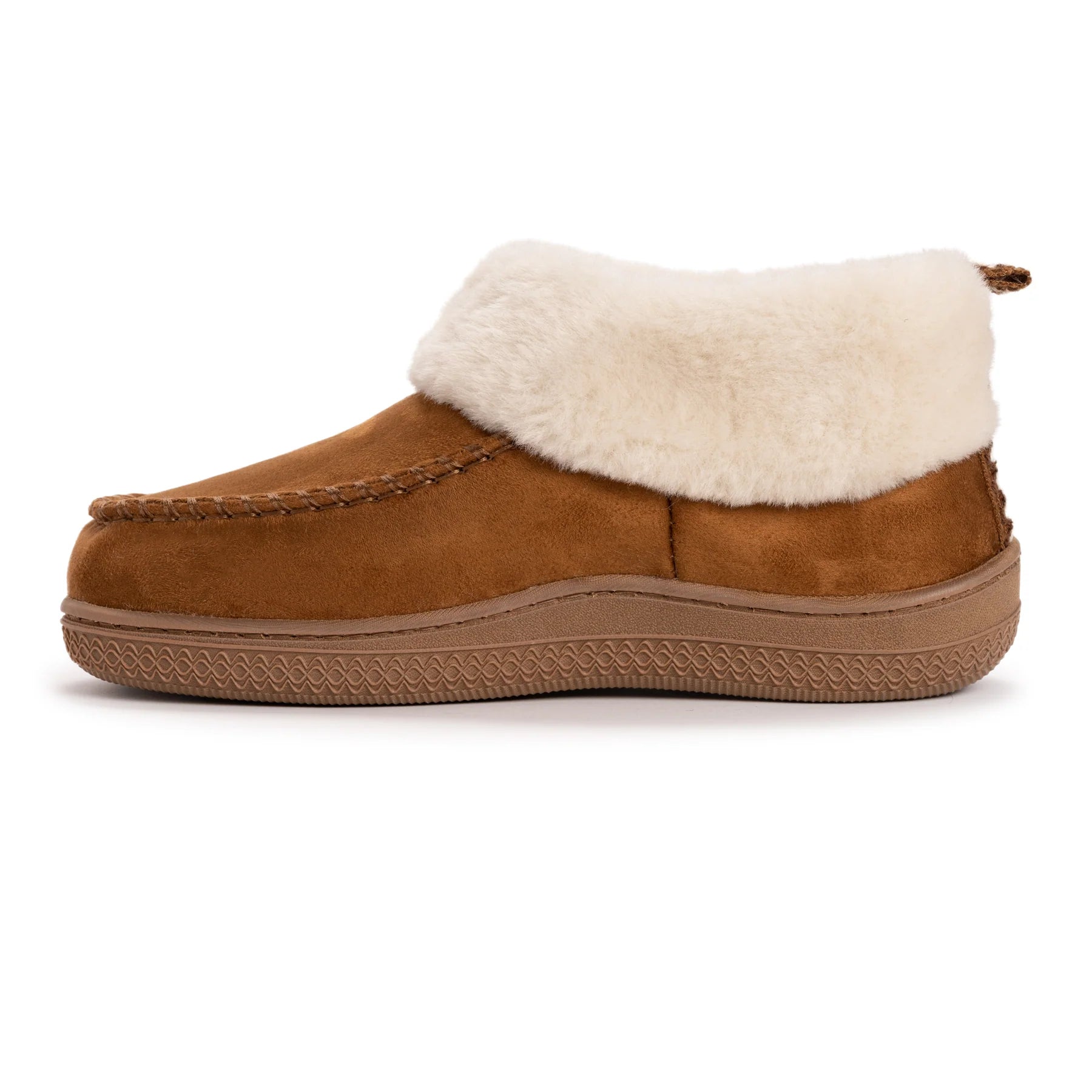Experience comfort and Style in MUK LUKS Women's Salah Slipper, featuring a durable indoor/outdoor sole, non-slip thread bottom, and a cozy faux fur cuff.