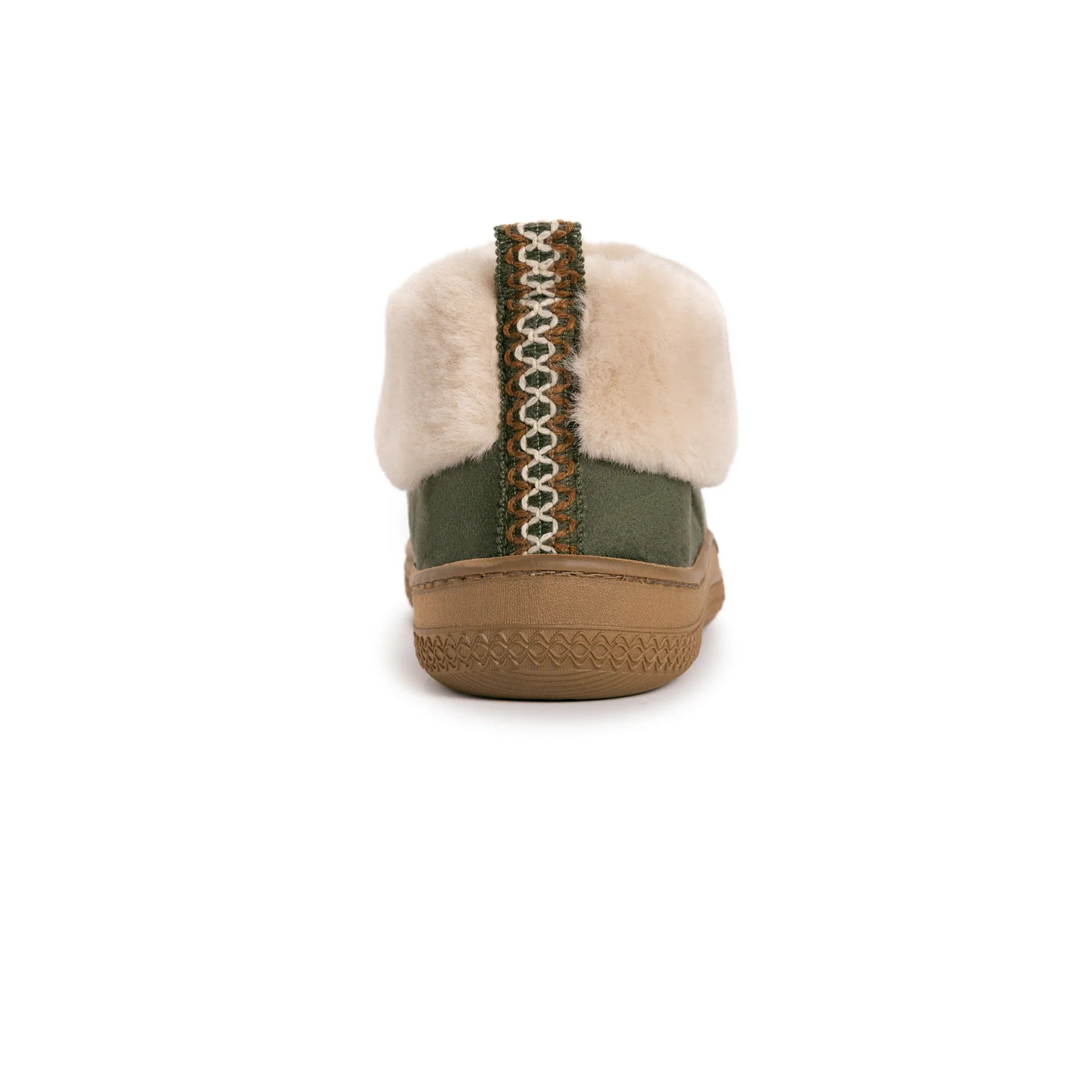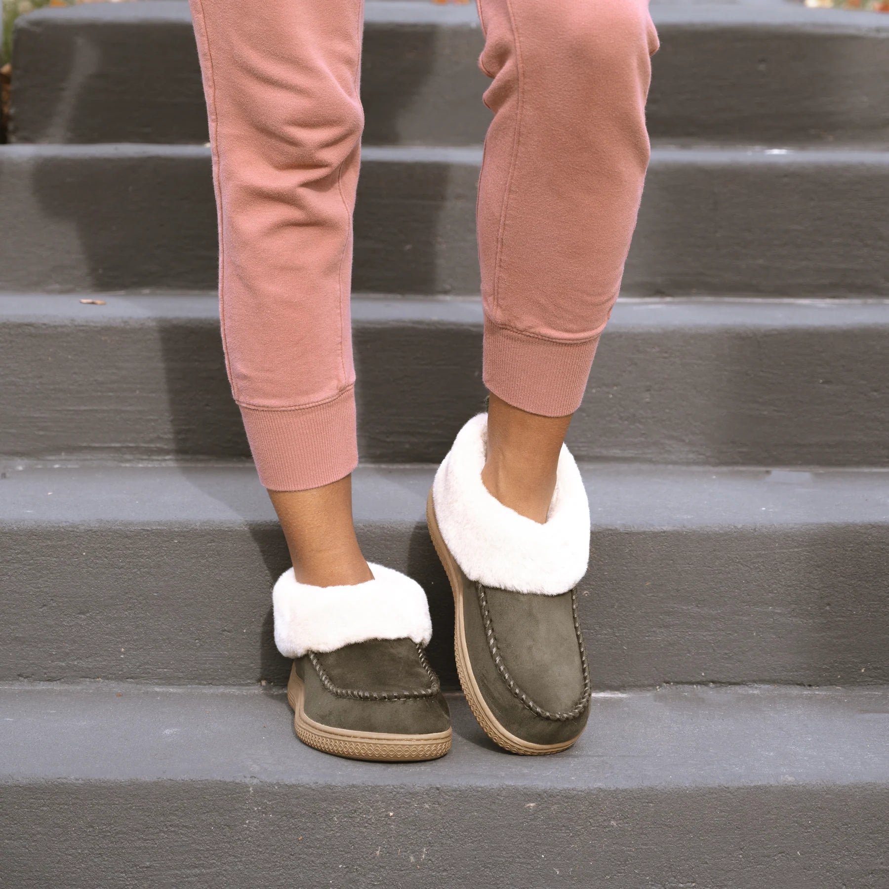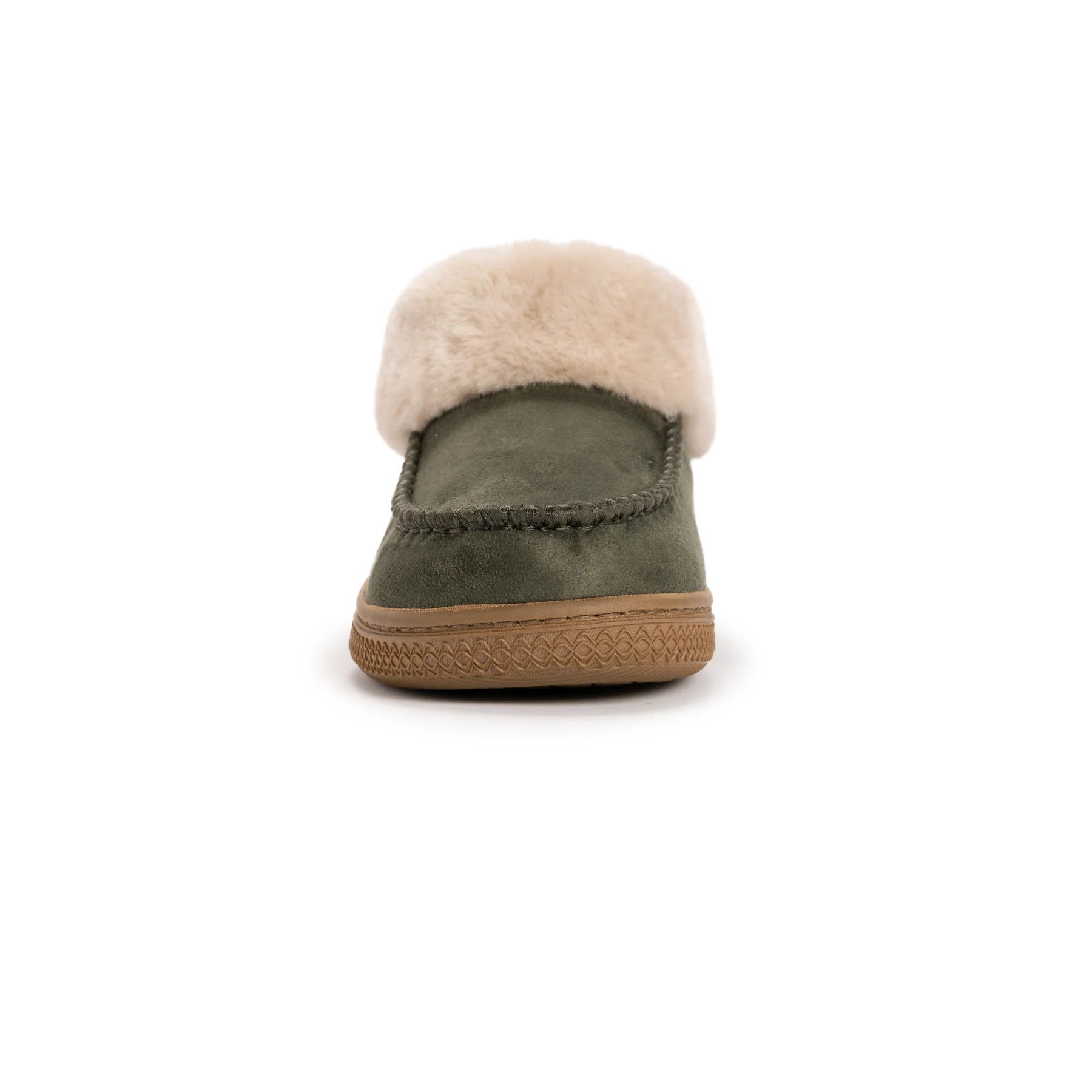 Experience comfort and Style in MUK LUKS Women's Salah Slipper, featuring a durable indoor/outdoor sole, non-slip thread bottom, and a cozy faux fur cuff.