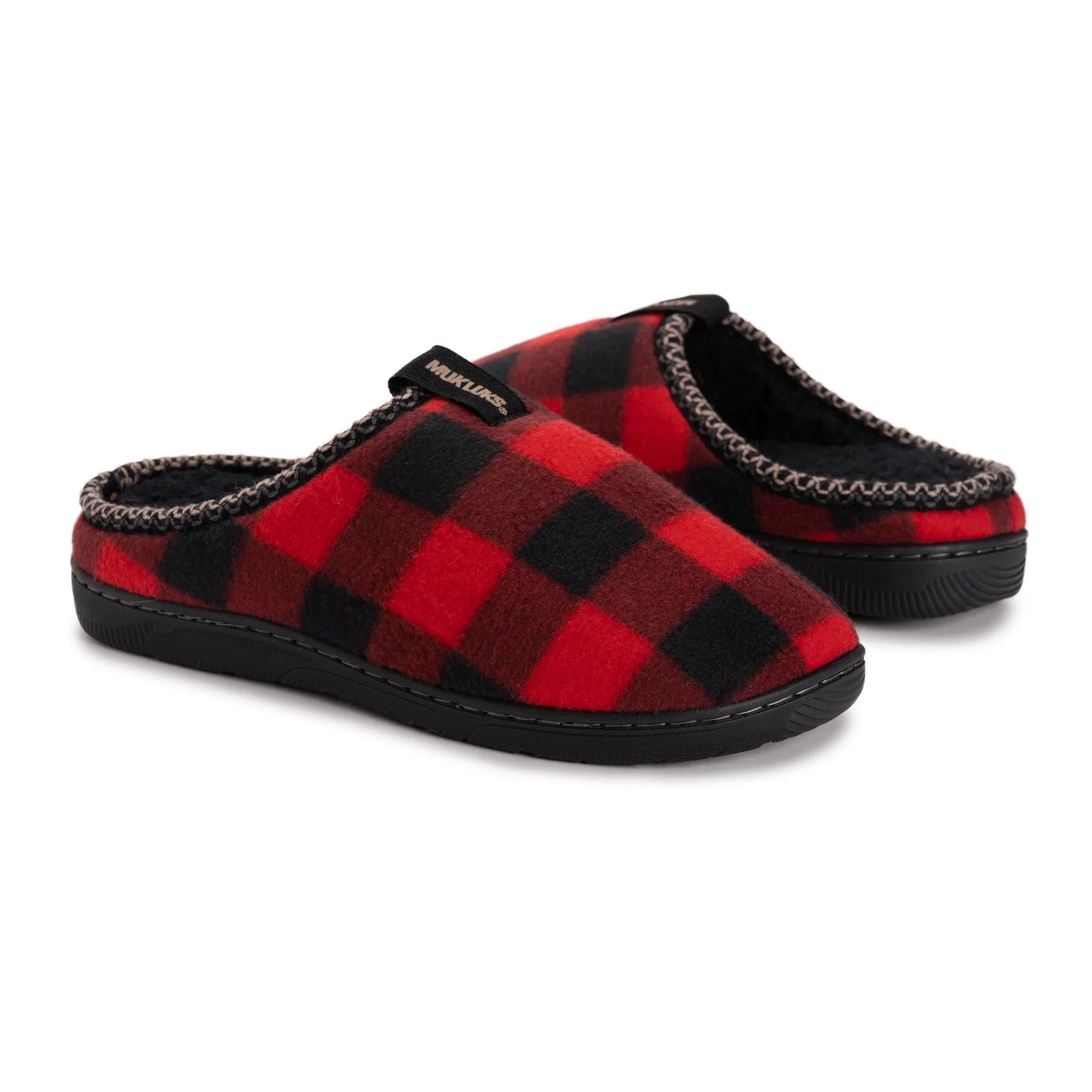 Slip on these luxurious MUK LUKS Men's Jaydon Clog Slipper and let your stress fade away. These cozy clogs offer a relaxed fit in a fleece knit and soft faux shearling insole to keep you warm while the durable sole lets you relax indoors or outdoors.