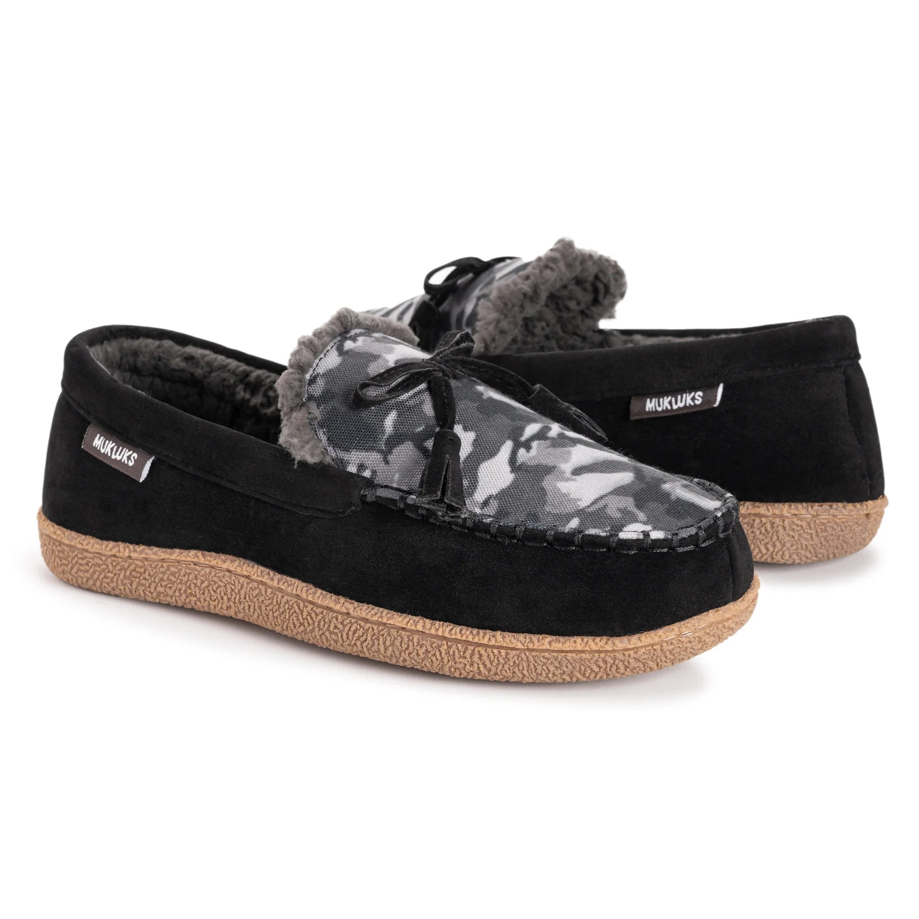 When temps start to drop, stay warm in MUK LUKS® Men's Tanver Slippers. Faux fur makes a cozy lining that will keep toes toasty while foam insoles add an extra element of comfort making these moccasins a cold weather essential.
