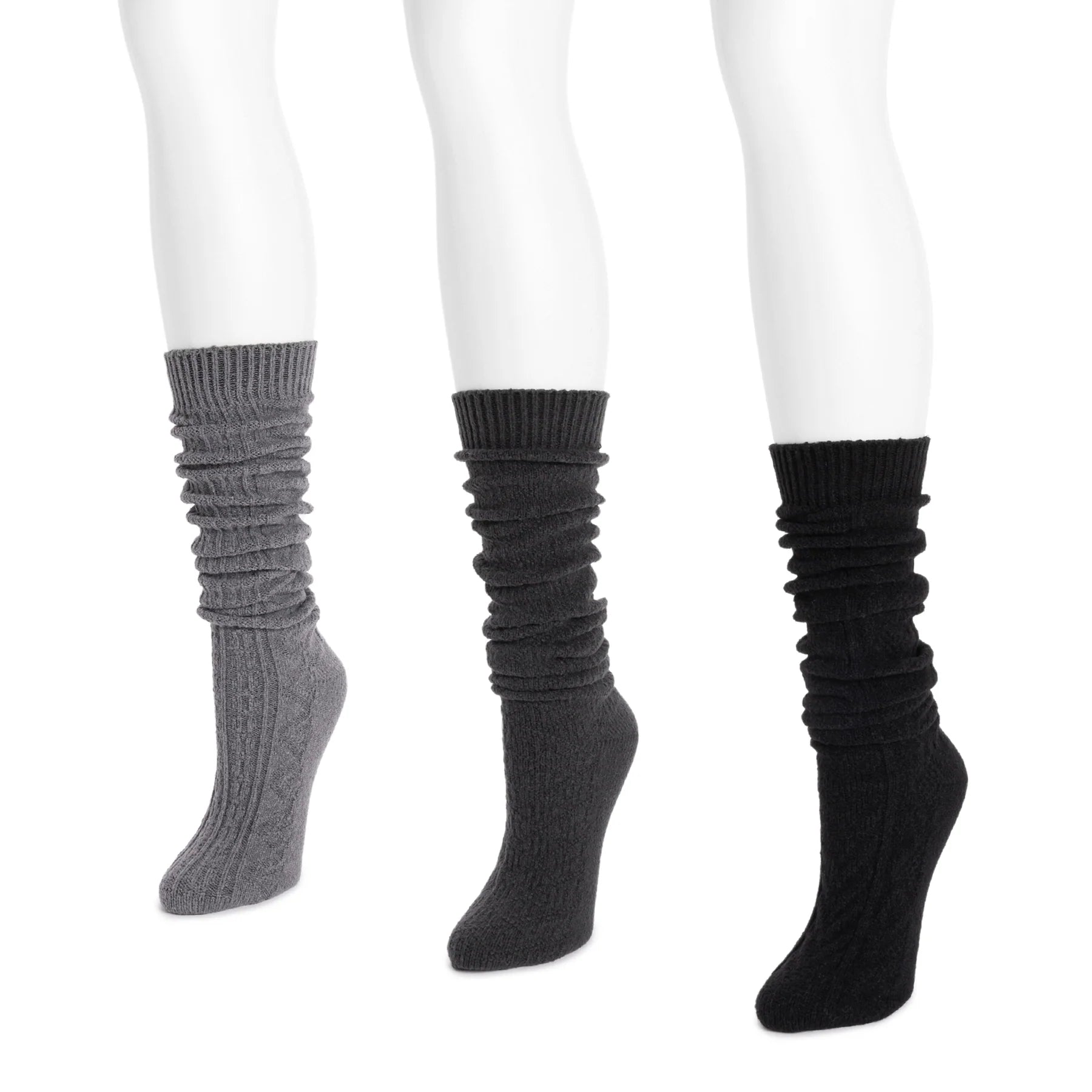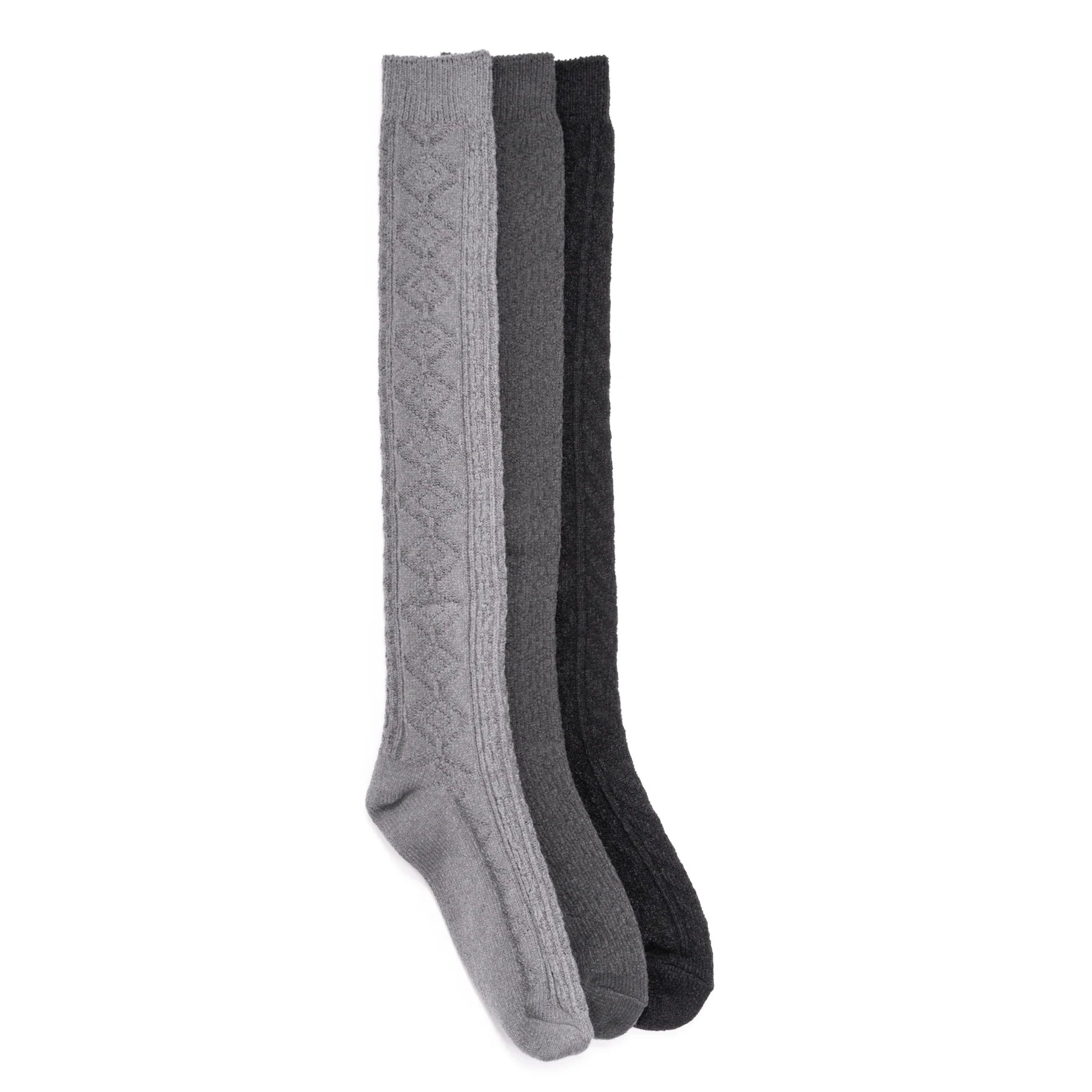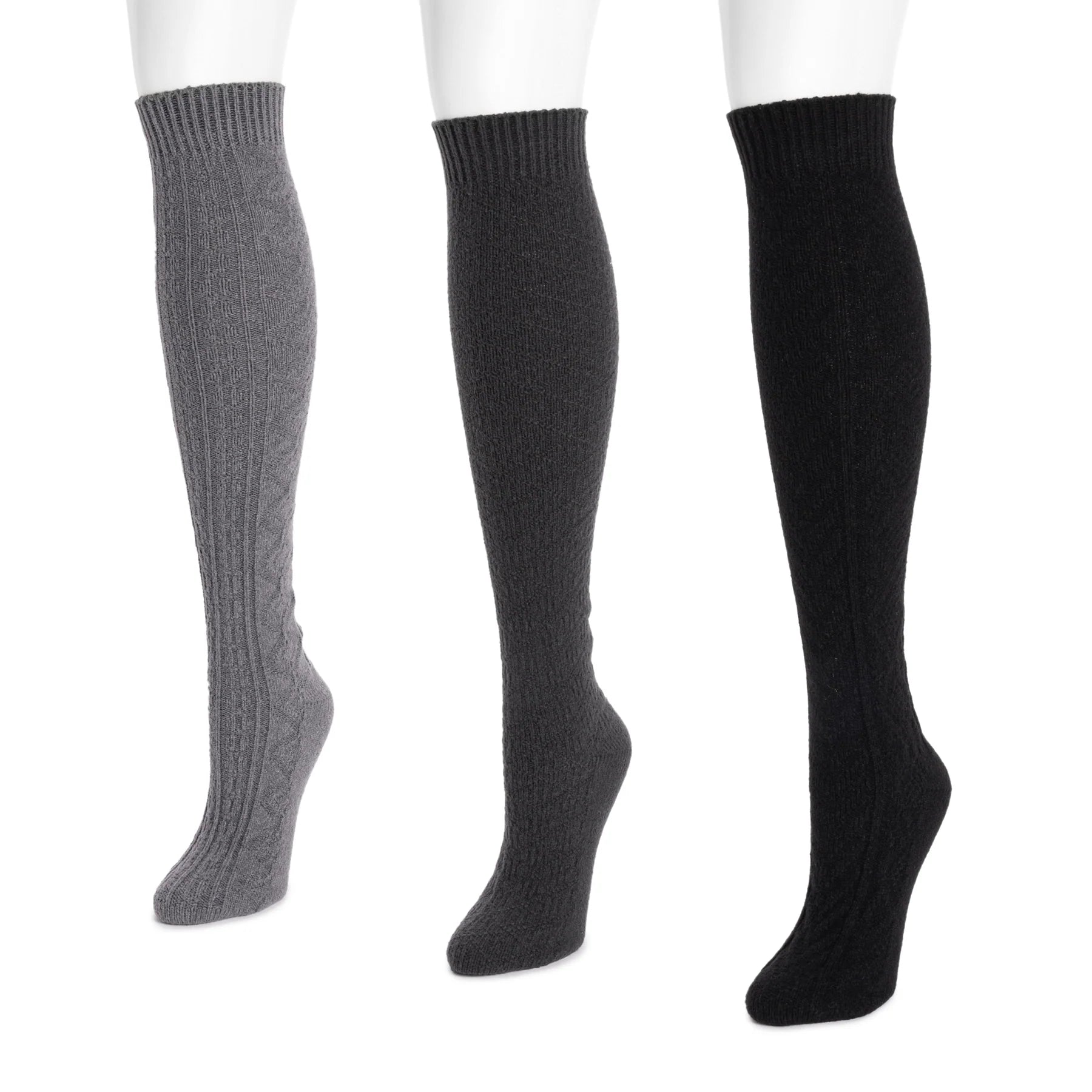 MUK LUKS® Women's 3 Pair Pack Knee High Socks can’t be beat for cozy warm feet. Featuring a luxurious sweater knit design, these fashionably modern socks keep legs toasty warm in style.