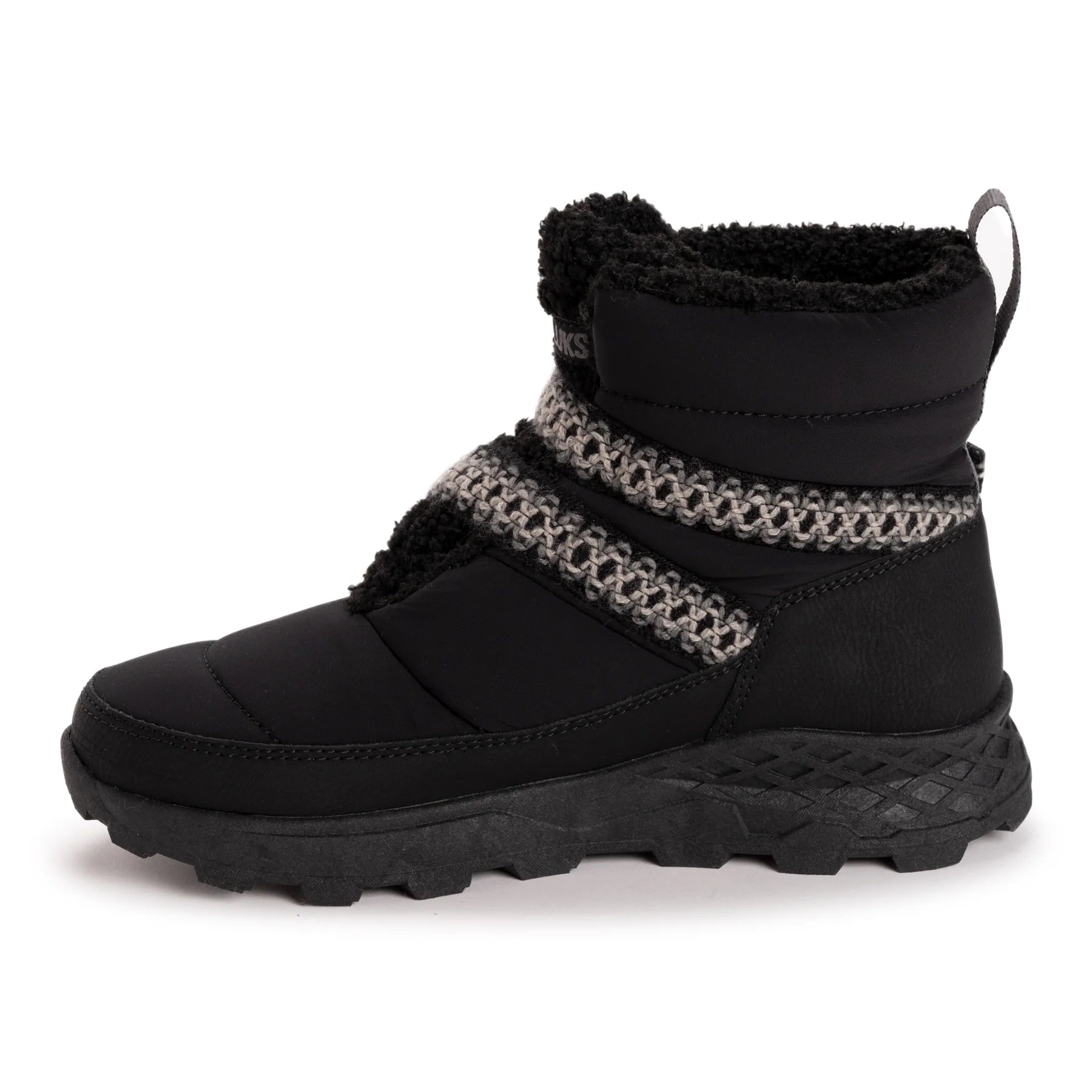 Nothing says warmth, style and comfort like MUK LUKS Women's Wren Boots in the winter. You'll get a fashionable upgrade from the quilted nylon hi-top, faux-fur lining, metal taping and stitching details throughout. Pull on these boots and envelop your feet in warmth thanks to the signature Muk Luxe lining and Memory foam.