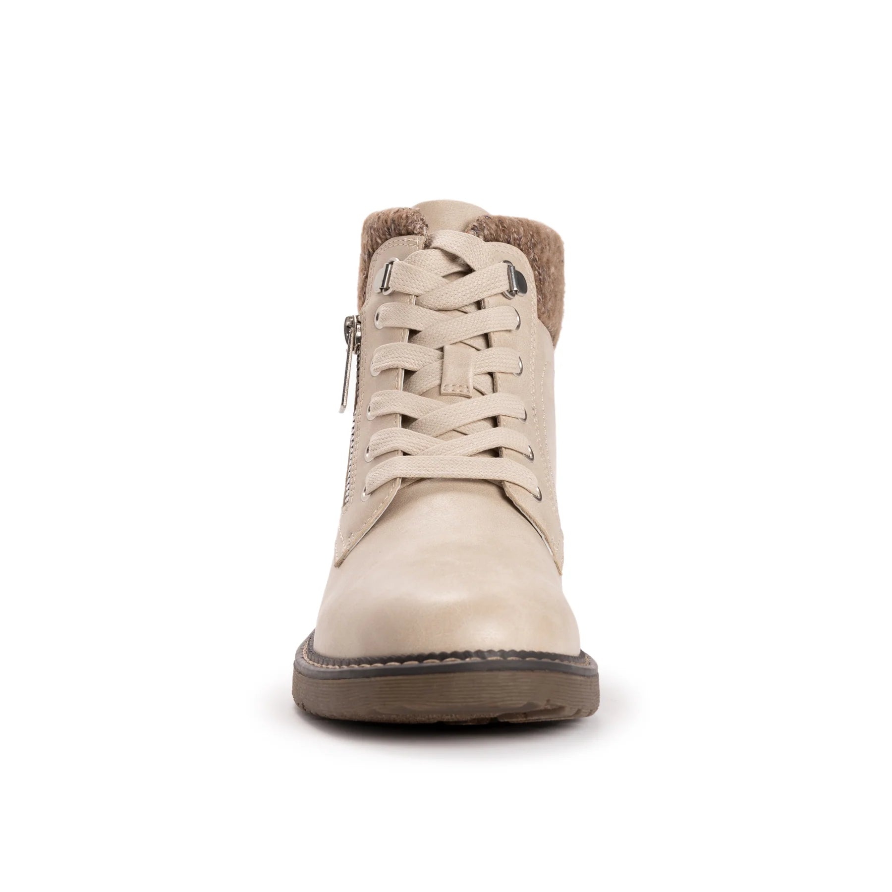 Hiking never looked or felt as good as it does in the MUK LUKS Women's Garland Georgia Boots. The lace-up boot features a padded sweater cuff and our signature Muk Luxe lining to keep you comfortable no matter how many miles you're logging, and the decorative zipper and classic colors enable you to dress these up or down, day or night. Spot clean, no bleach, lay flat to dry.