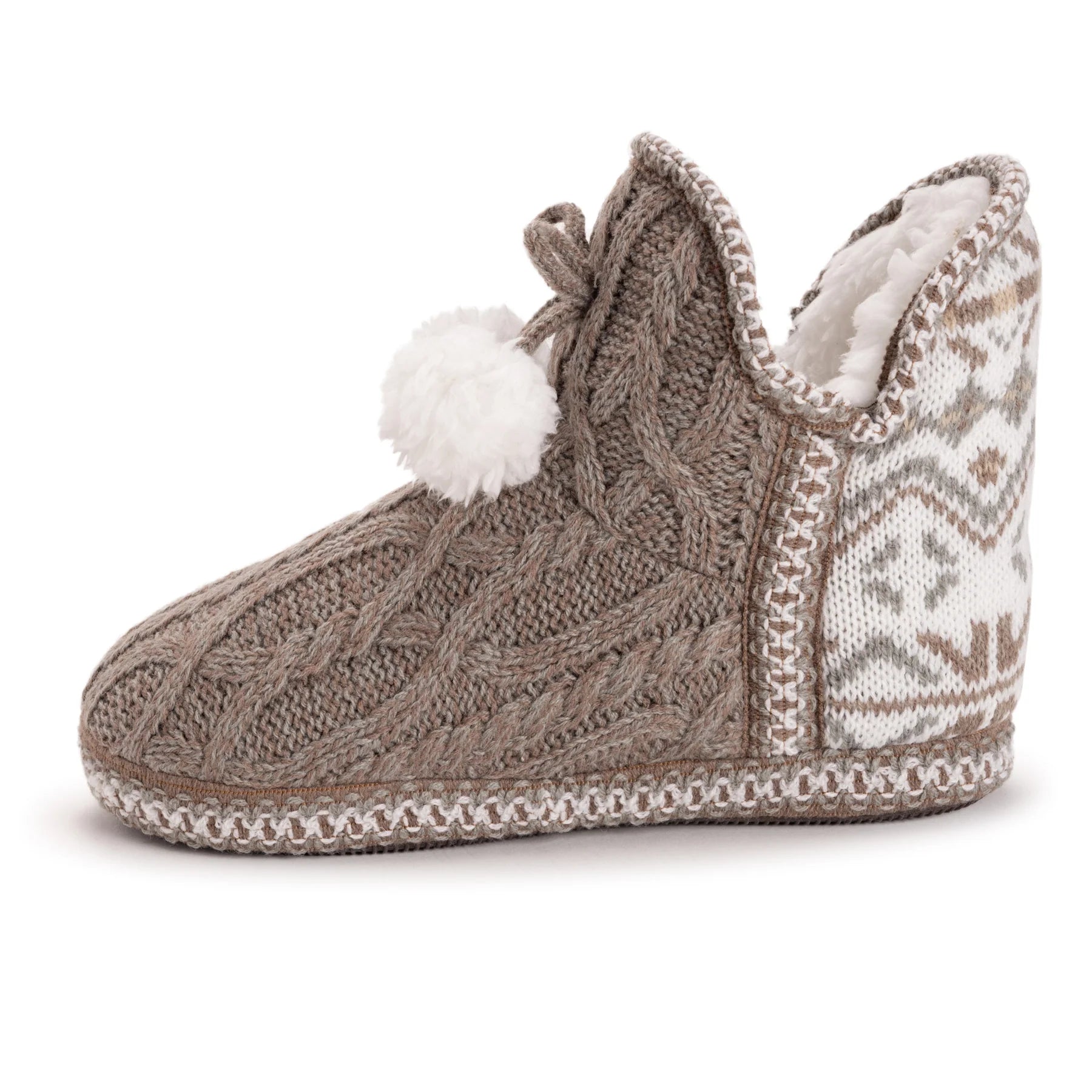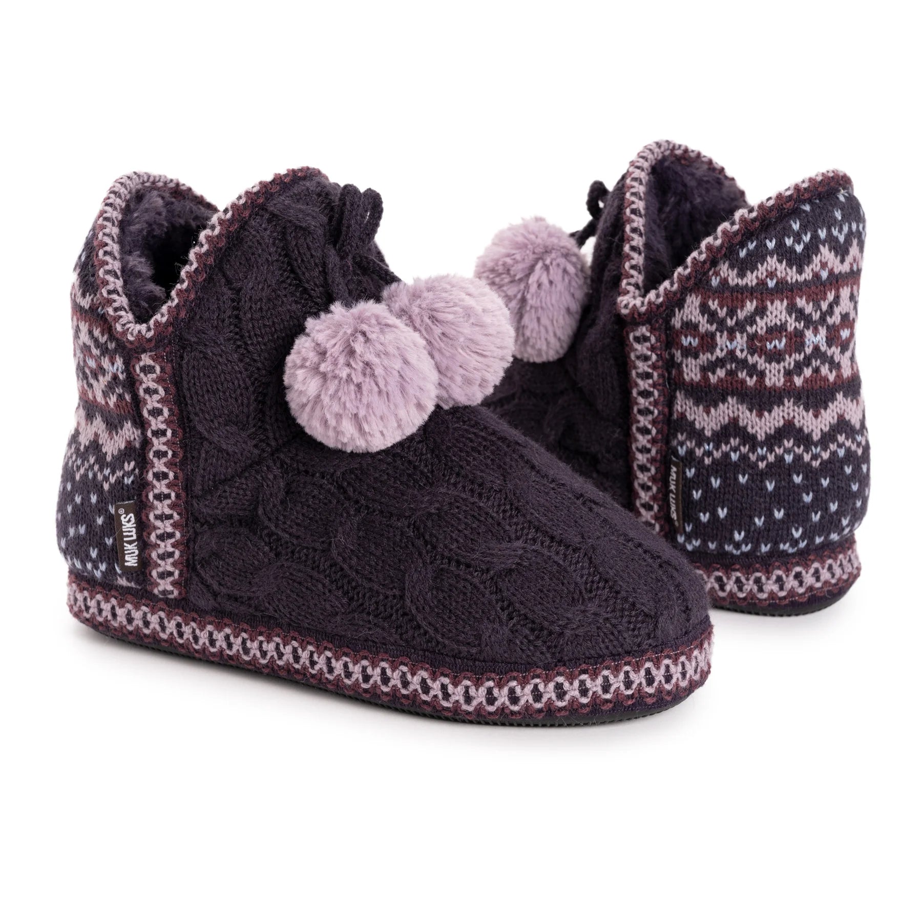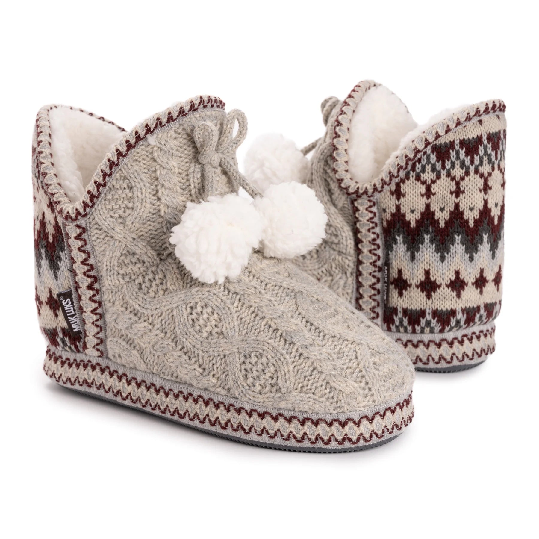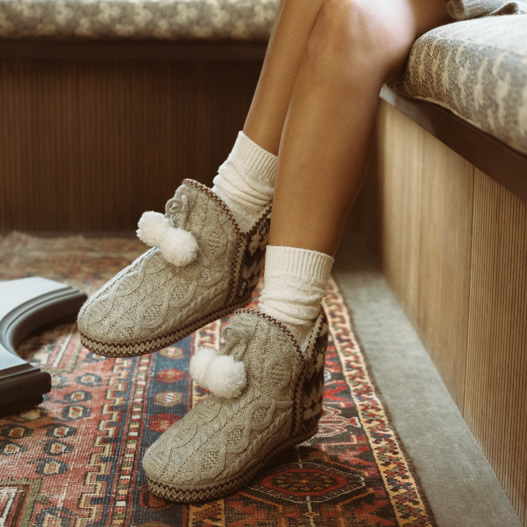 Stay warm and cozy with the Amira Slippers. These versatile bootie slippers feature uniquely in-house designed knit patterns and feature a soft faux fur lining and durable traded non-slip outsole, making them ideal for all-day wear. With a multi-layer comfort foam footbed for better and longer lasting support, multiple color options and easy pull-on style, Amira Slippers are a must-have for your collection.