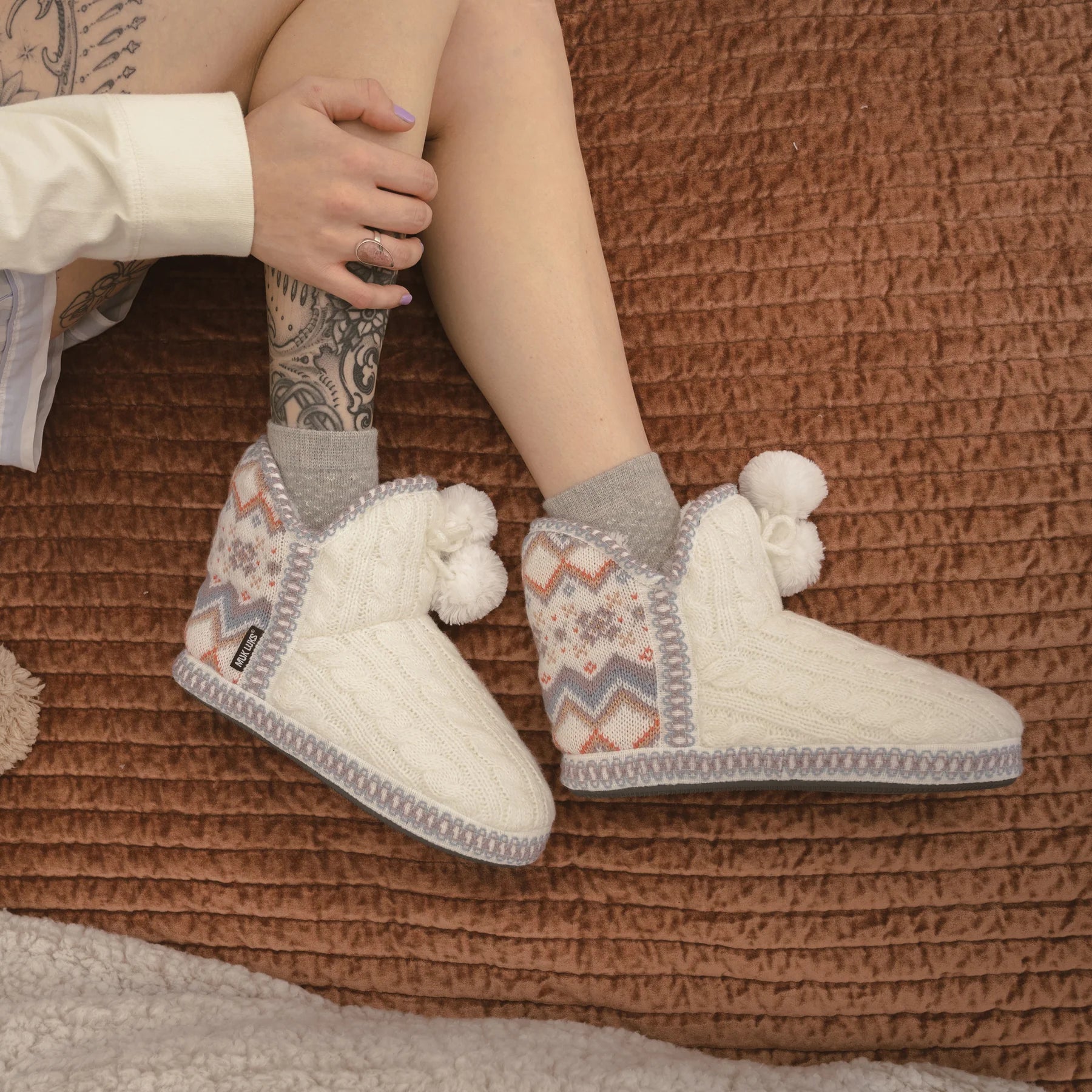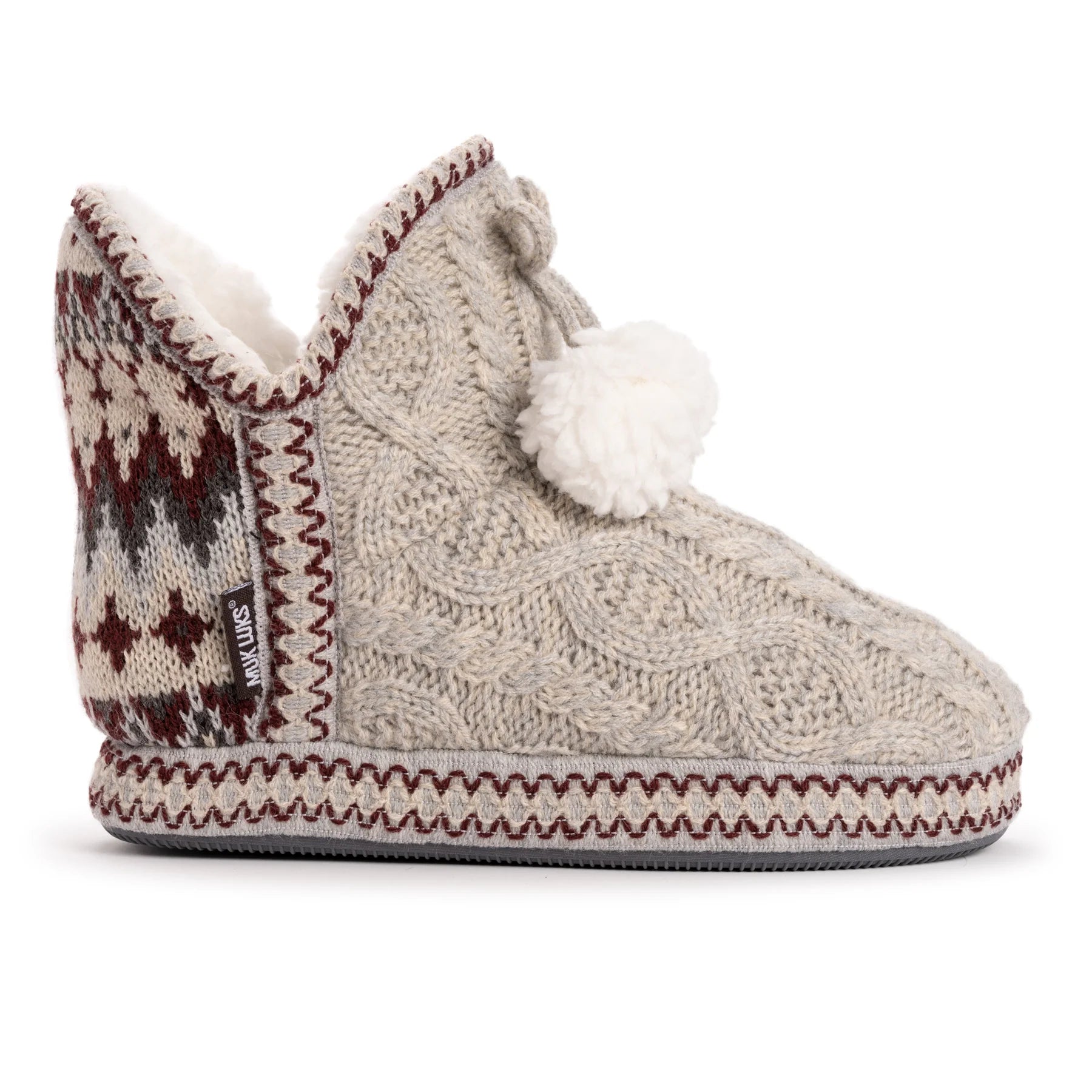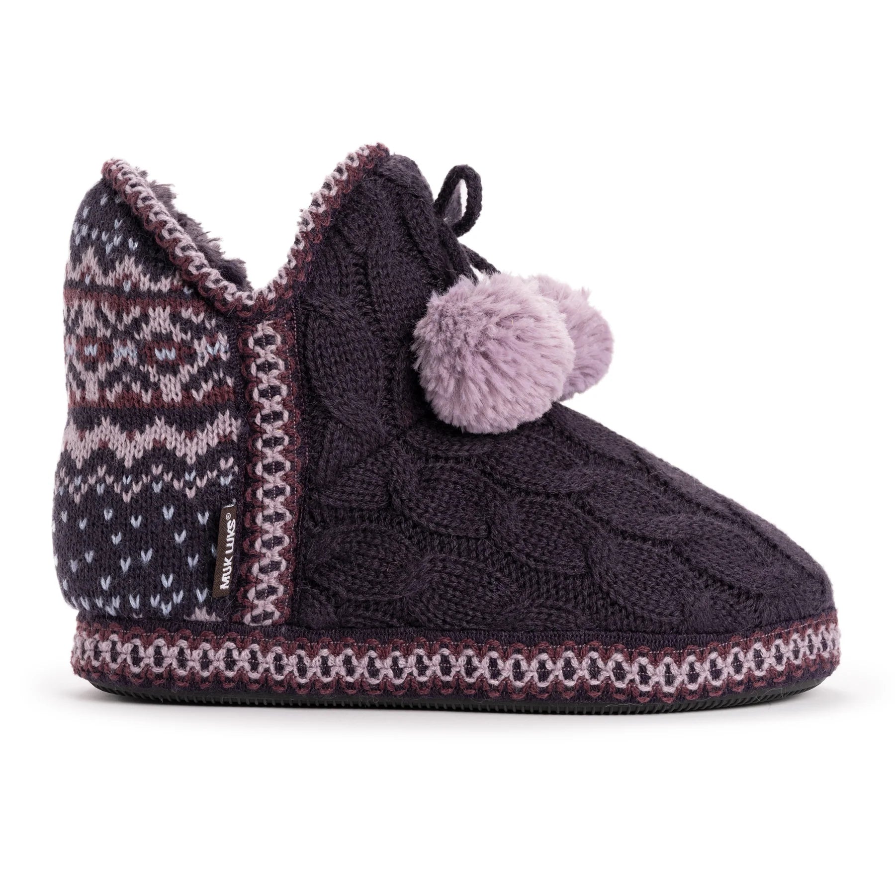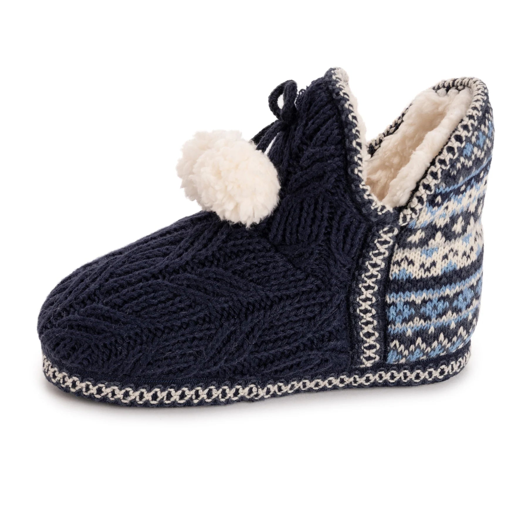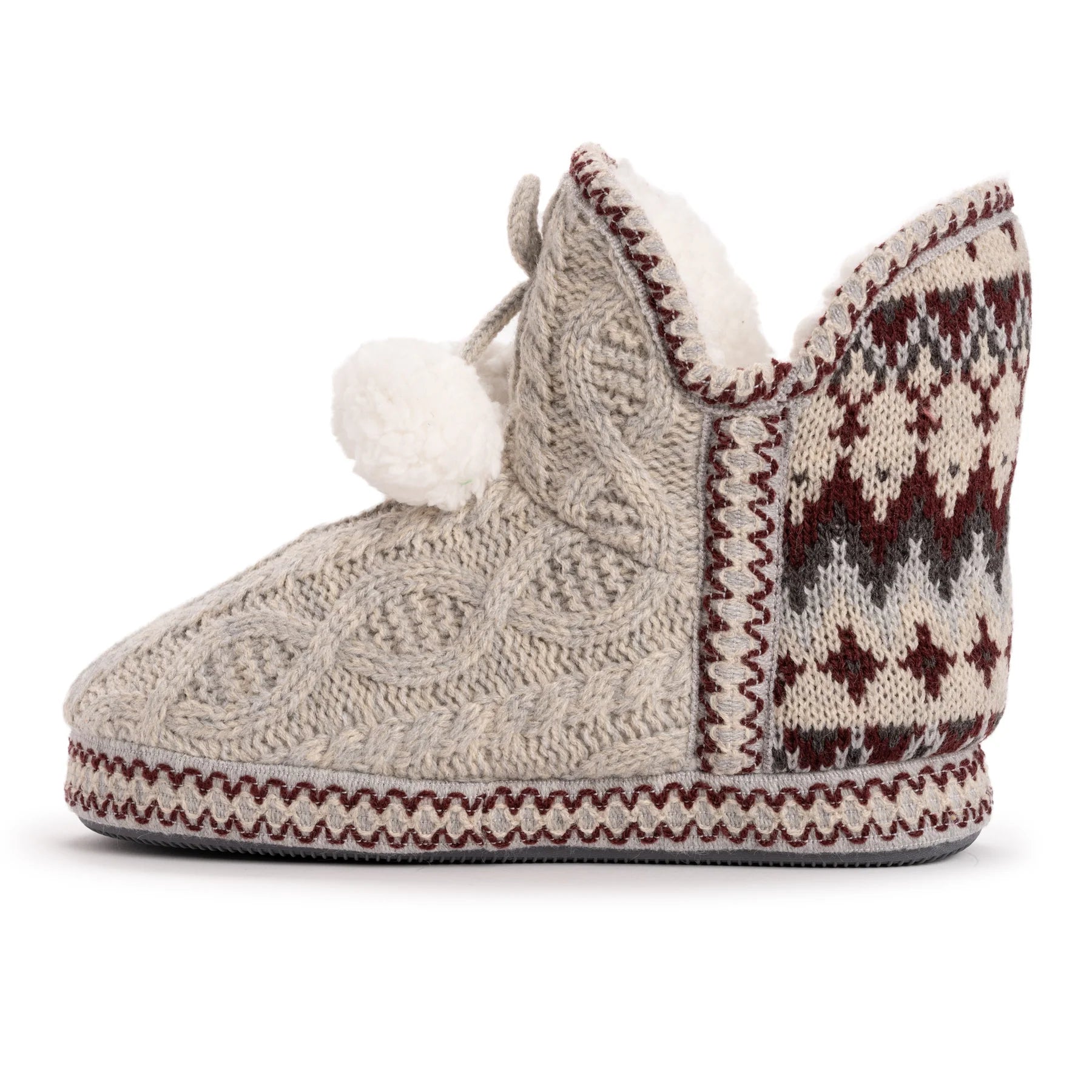 Stay warm and cozy with the Amira Slippers. These versatile bootie slippers feature uniquely in-house designed knit patterns and feature a soft faux fur lining and durable traded non-slip outsole, making them ideal for all-day wear. With a multi-layer comfort foam footbed for better and longer lasting support, multiple color options and easy pull-on style, Amira Slippers are a must-have for your collection.