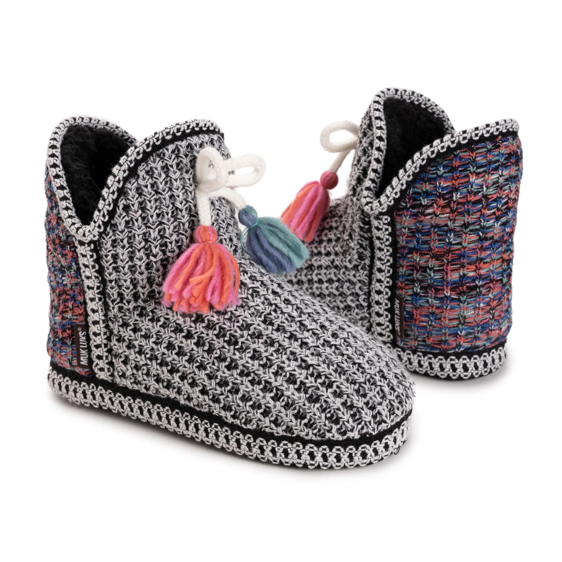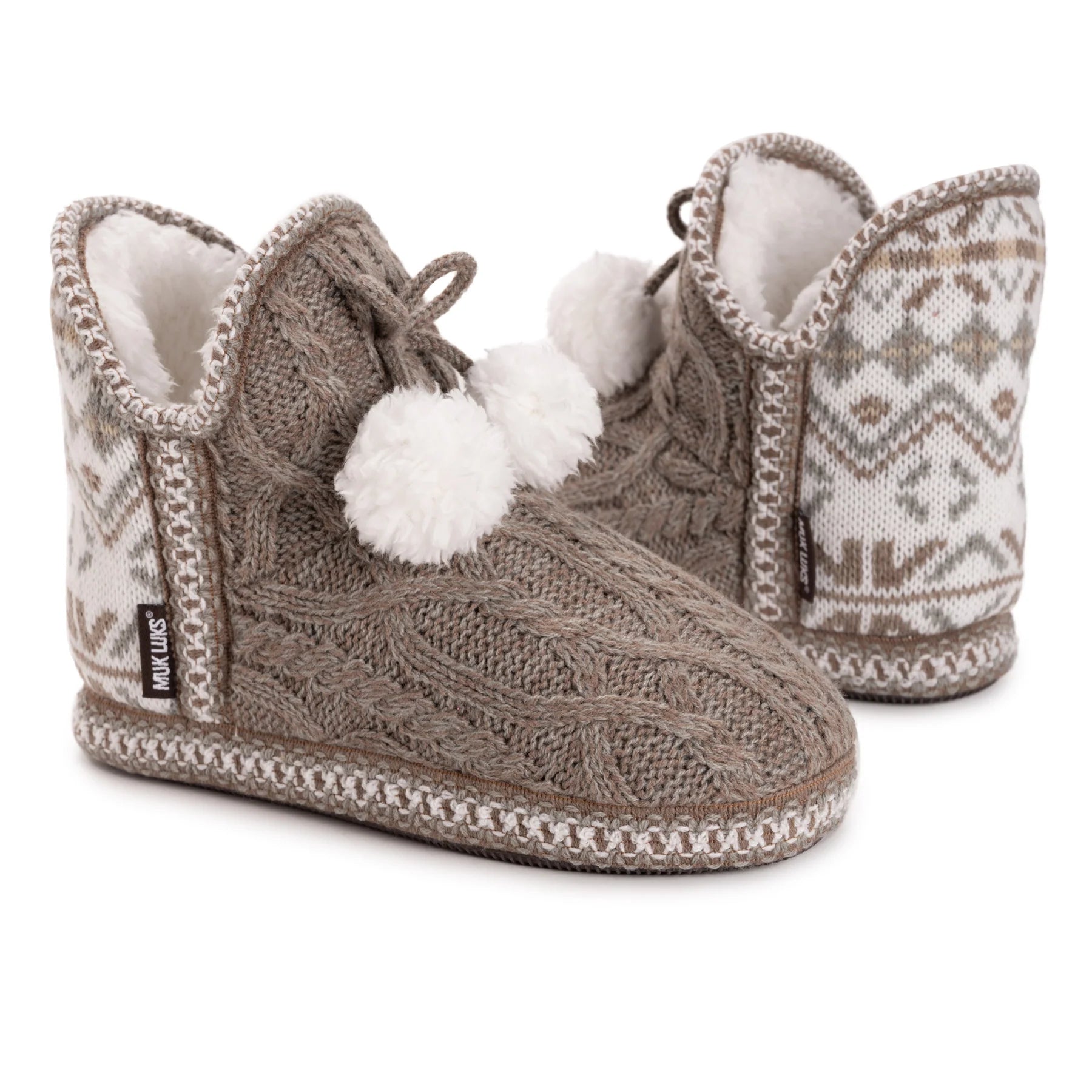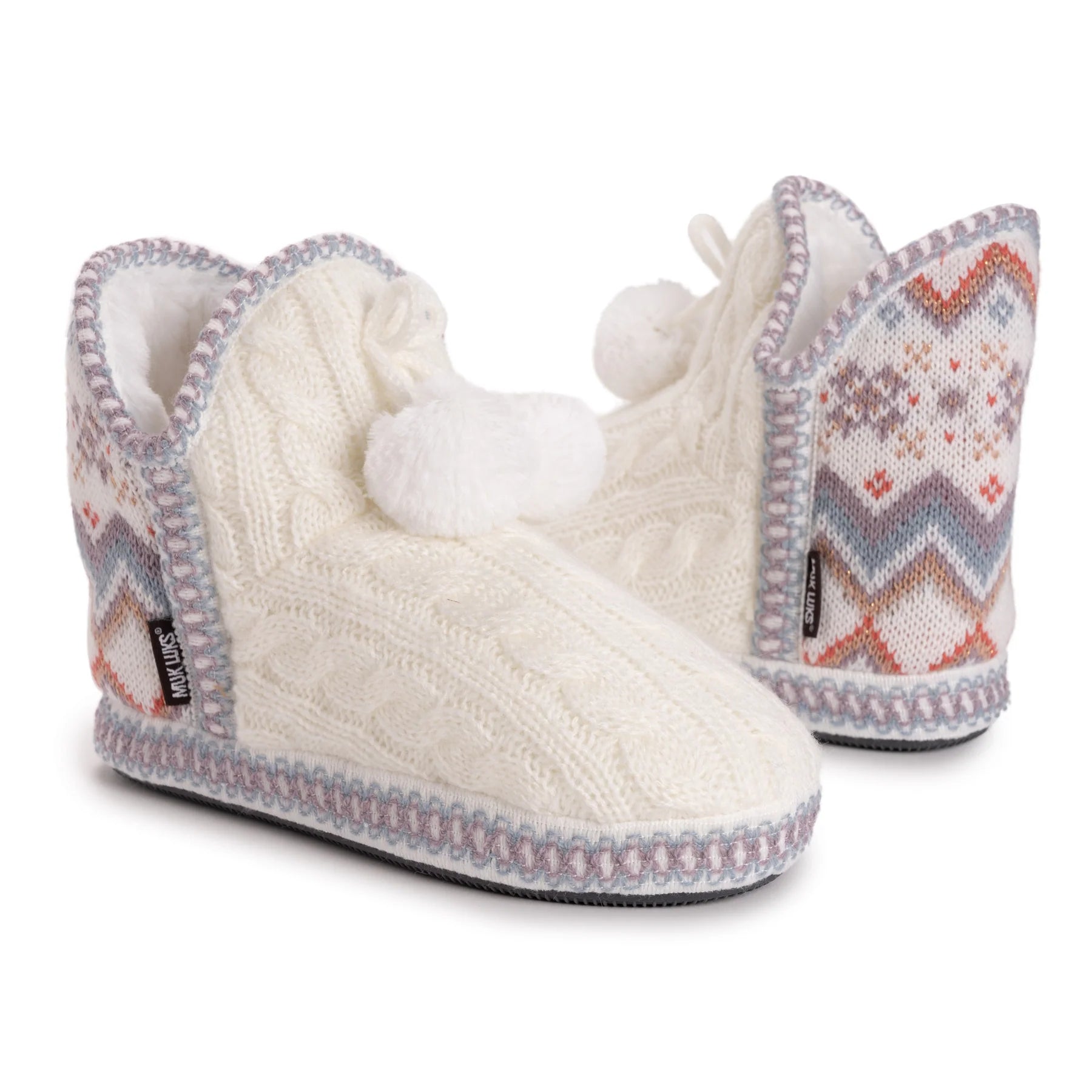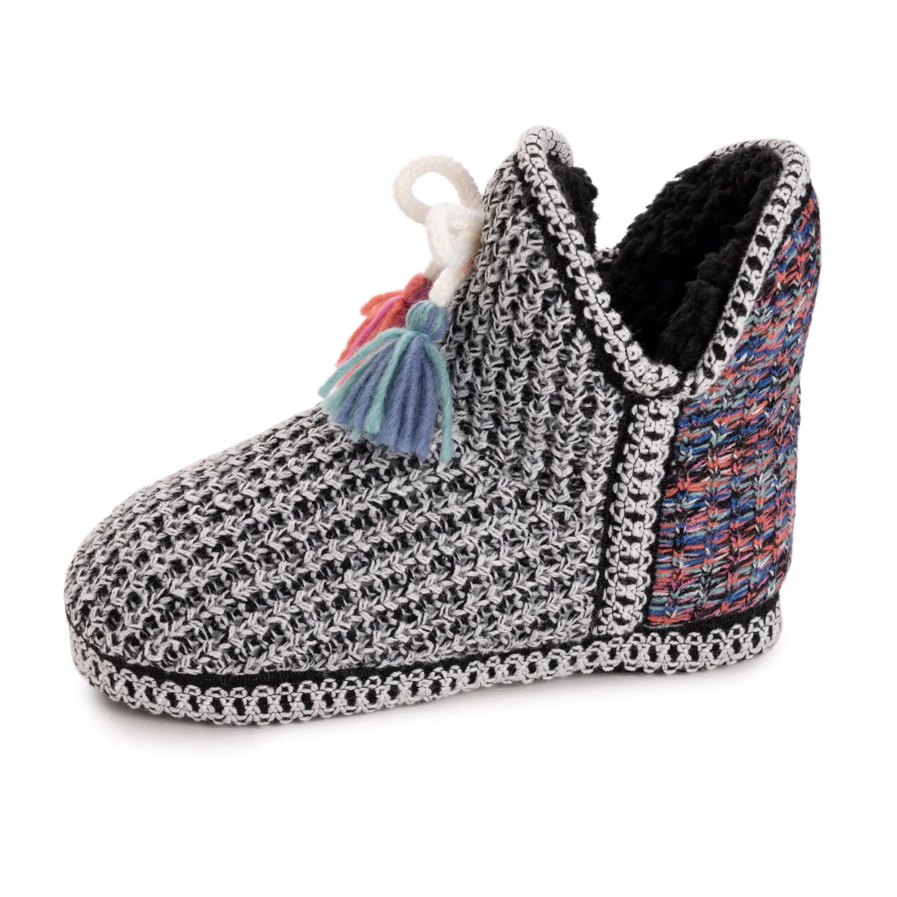 Stay warm and cozy with the Amira Slippers. These versatile bootie slippers feature uniquely in-house designed knit patterns and feature a soft faux fur lining and durable traded non-slip outsole, making them ideal for all-day wear. With a multi-layer comfort foam footbed for better and longer lasting support, multiple color options and easy pull-on style, Amira Slippers are a must-have for your collection.