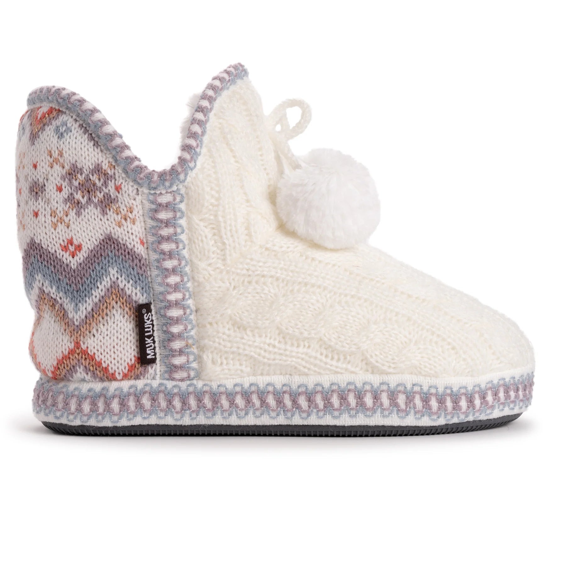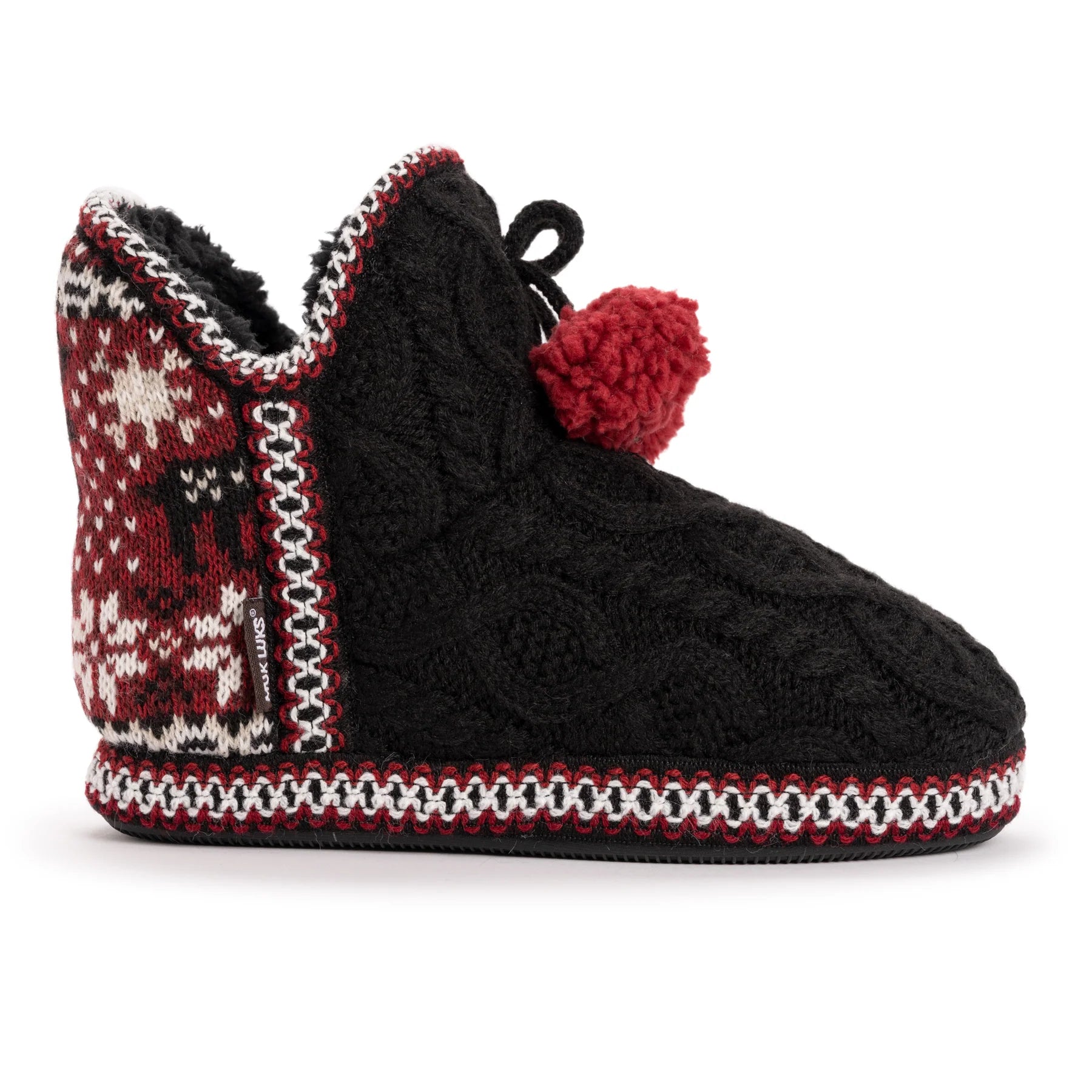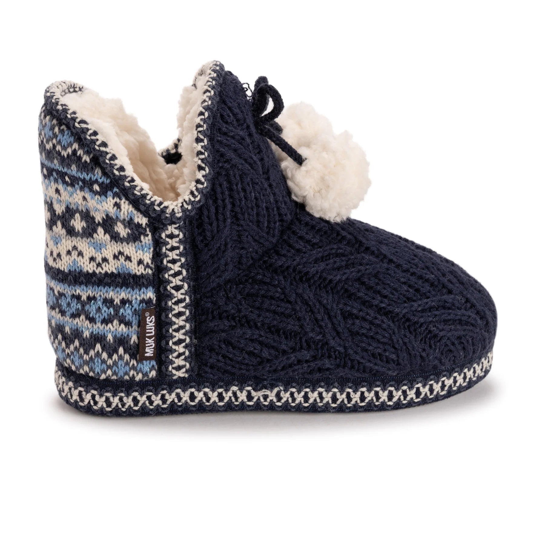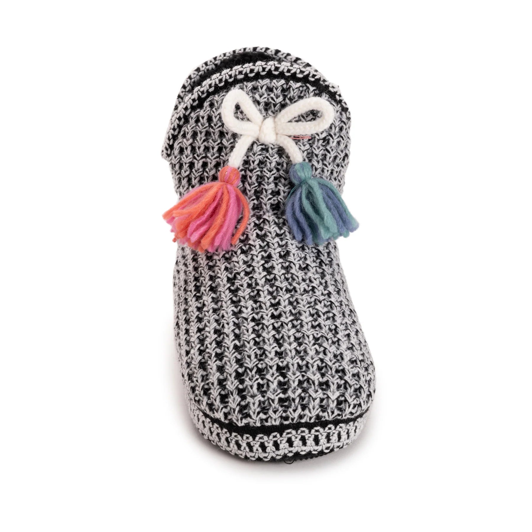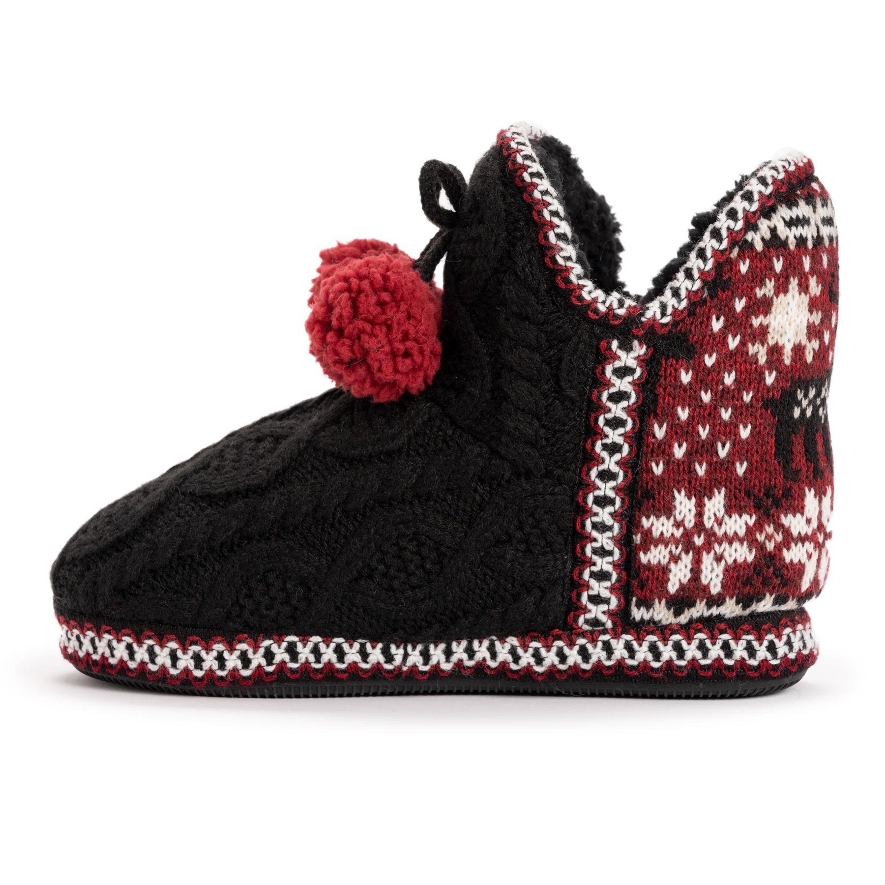 Stay warm and cozy with the Amira Slippers. These versatile bootie slippers feature uniquely in-house designed knit patterns and feature a soft faux fur lining and durable traded non-slip outsole, making them ideal for all-day wear. With a multi-layer comfort foam footbed for better and longer lasting support, multiple color options and easy pull-on style, Amira Slippers are a must-have for your collection.