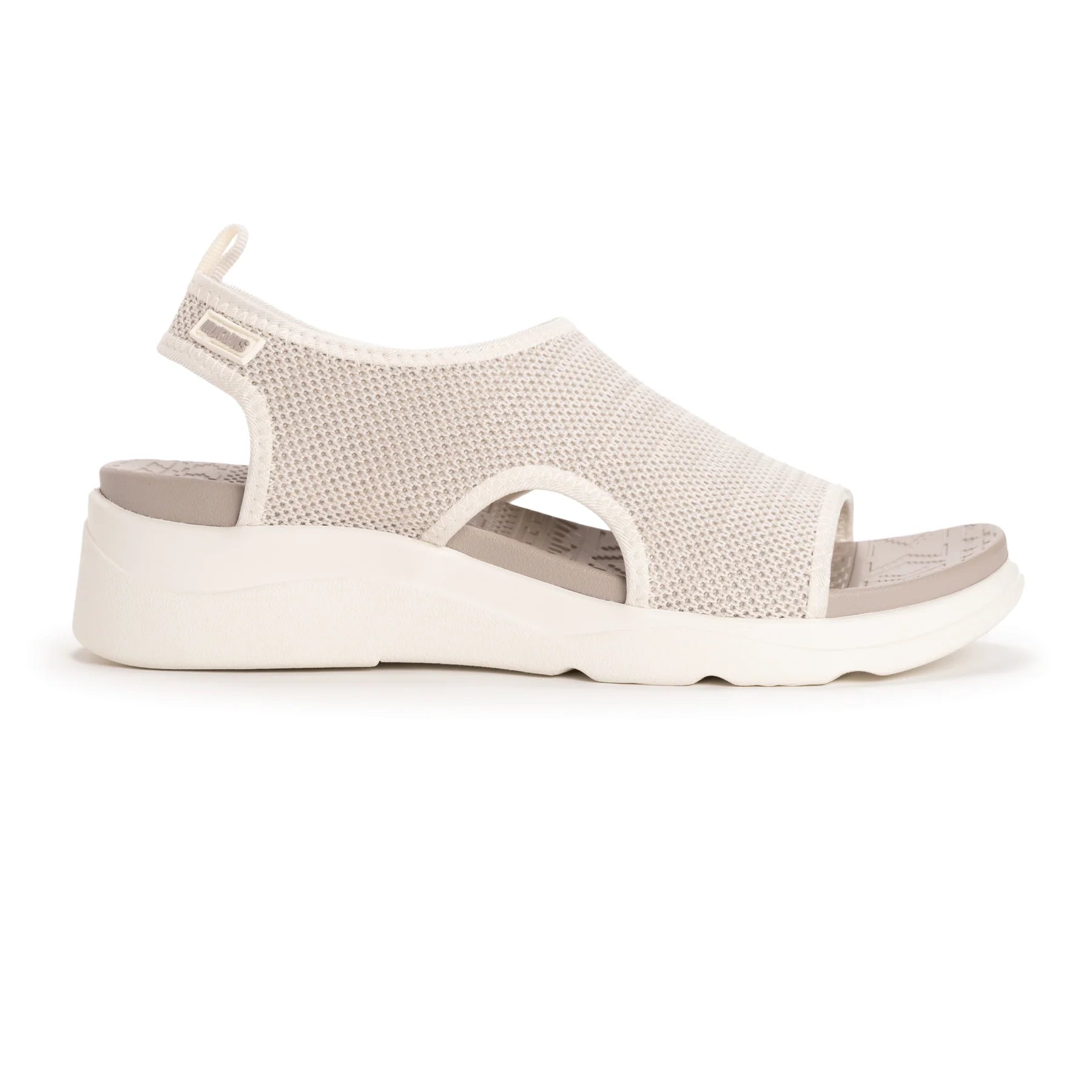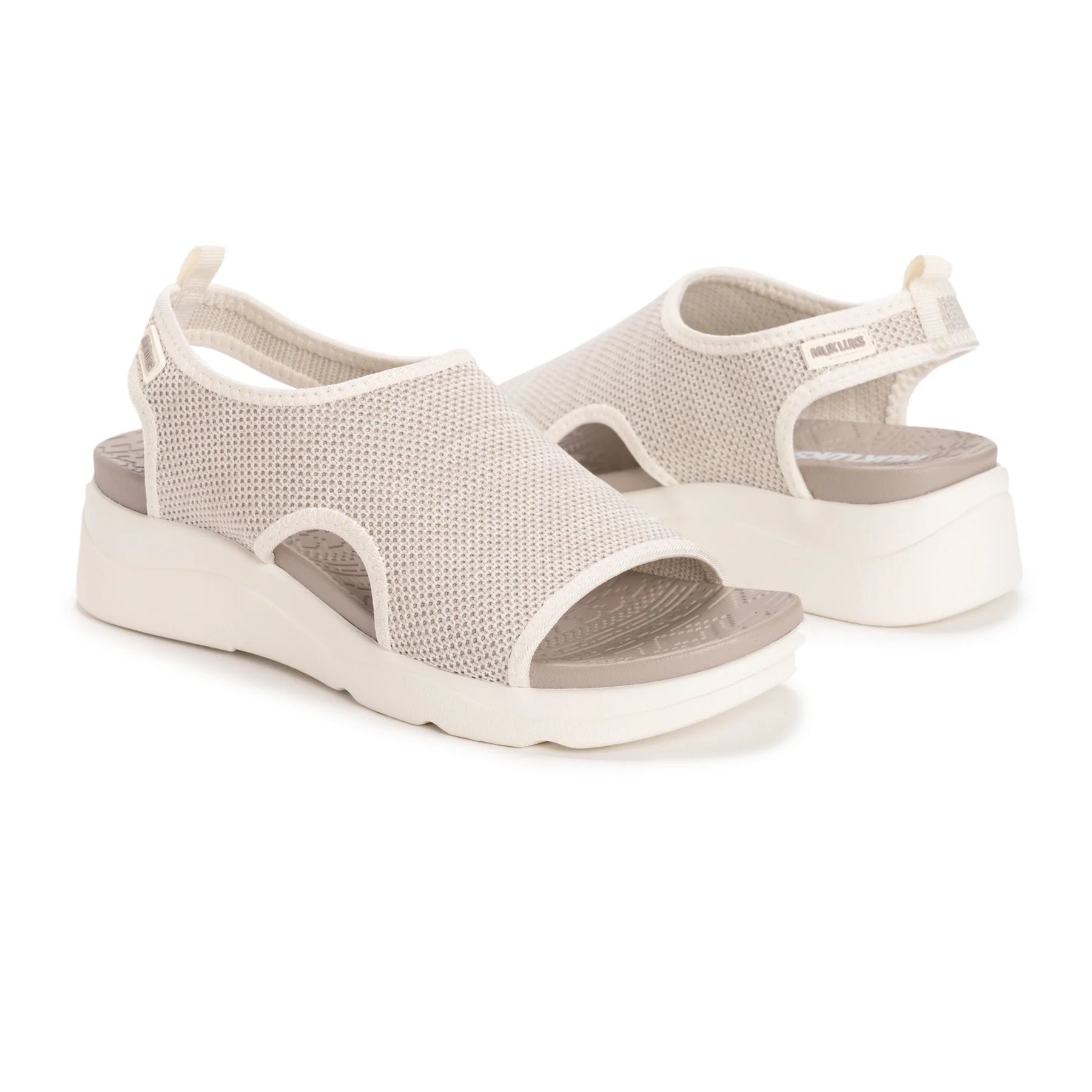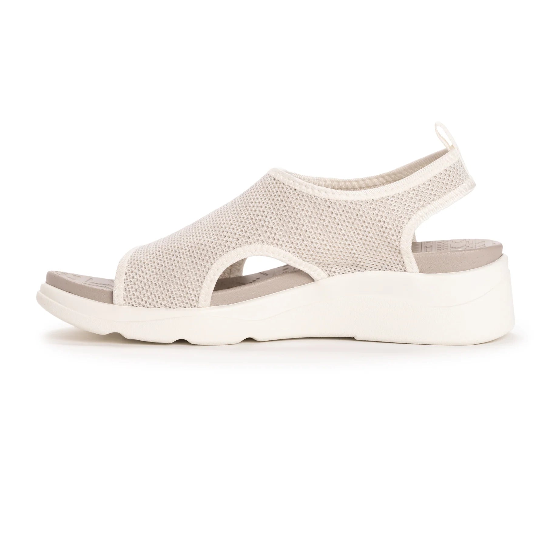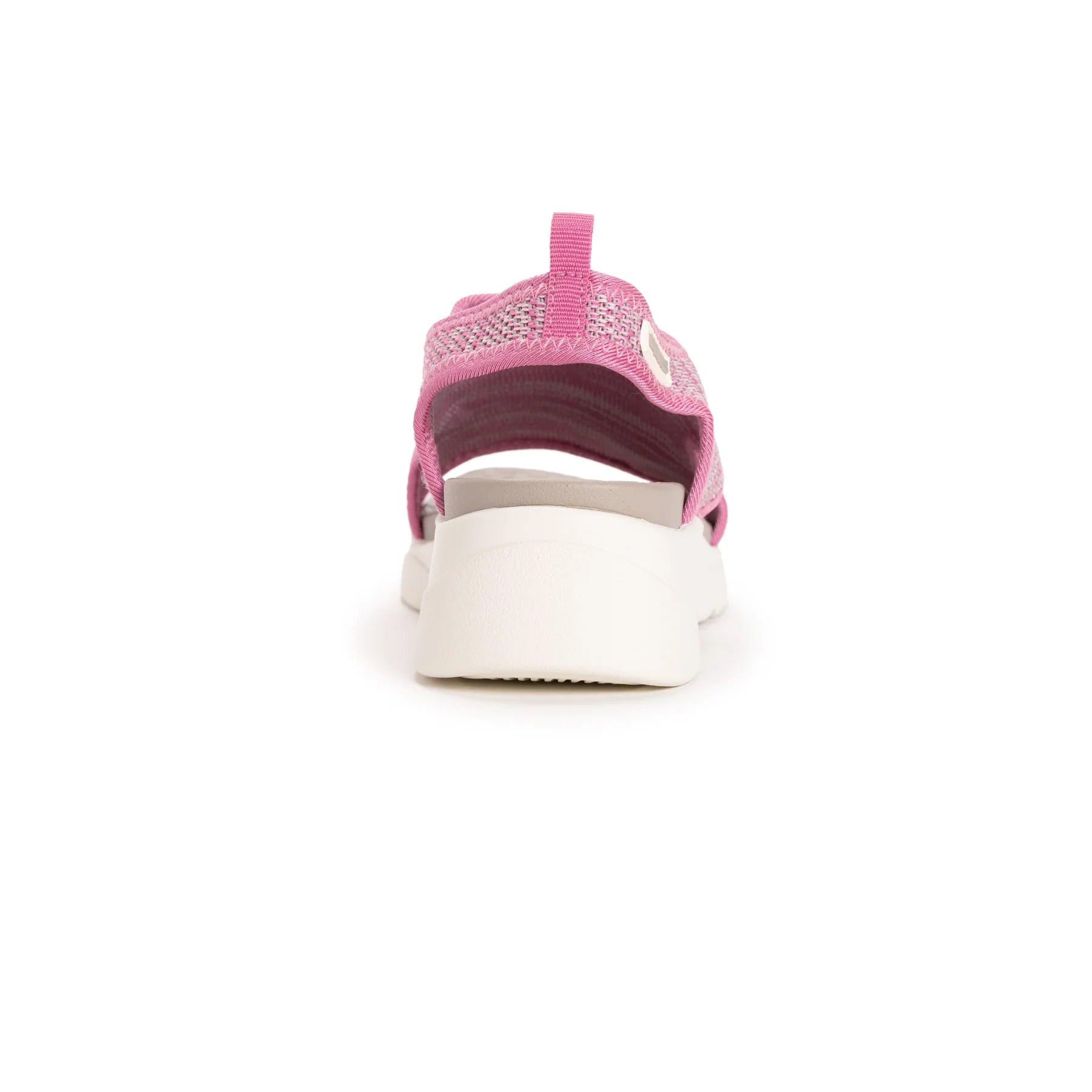 Step into summer with the MUK LUKS Women's Zahara Sandal a perfect fusion of style and comfort. These slip-on sandals feature a trendy sling-back design, a breathable knit upper, a fairisle embossed comfort footbed, and a lightweight, flexible sport wedge outsole.