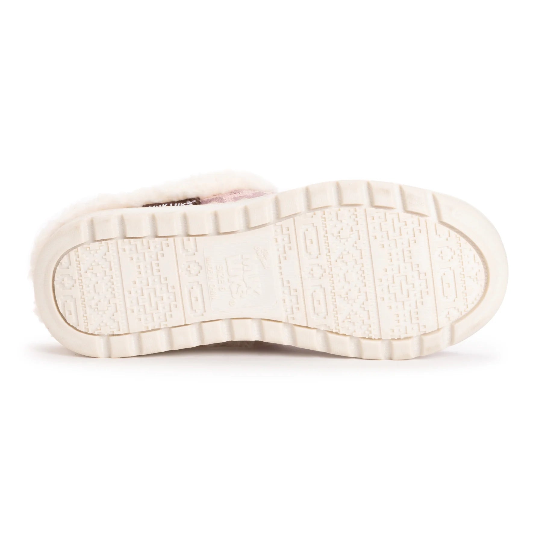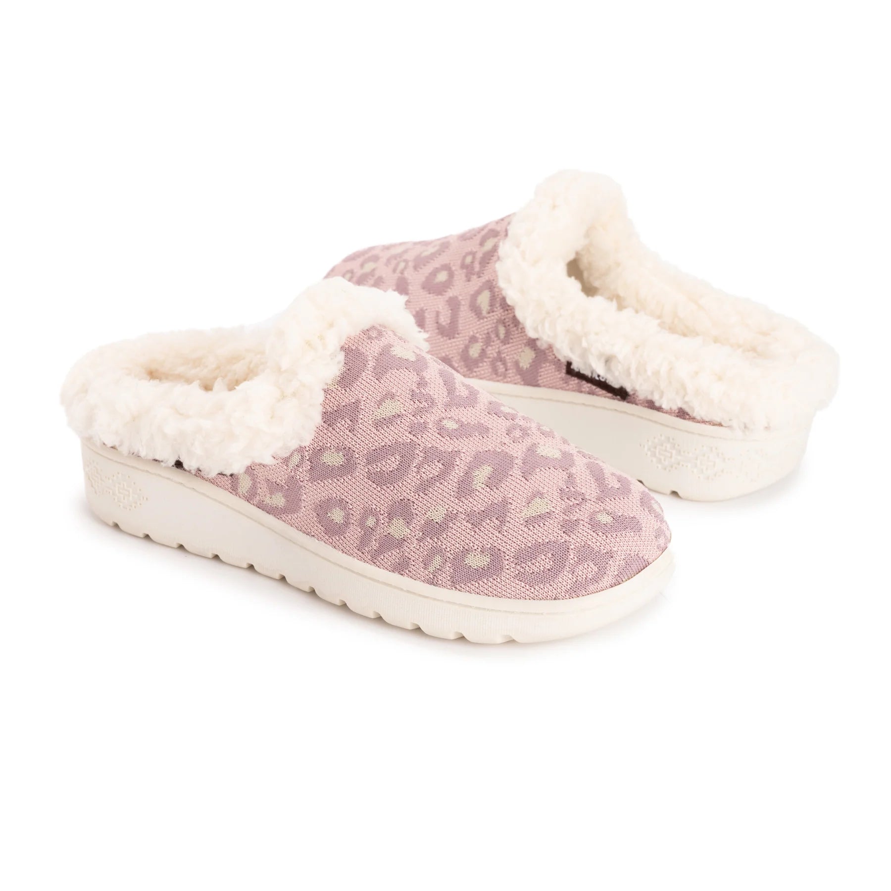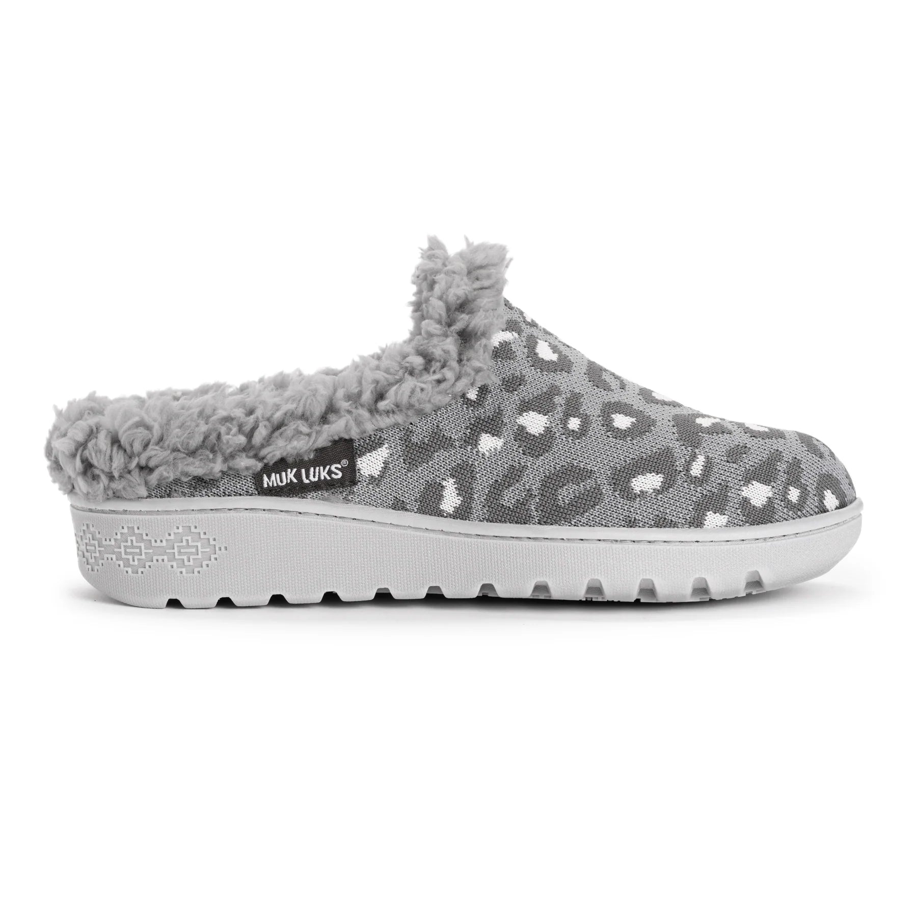 MUK LUKS Women's Nony Flyknit Slip On is lined in faux shearling warmth and designed in fun leopard-print patterns. The permanent, built-in, contoured support along with the non-slip tread bottom make this an easy-to-wear slipper throughout your day. Wipe with damp cloth. Do not bleach. Lay flat to dry.