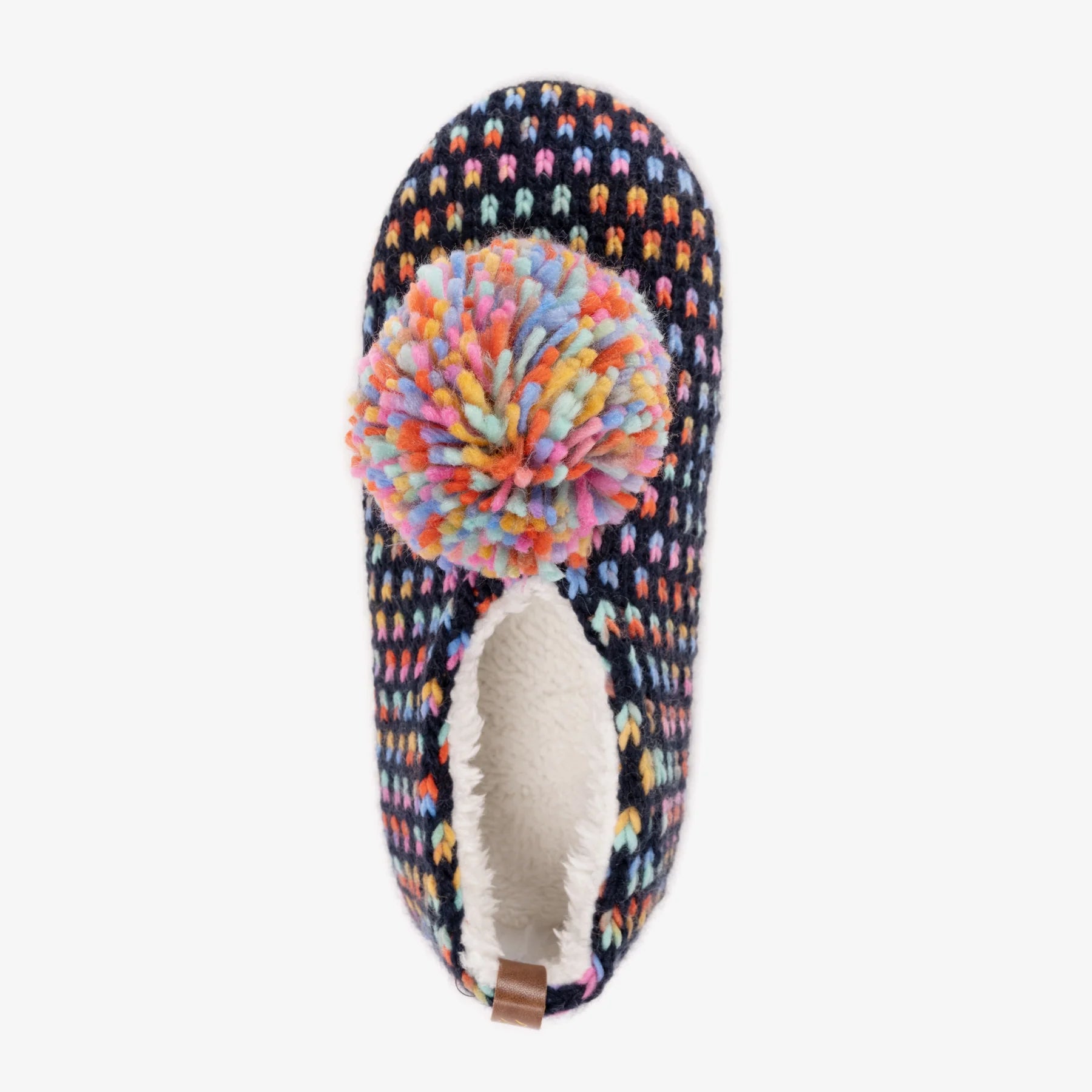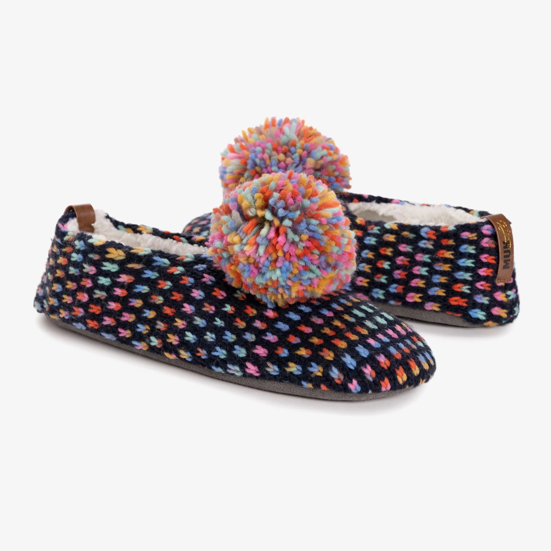 Walk around in something that is both cute and comfortable in MUK LUKS Women’s Space Dye Pick Stitch Ballerina Slipper. Featuring a playful giant space dye pom, these slippers bring a splash of vibrant color to your relaxation time. The plush, cushioned insole and non-slip bottoms ensure you’ll glide through your day in comfort and style.