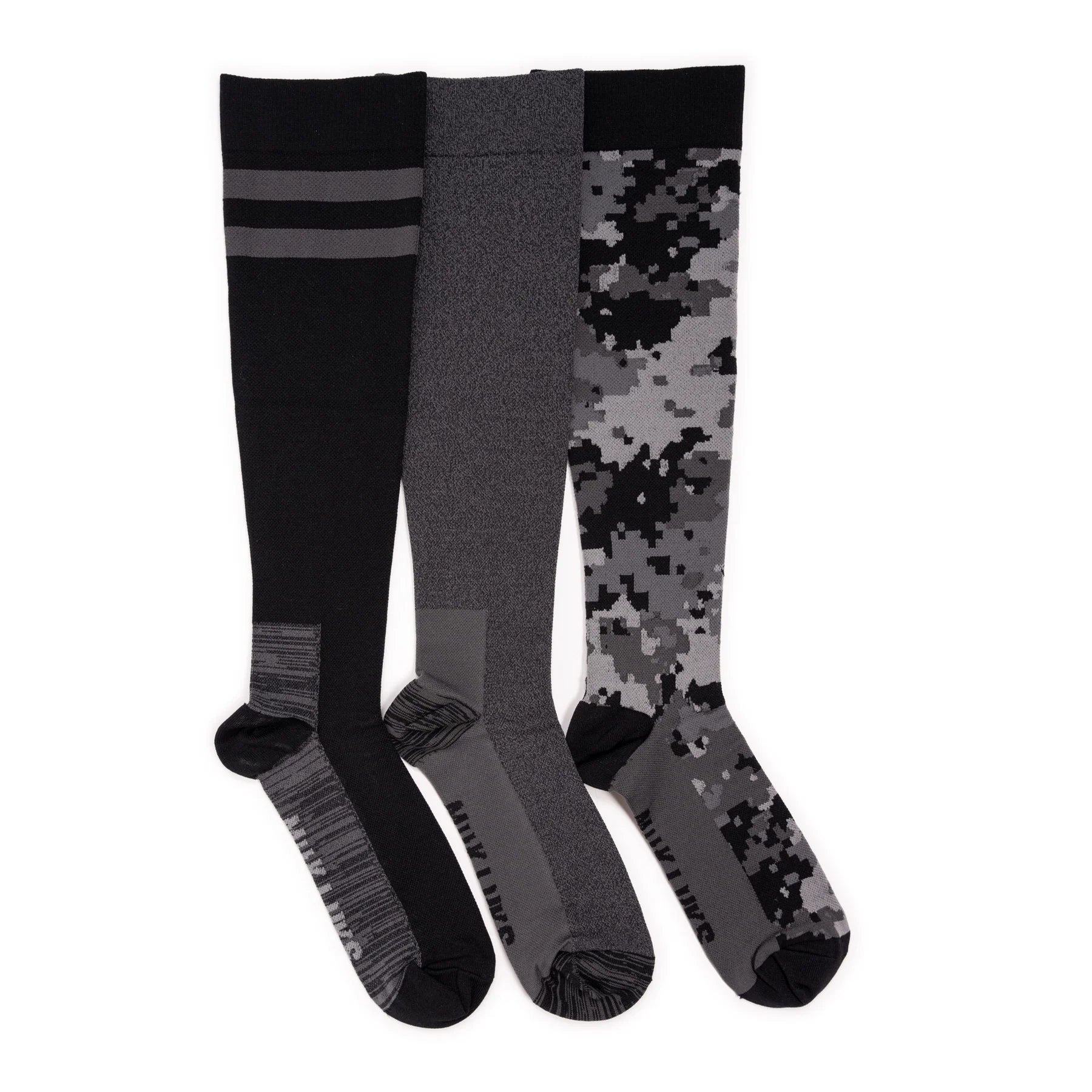 Revitalize Your Legs with MUK LUKS Men's 3 Pair Pack Compression Socks where style meets functionality for everyday leg wellness. With mild graduated compression ranging from 8-12mmHg, these socks provide the perfect blend of comfort and support for your legs.