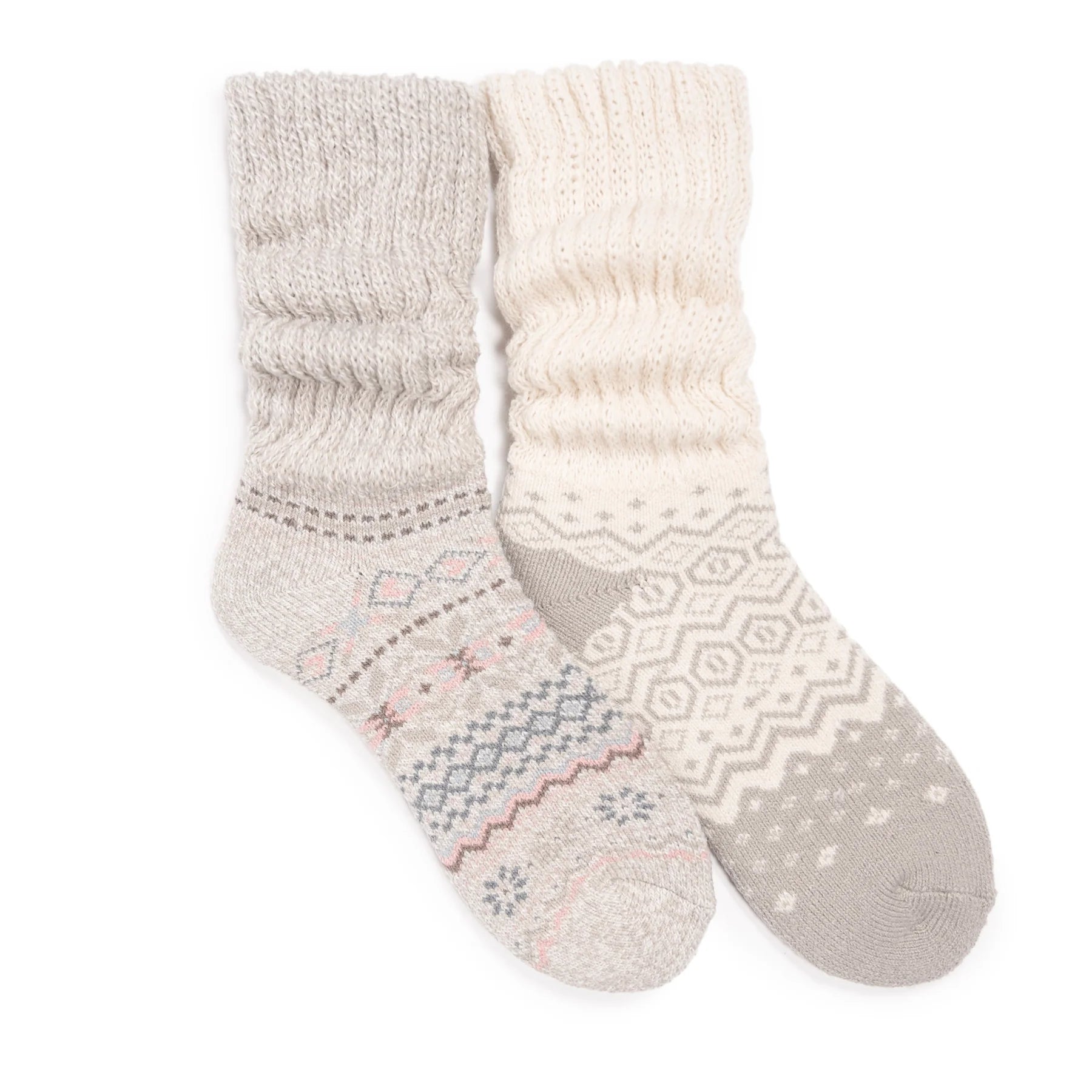 Wrap your cold winter feet in pure bliss with MUK LUKS Slouch Heat Retainer Socks! This two-pair pack offers cozy in a crew-height sock with a 3.0 thermal overall grade, ensuring your feet stay toasty warm. With double brushed lining and made from durable high-density yarn, these super soft socks keep the warm are in and the cold air out. Treat your feet to unmatched comfort and warmth without forfeiting style this winter- They'll thank you!