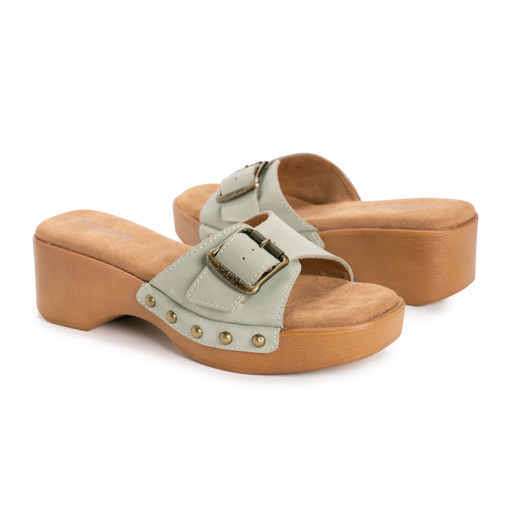 Step out in comfort and style with our MUK LUKS Women's Cora Sandal, designed for all-day wear. The leather upper features an adjustable metal buckle closure for a secure fit. These wedge sandals feature memory foam insoles providing cushioning and arch support making them comfortable to wear all day. Elevate your footwear game with the perfect blend of function and sophistication for any occasion.