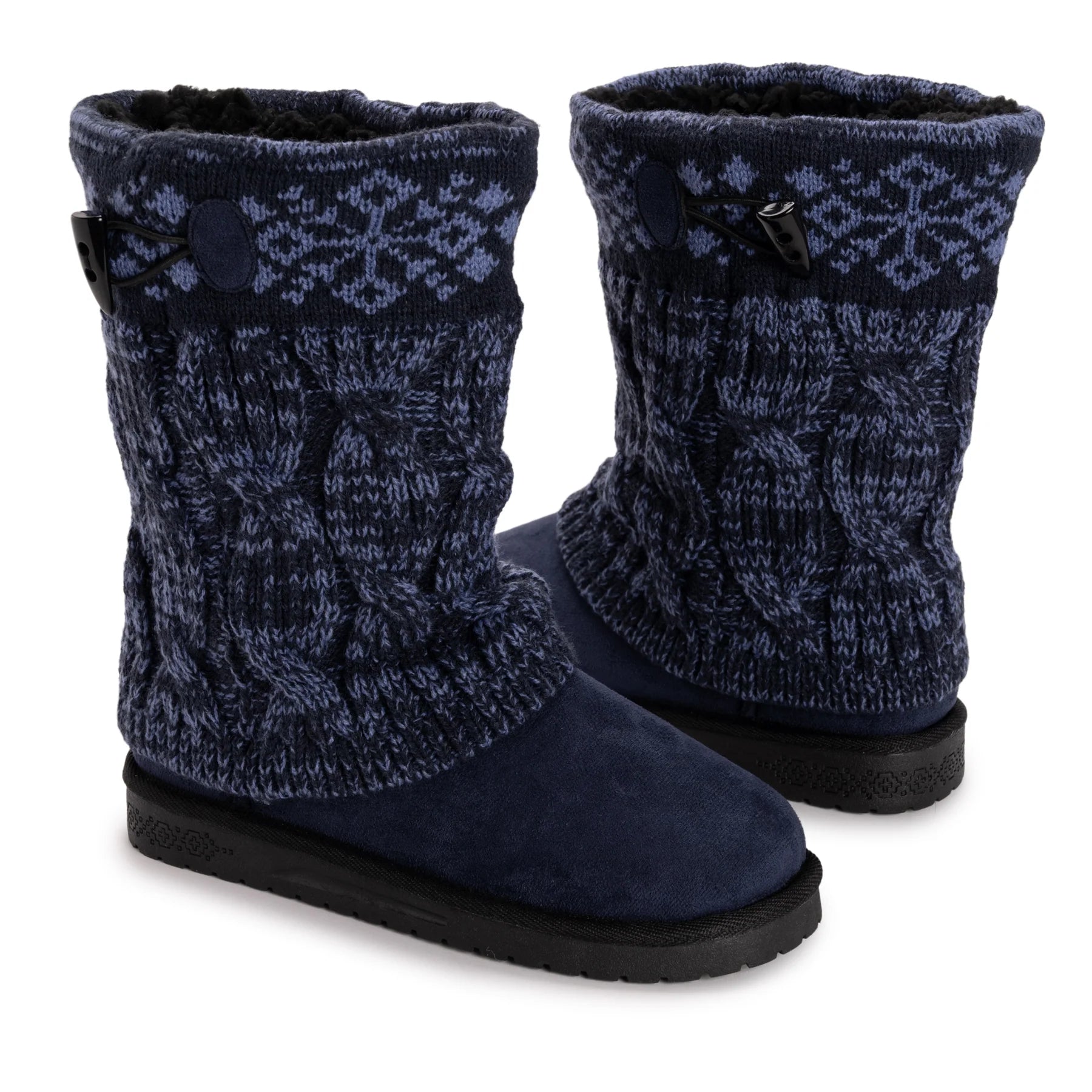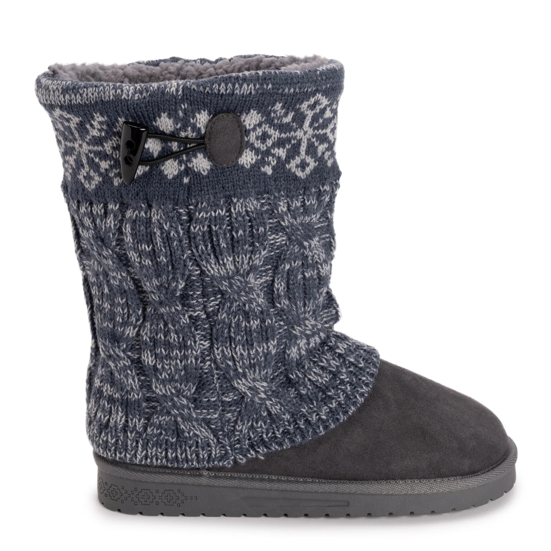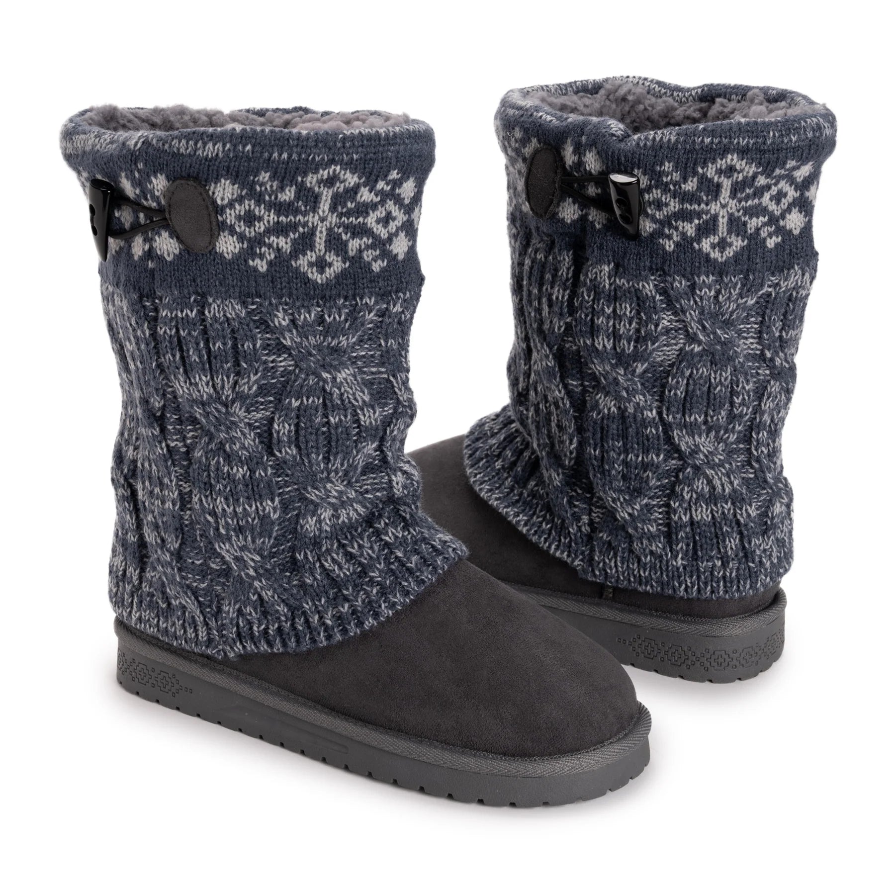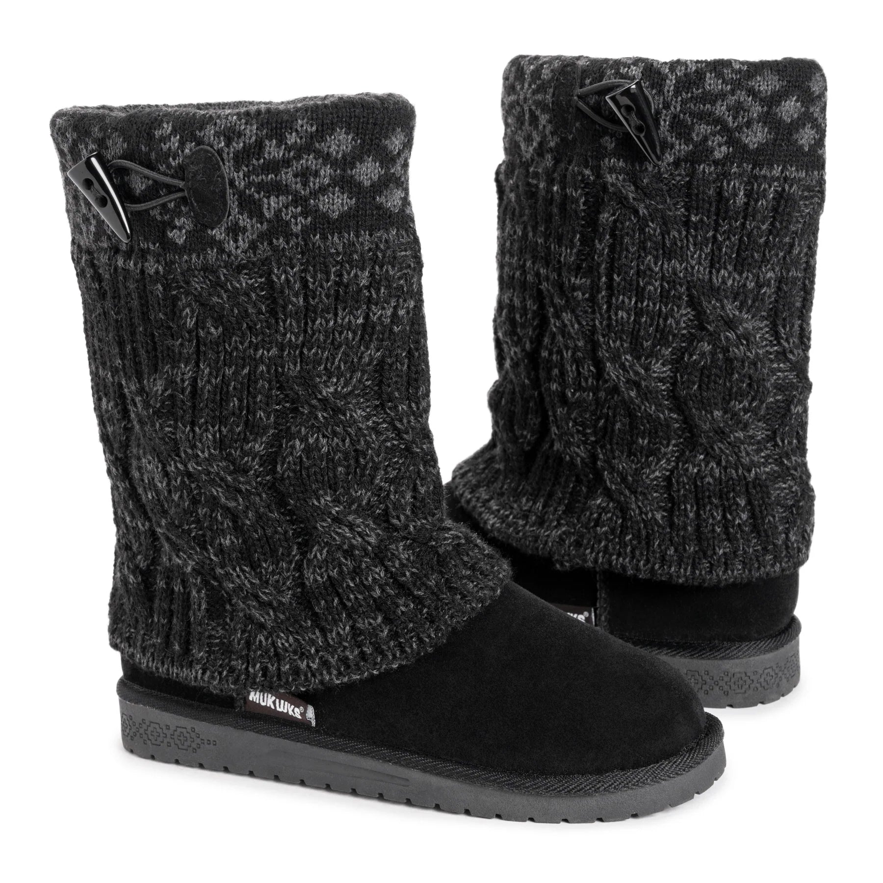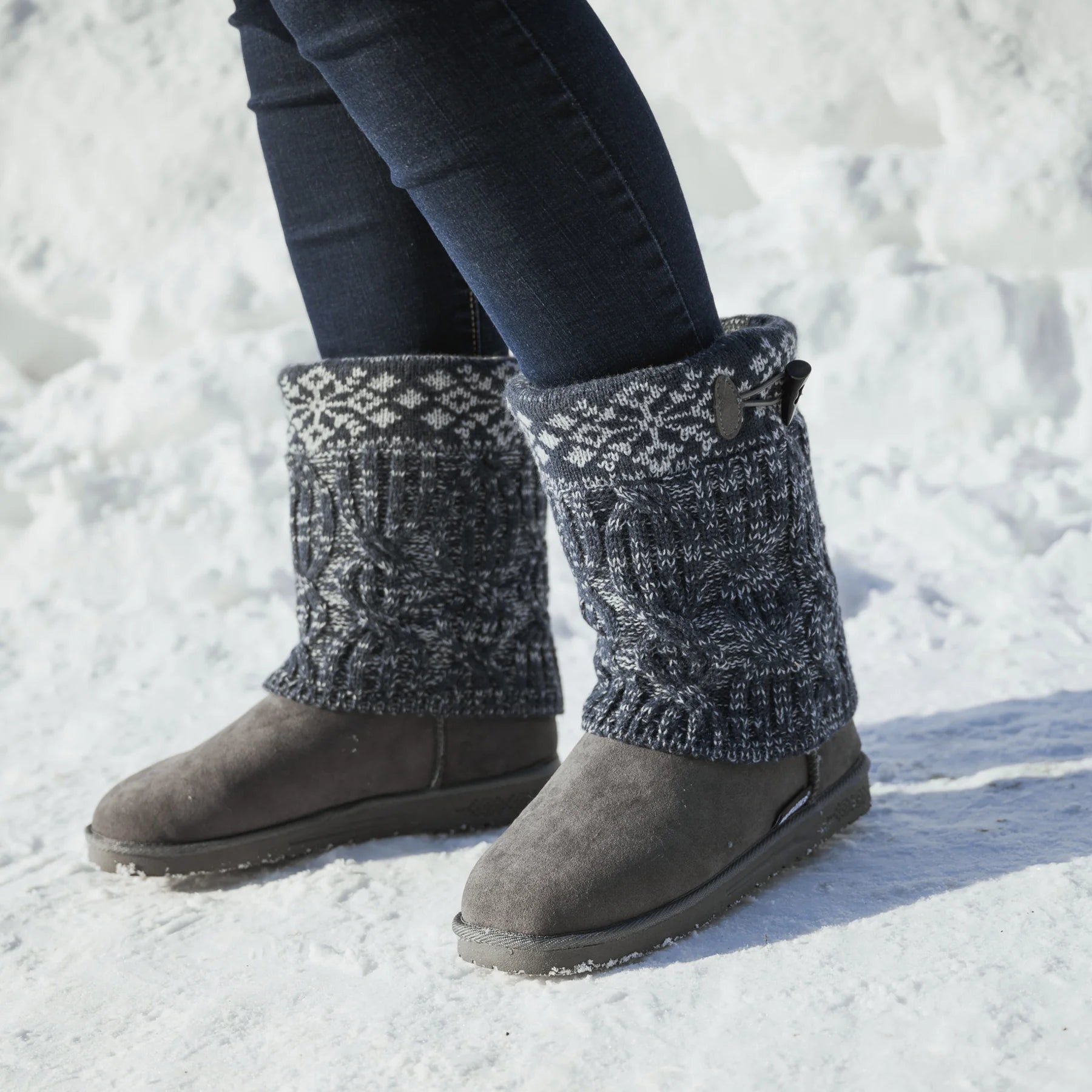 Stay warm and stylish this winter with the Cheryl Boots from our Essentials by Muk Luks collection. These comfortable boots feature a cozy sweater knit design, soft faux fur lining, Toggle detailing and a durable TPR sole, making them water resistant and great for protecting your feet against splashes and slush. With a variety of colors and patterns, the Cheryl Boots offer both comfort and fashion.