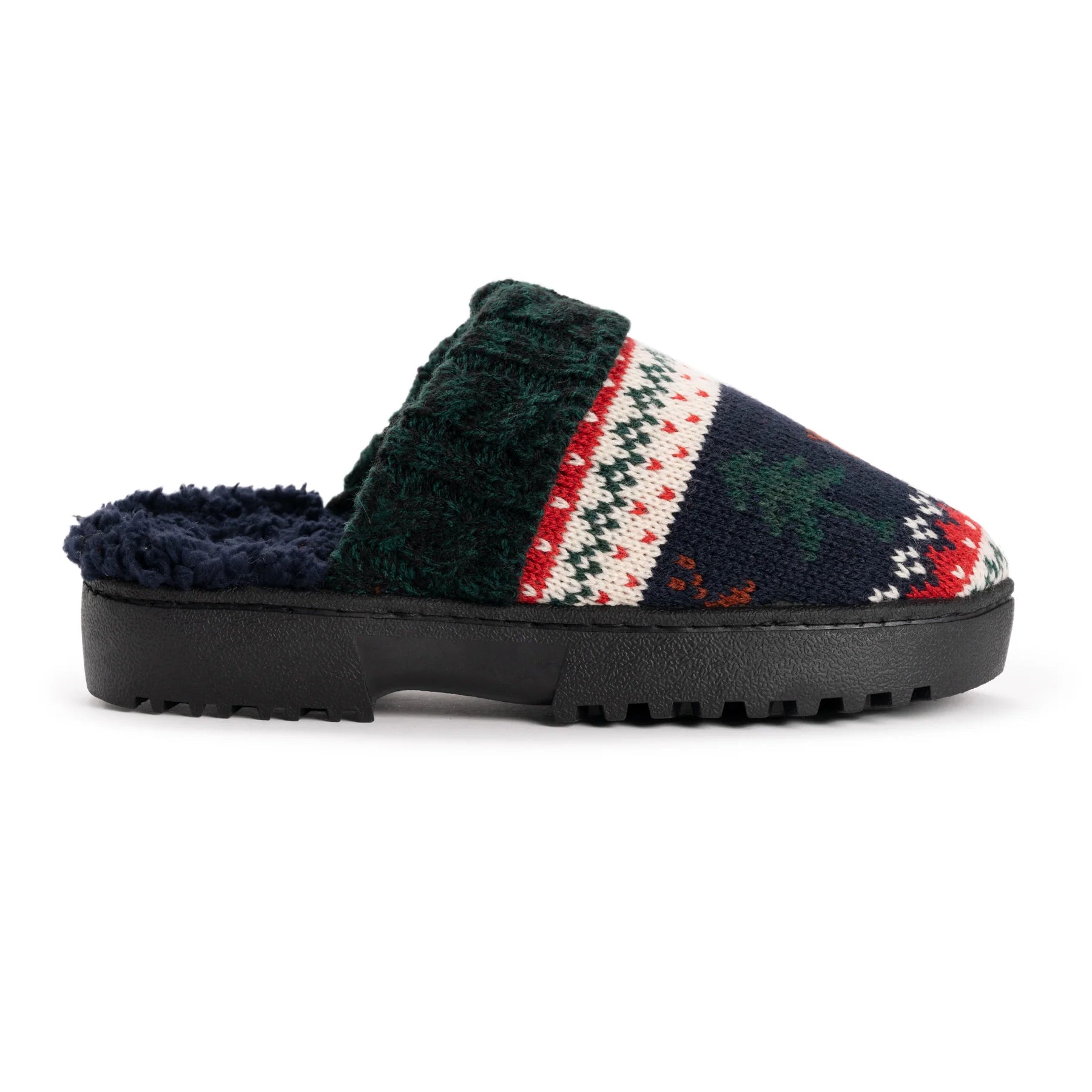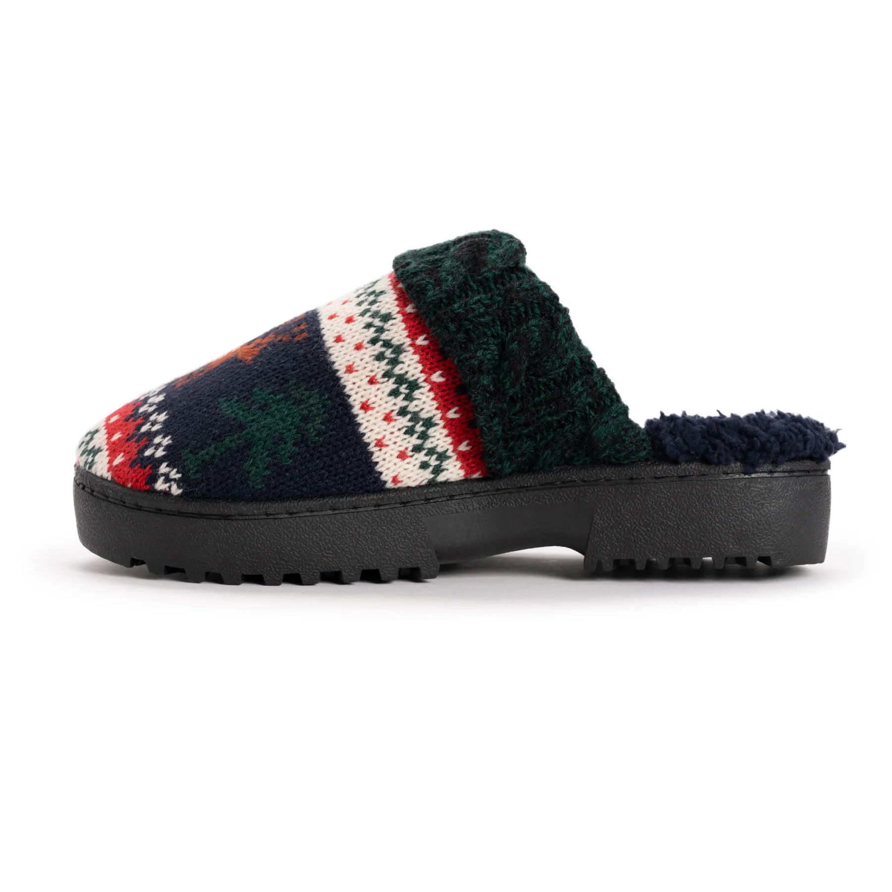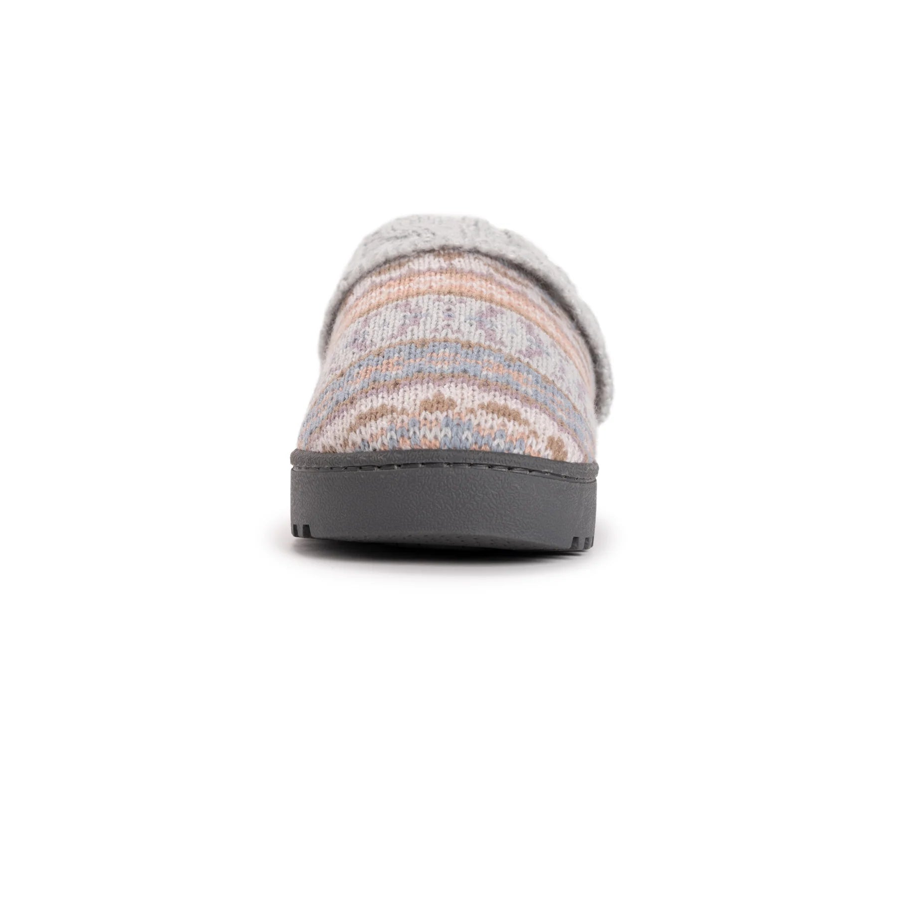 Keep your feet cozy and stylish with the Muk Luks Women's Minette Slippers. These classic slide slippers feature a soft faux shearling lining and a multi-layer comfort foam footbed for better and longer lasting support. The uniquely in-house designed knit pattern offers a timeless look, while the indoor/outdoor sole gives you comfort whether you're lounging inside or stepping out to grab the mail or run an errand. Slip into all-day warmth and style!