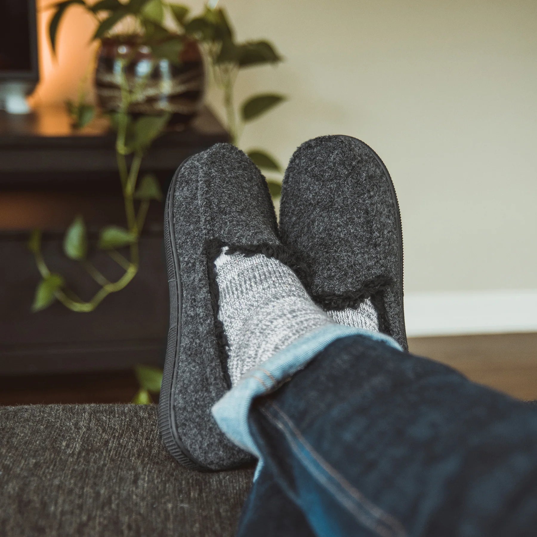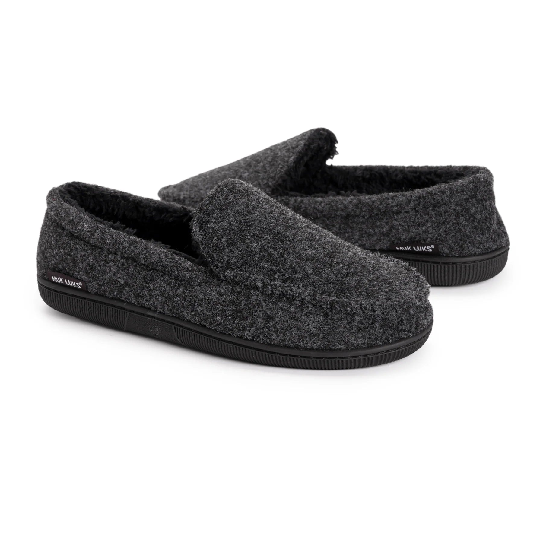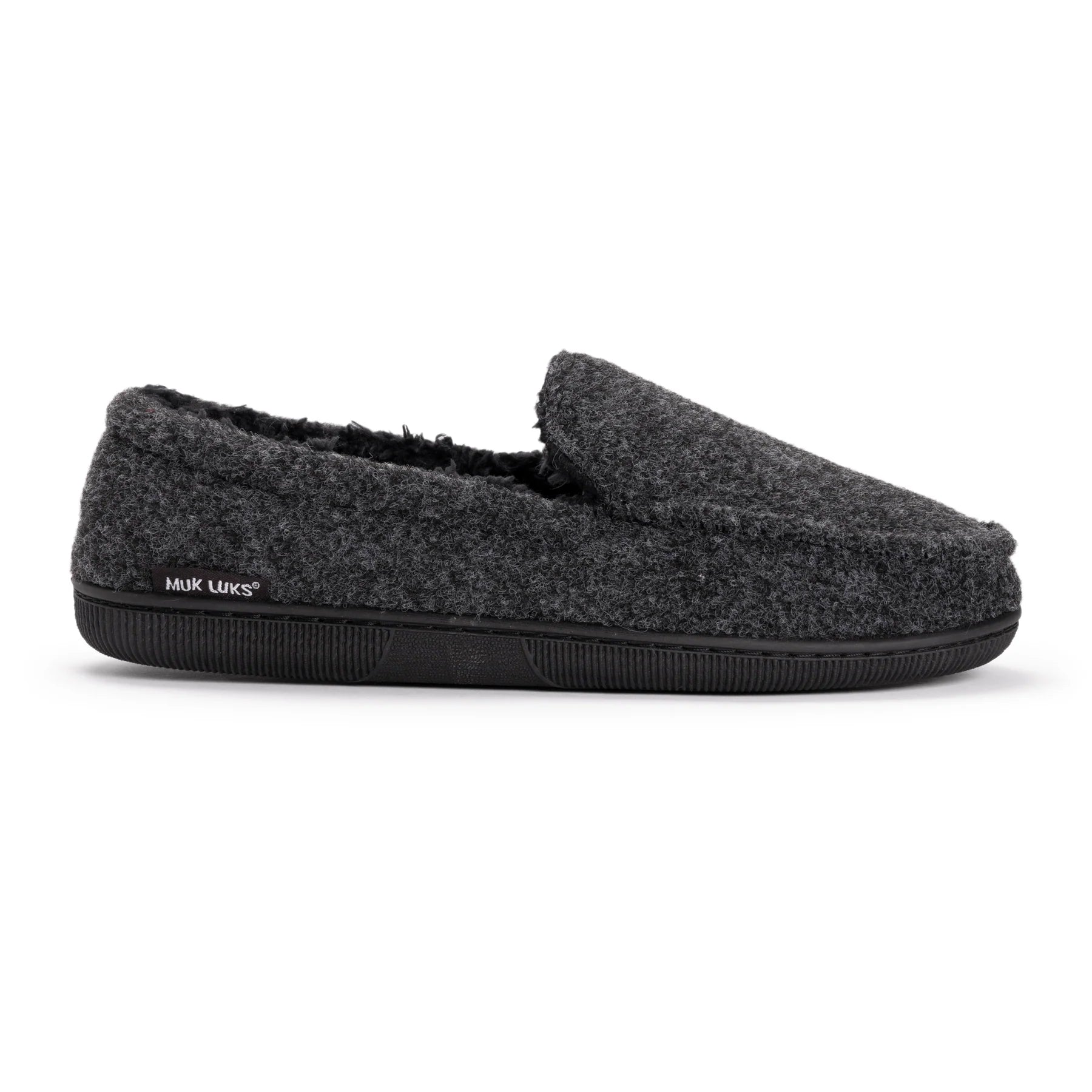 MUK LUKS Men’s Faux Wool Moccasin Slippers are a cold weather stable. Warm and comfortable, these classic pull-on moccasin slippers feature a form fitting shape and cushioned durable sole so you can rest easy after a long day.