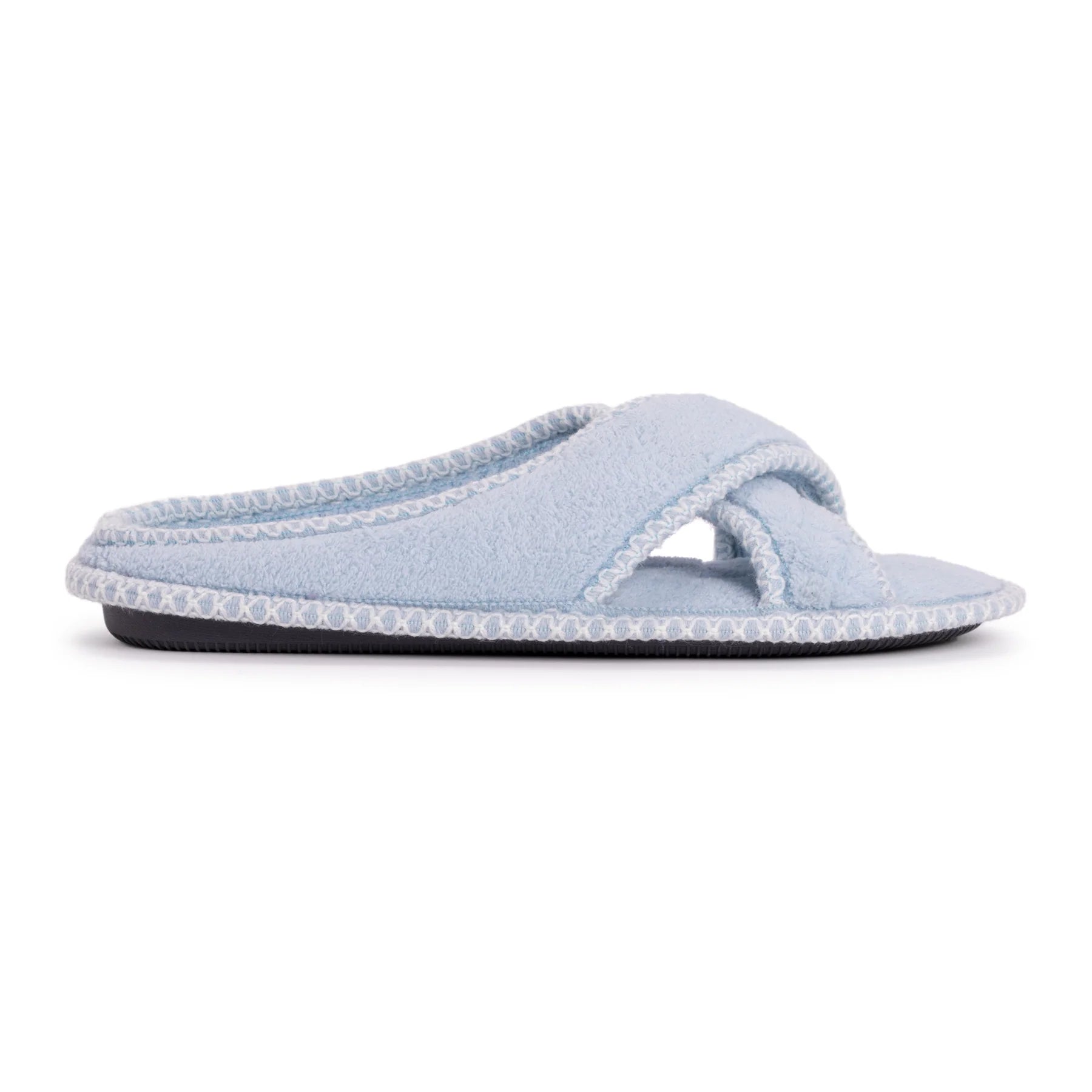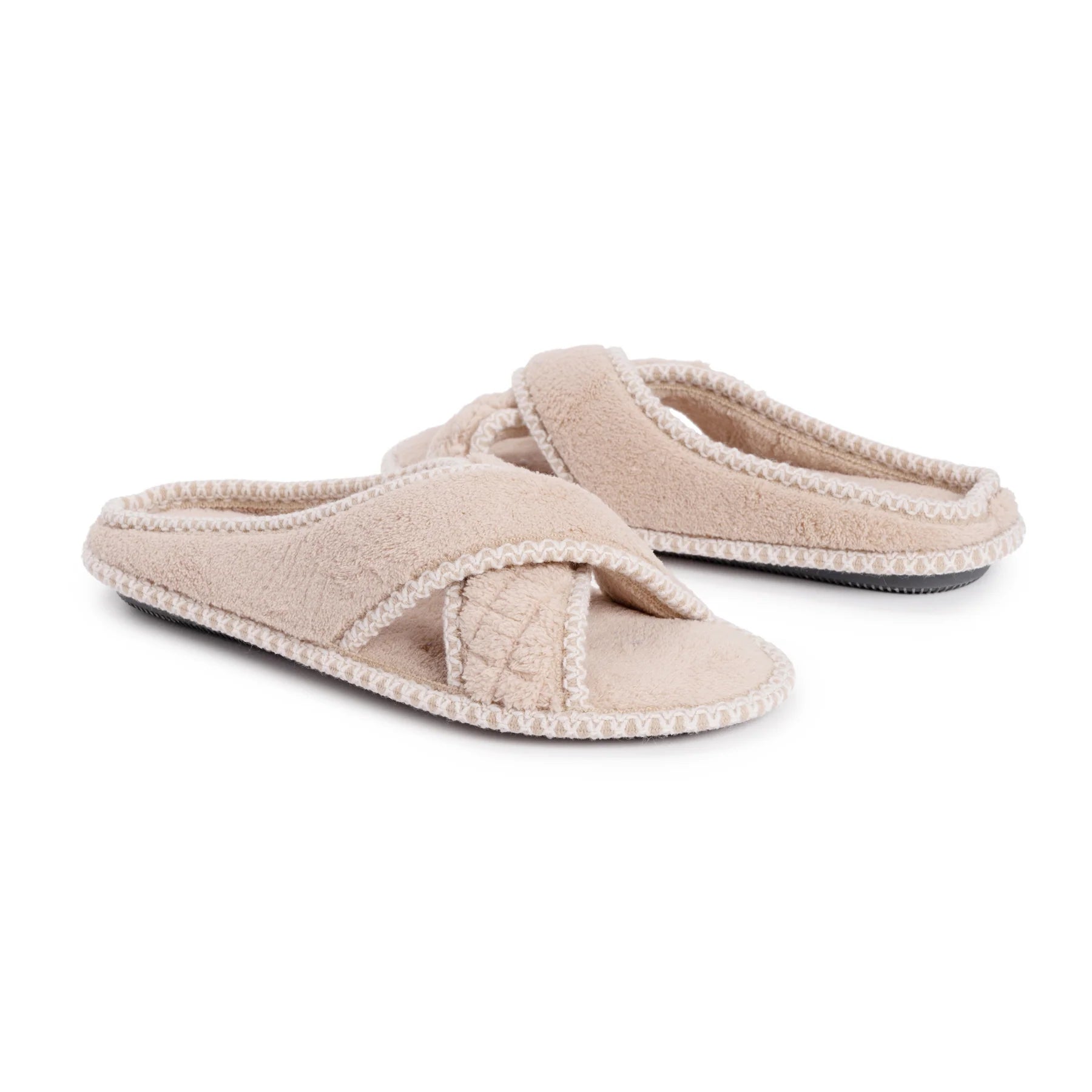 Pamper your feet by picking up a pair of our MUK LUKS® Ada Crossband Slippers. The memory foam insole will give your feet the soft and added comfort they deserve. The design allows for added flexibility and still having the slip on convenience.