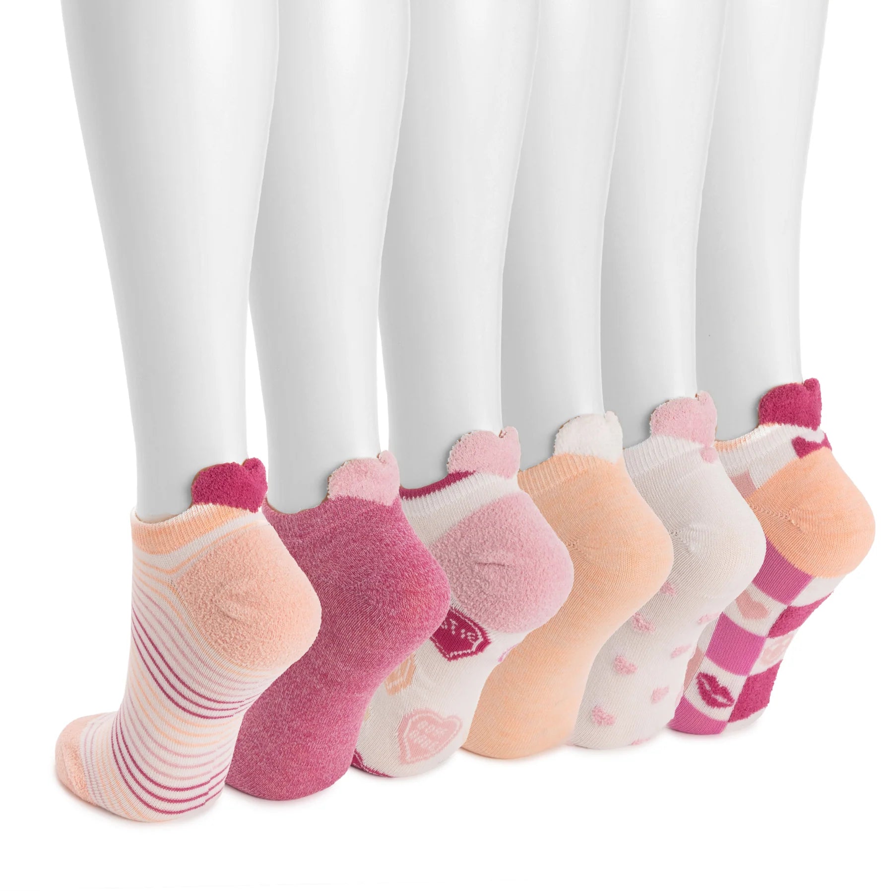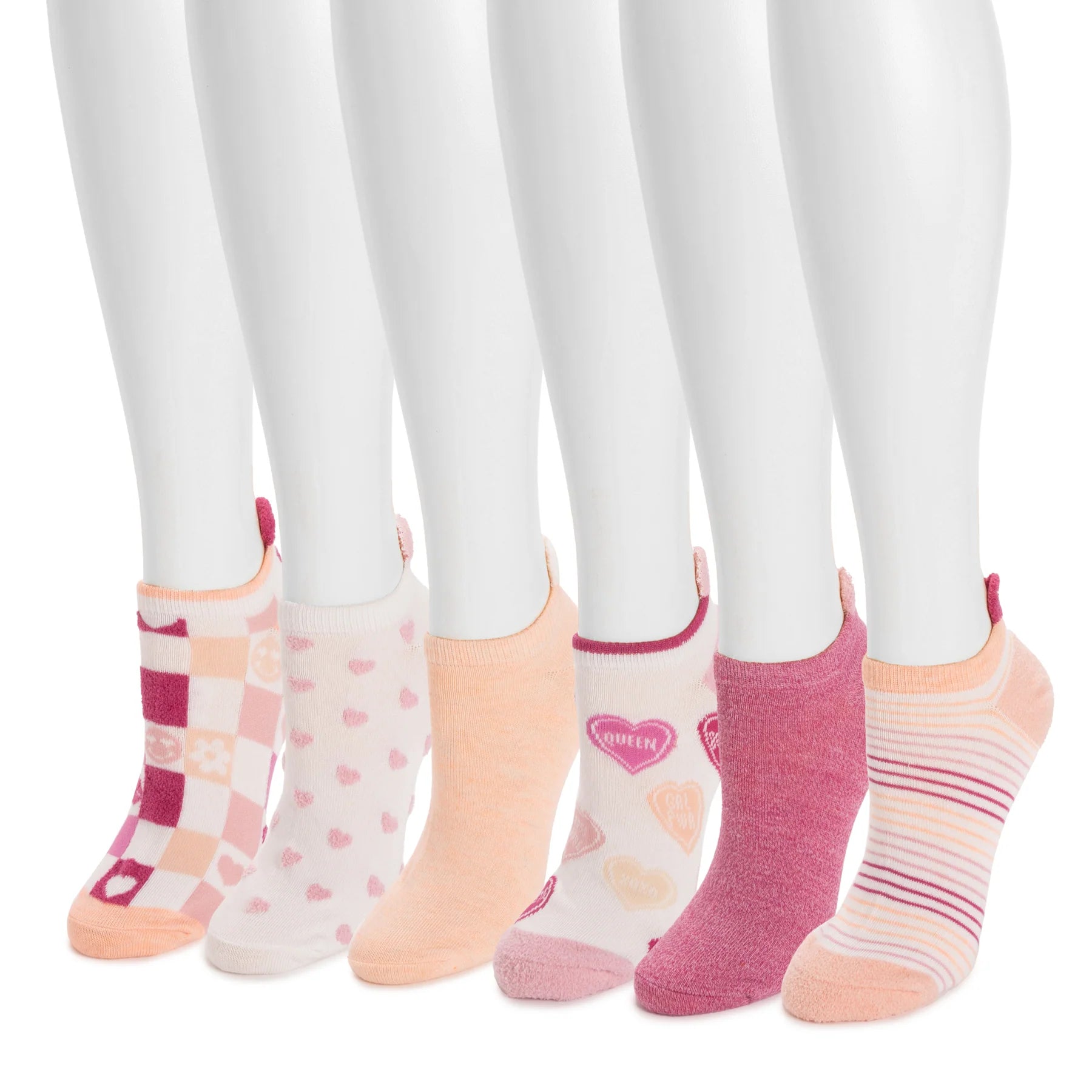 Inspired by the fun retro-style that made the pom-pom sock a favorite, the MUK LUKS Women's 3D Tab Low Cut Sock 6 Pack combines that playful aesthetic with an updated twist. These vibrant, eye-catching socks feature 3D tabs that channel the nostalgia charm while keeping your socks in place all day long. Perfect for adding a pop of color to your look, they're cozy as they are stylish - your feet and heels deserve this blast from the past!