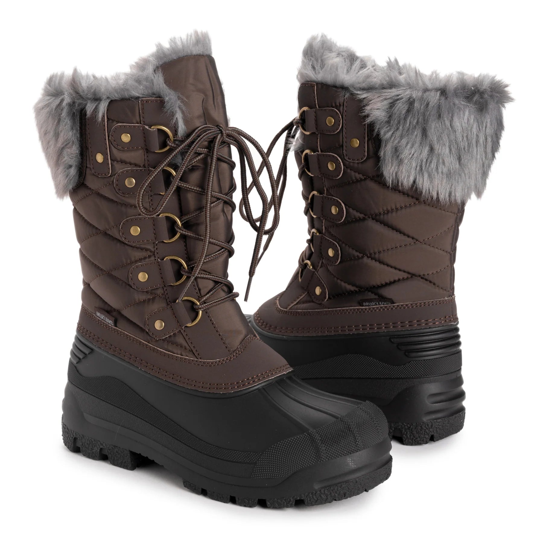 Welcome the winter elements without a worry, because your feel will be dry and cozy in the MUK LUKS Women's Paige Boots. Lace-up the tall, quilted boots to reveal the stylish faux-fur cuff, and snuggle your feet into the signature Muk Luxe lining. With a waterproof foot and Thermolite, you'll stay warm and dry no matter where your day takes you.