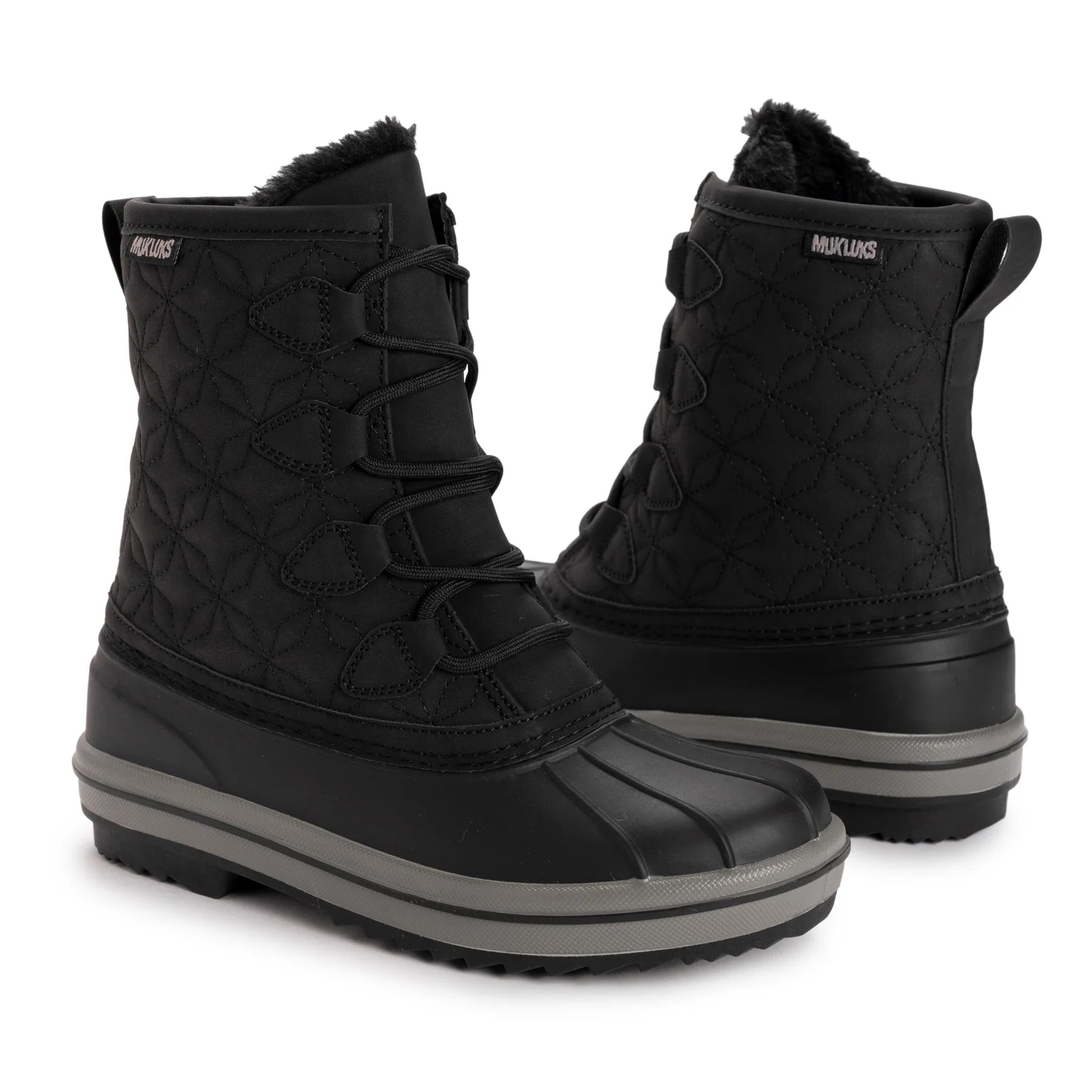 Bring on the cold, wet weather with MUK LUKS Women's Kennedy Boots. This mid-shaft duck boot goes a step beyond the others with our signature Muk Luxe lining. Splash in a puddle without worry thanks to the waterproof foot and water-repellent shaft.