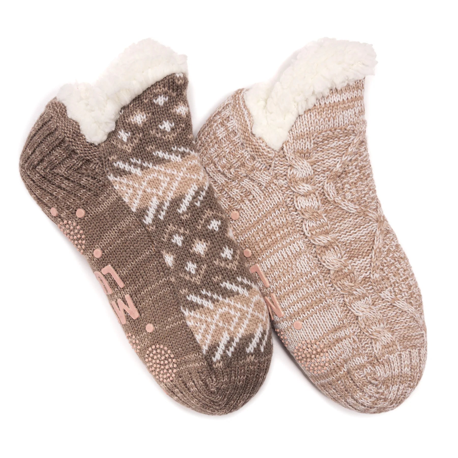 Stay warm when chilly temps arrive with MUK LUKS Women's 2-Pair Short Cabin Socks. Sweet knits pair with ultra-soft faux fur to create a warm, comfortable sock you won't want to take off.