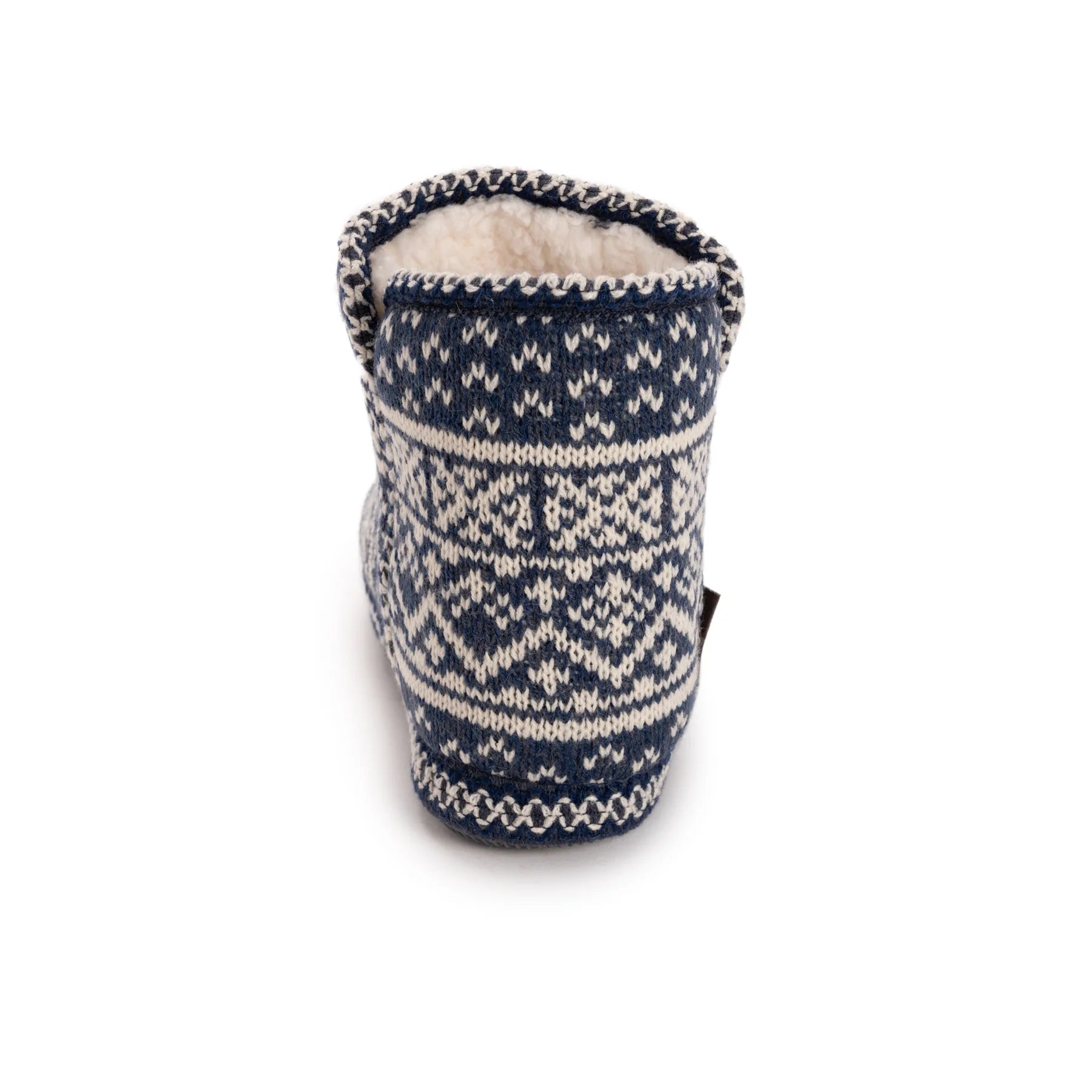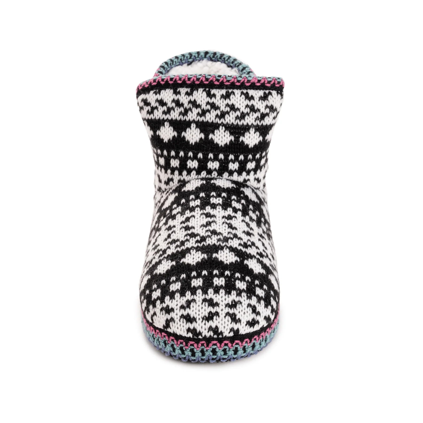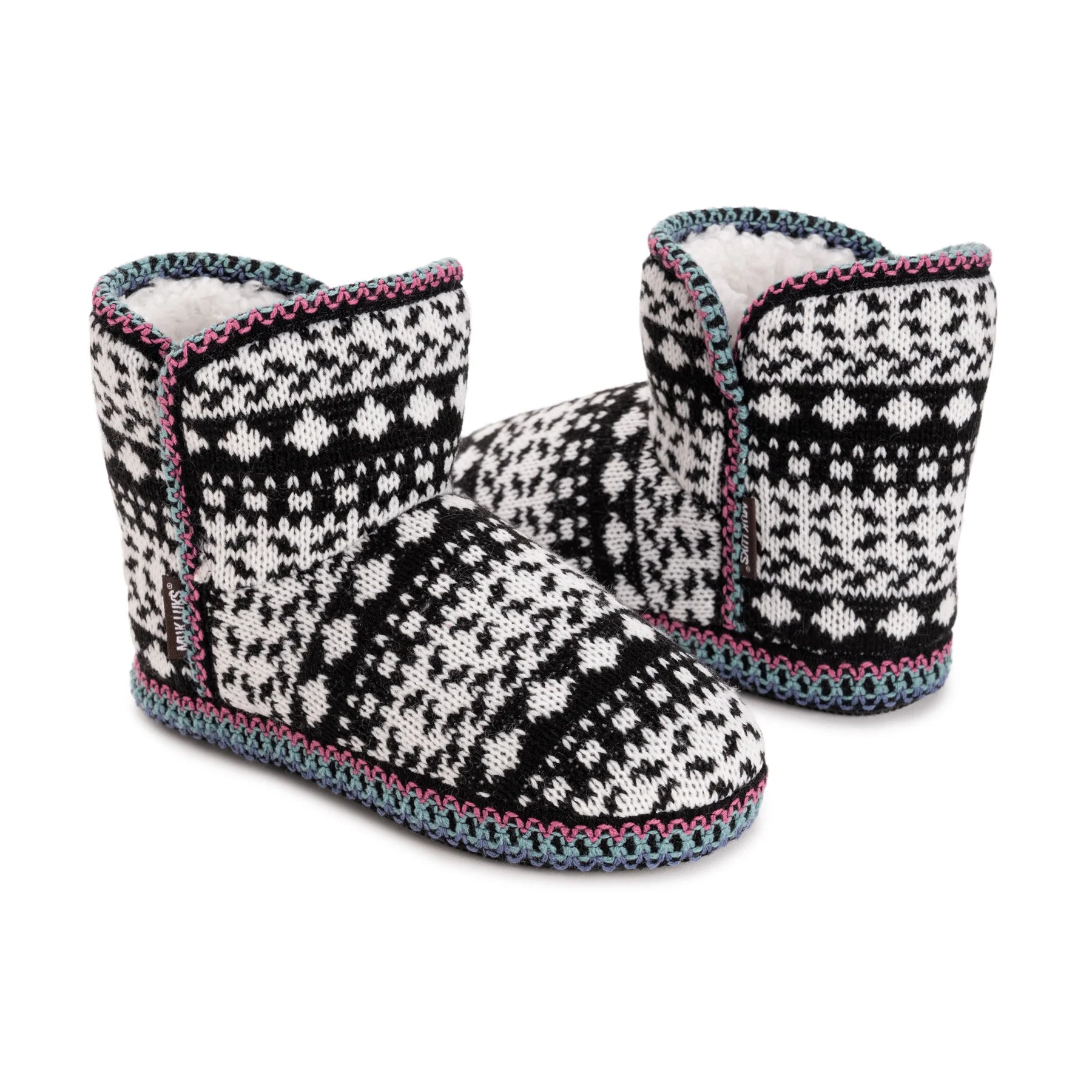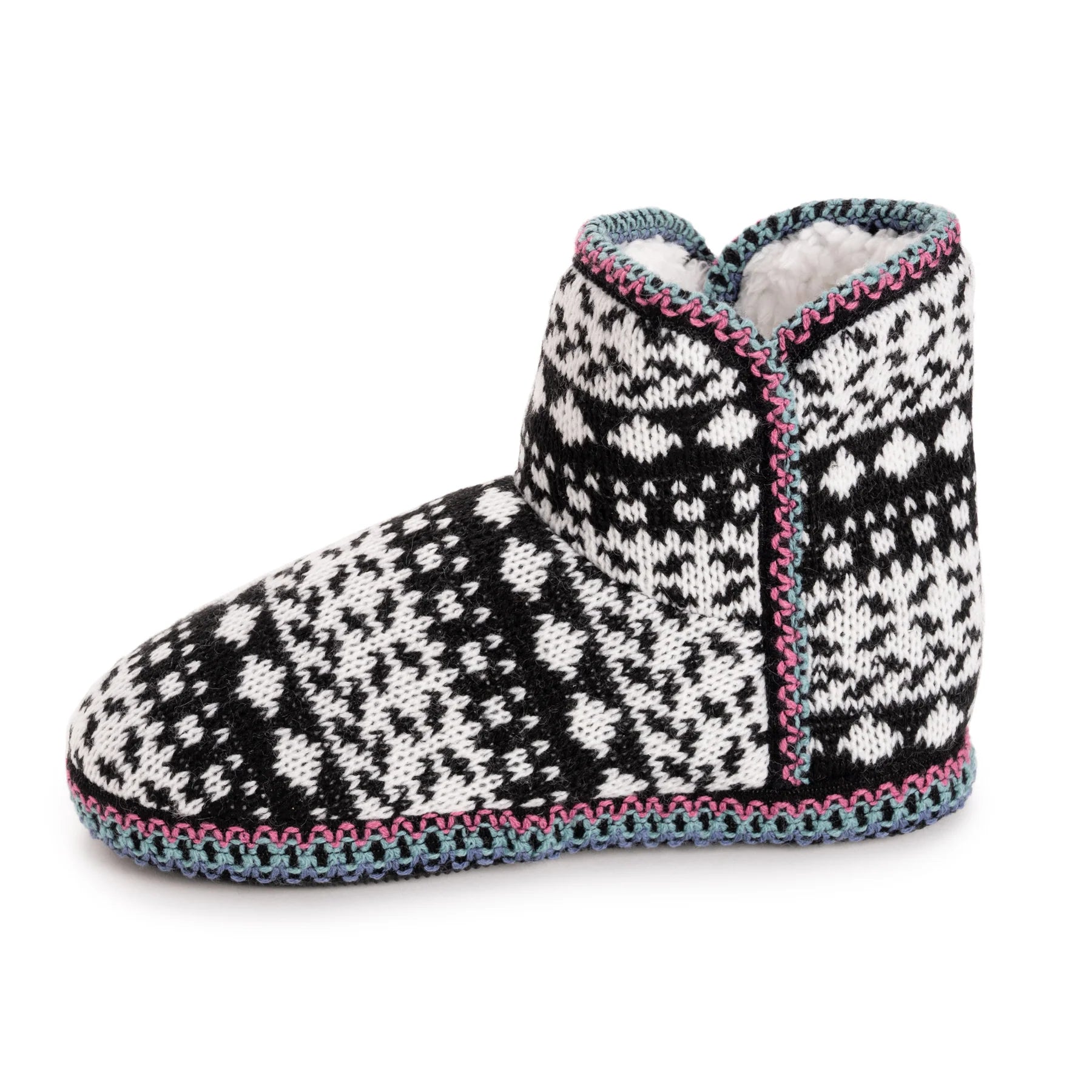 Experience cozy warmth and serious comfort with our Leigh Bootie Slippers. Every knit pattern is unique and personally designed in-house. These plush knit bootie slippers feature a soft faux fur lining with a durable, treaded non-slip outsole. The multi-layer comfort foam footbed is made for better and longer lasting support, while the stylish design complements any outfit.