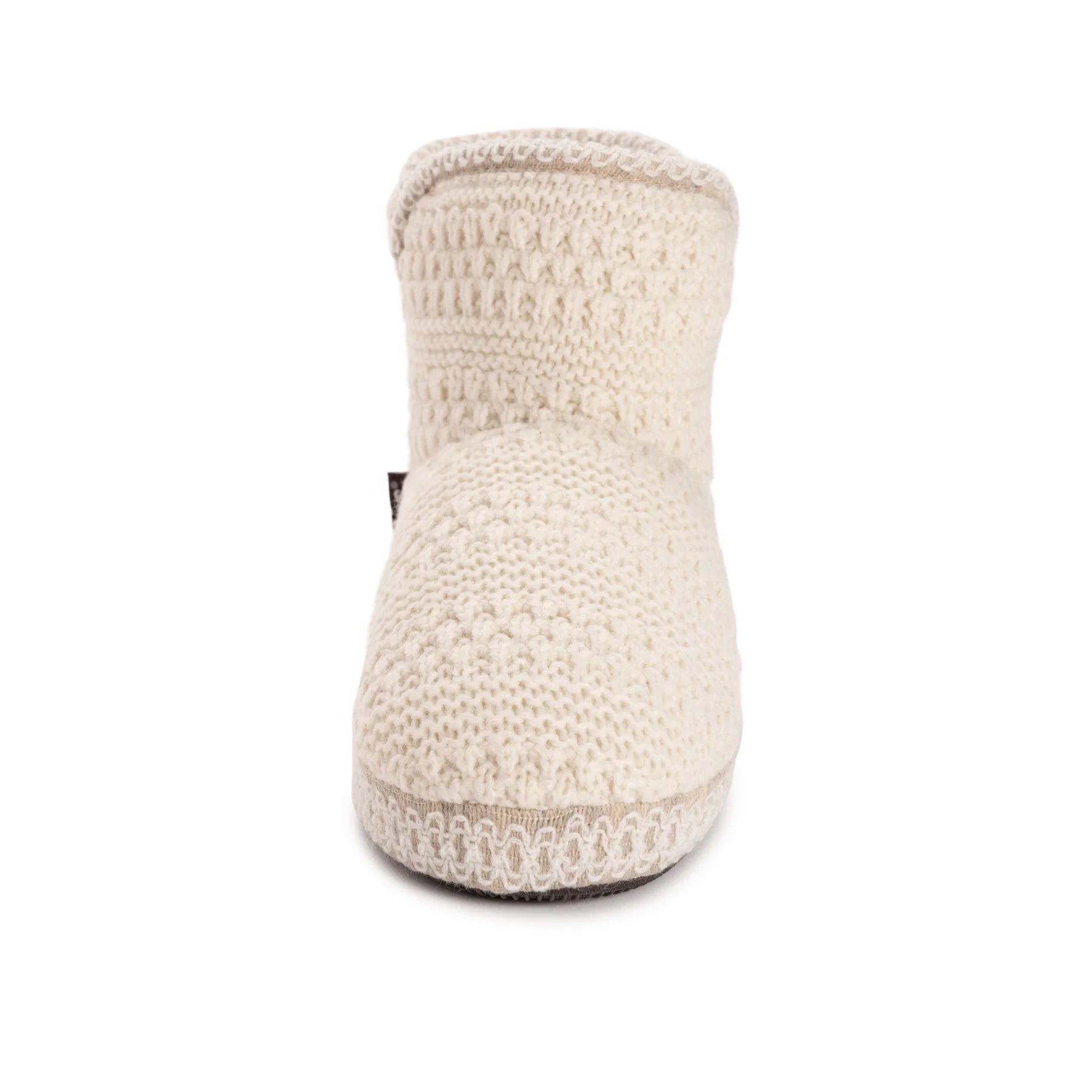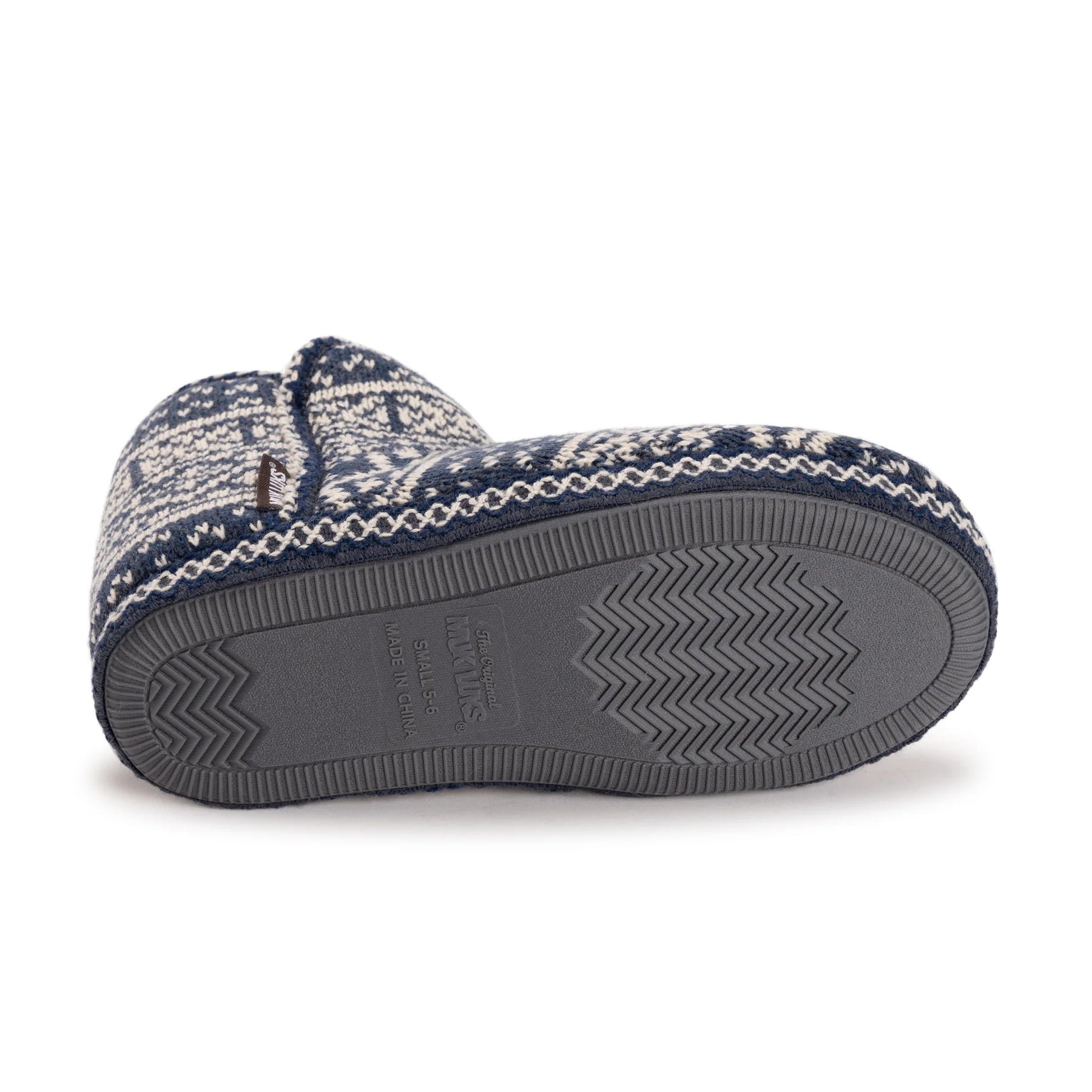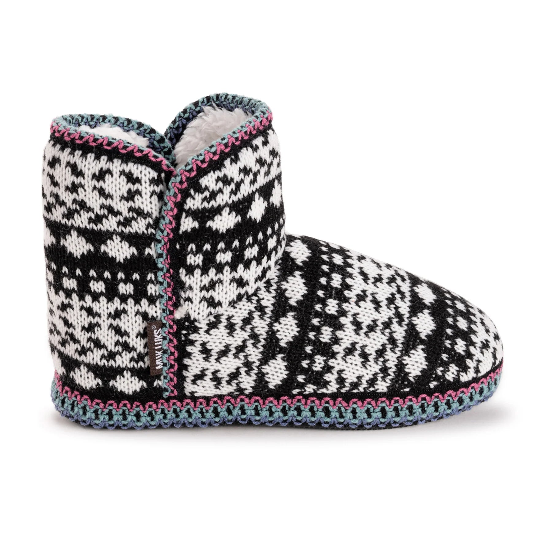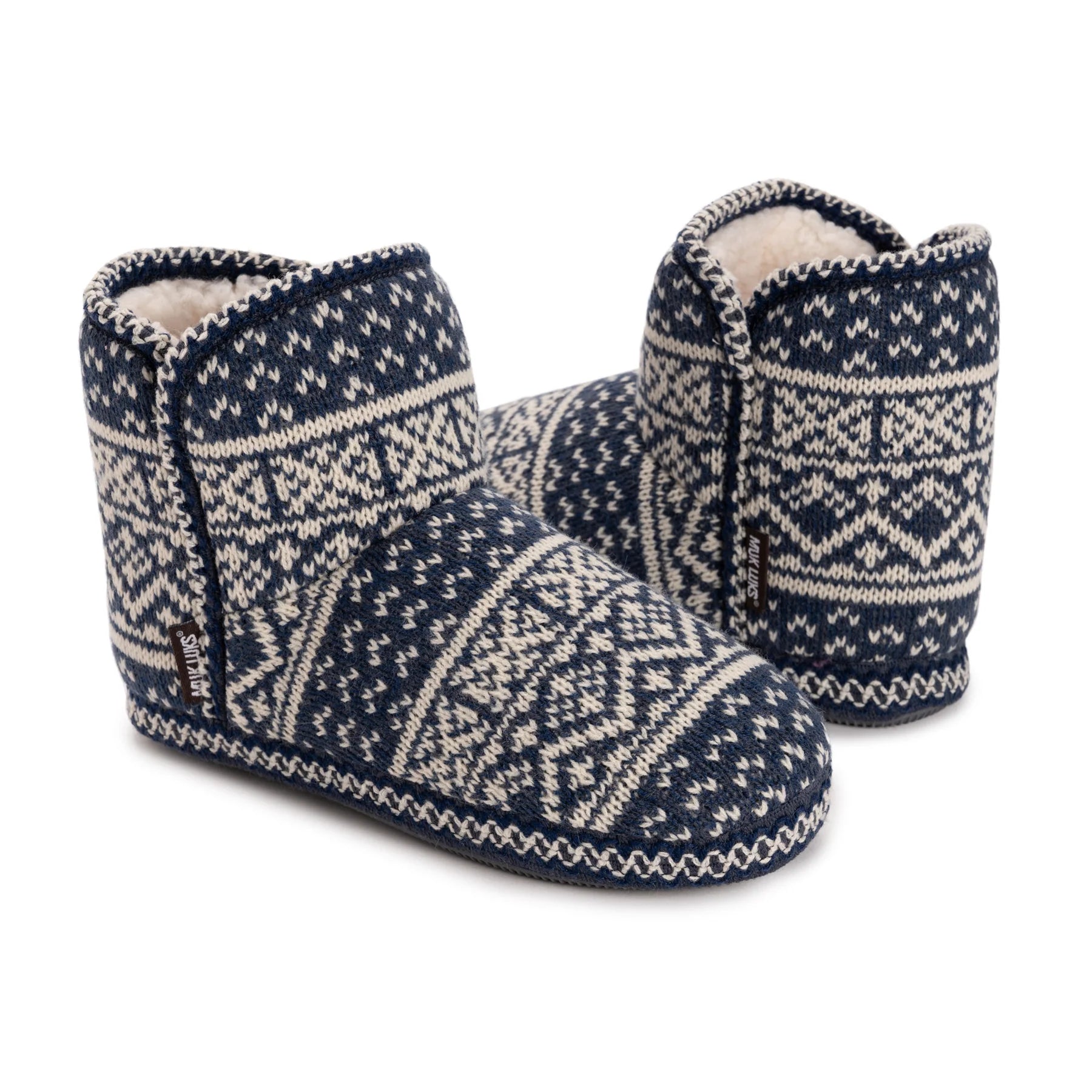 Experience cozy warmth and serious comfort with our Leigh Bootie Slippers. Every knit pattern is unique and personally designed in-house. These plush knit bootie slippers feature a soft faux fur lining with a durable, treaded non-slip outsole. The multi-layer comfort foam footbed is made for better and longer lasting support, while the stylish design complements any outfit.