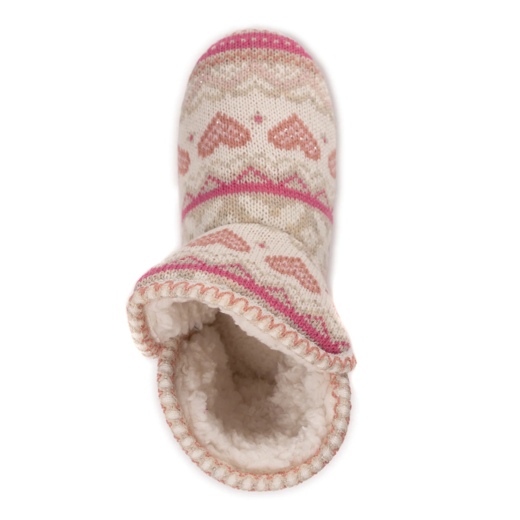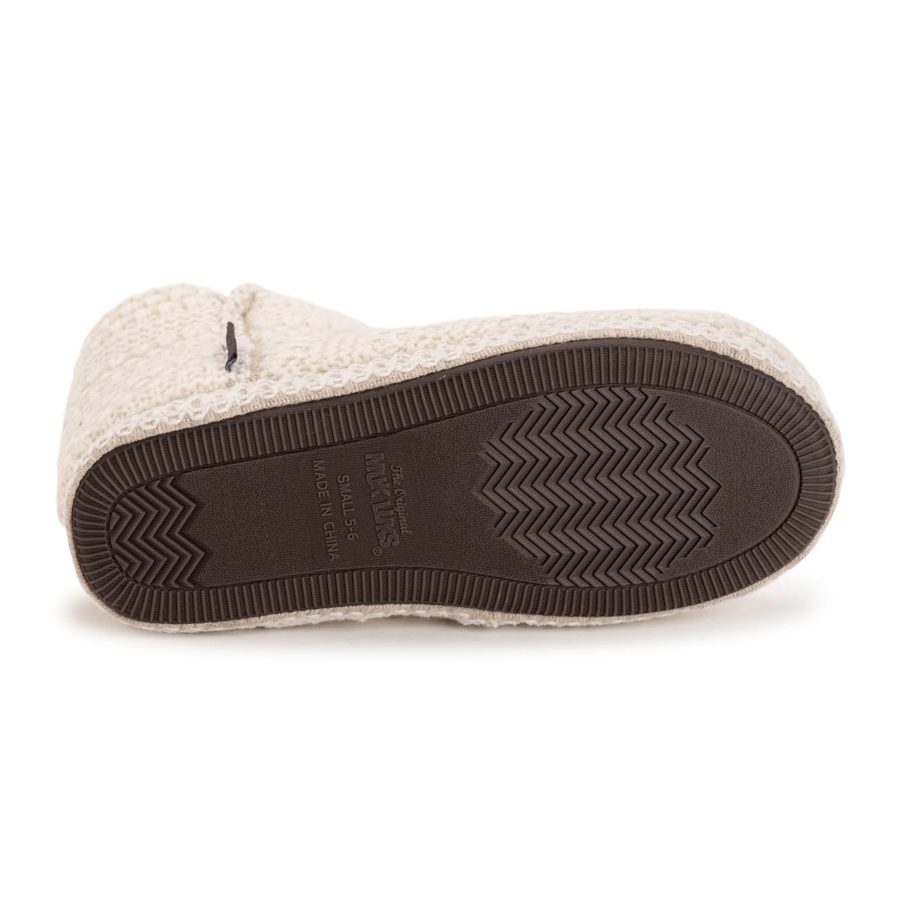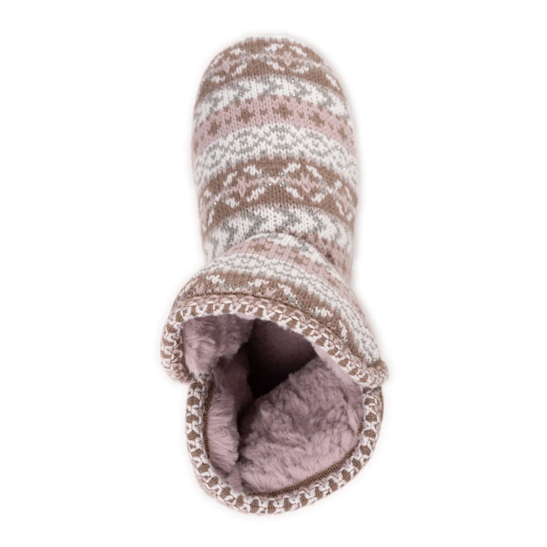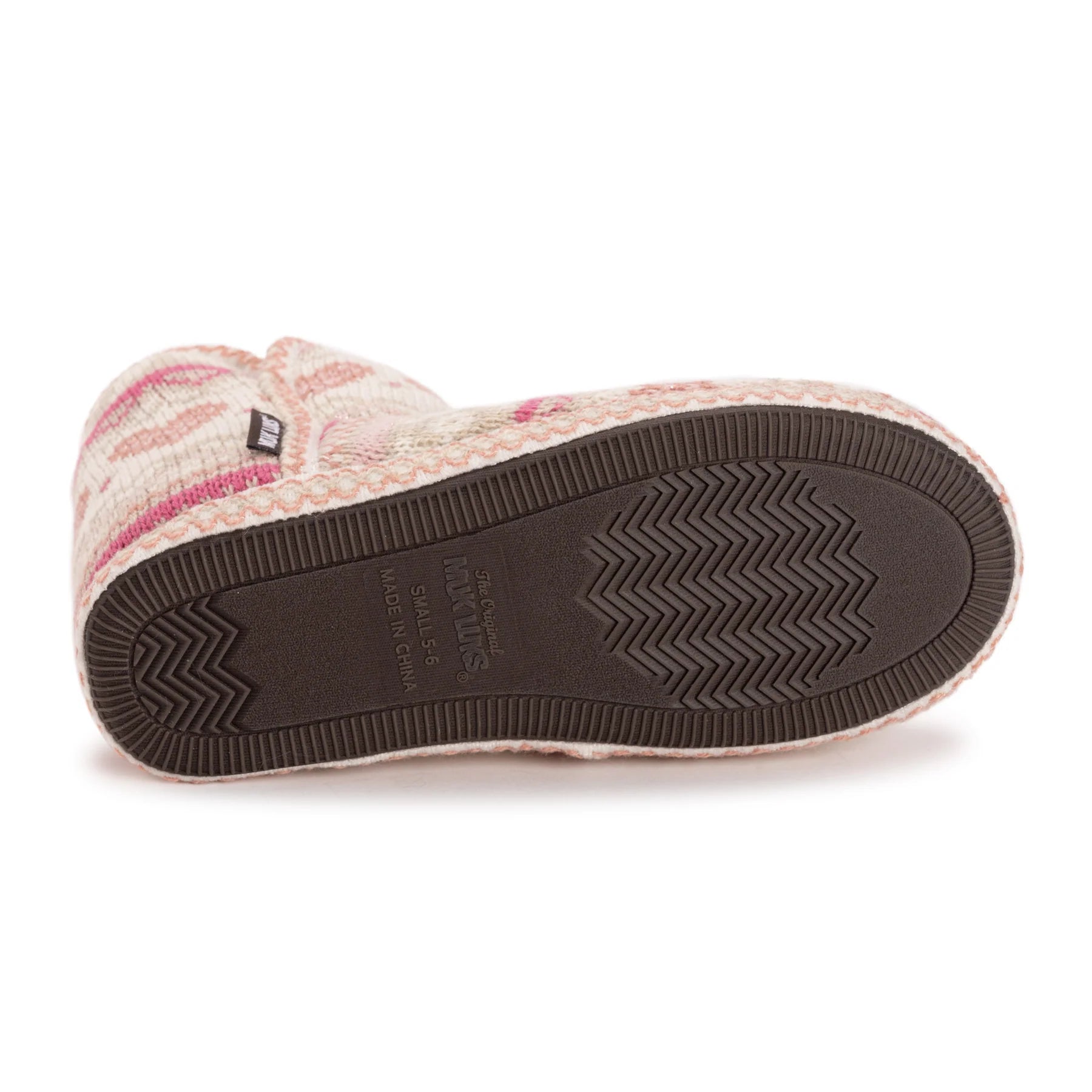 Experience cozy warmth and serious comfort with our Leigh Bootie Slippers. Every knit pattern is unique and personally designed in-house. These plush knit bootie slippers feature a soft faux fur lining with a durable, treaded non-slip outsole. The multi-layer comfort foam footbed is made for better and longer lasting support, while the stylish design complements any outfit.