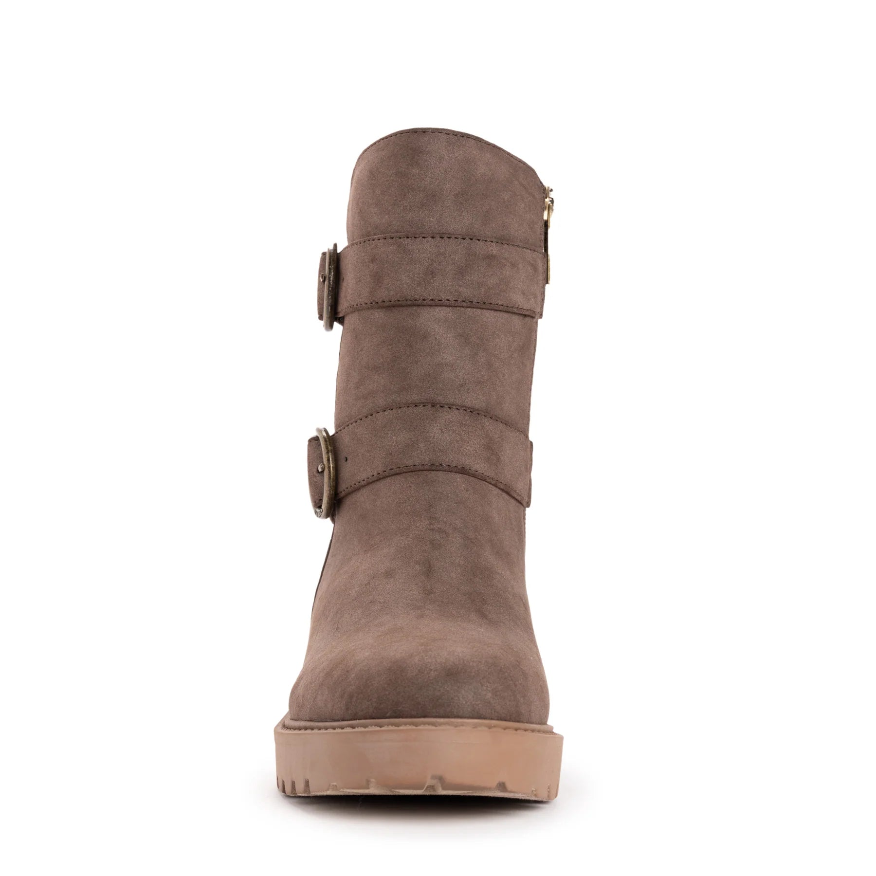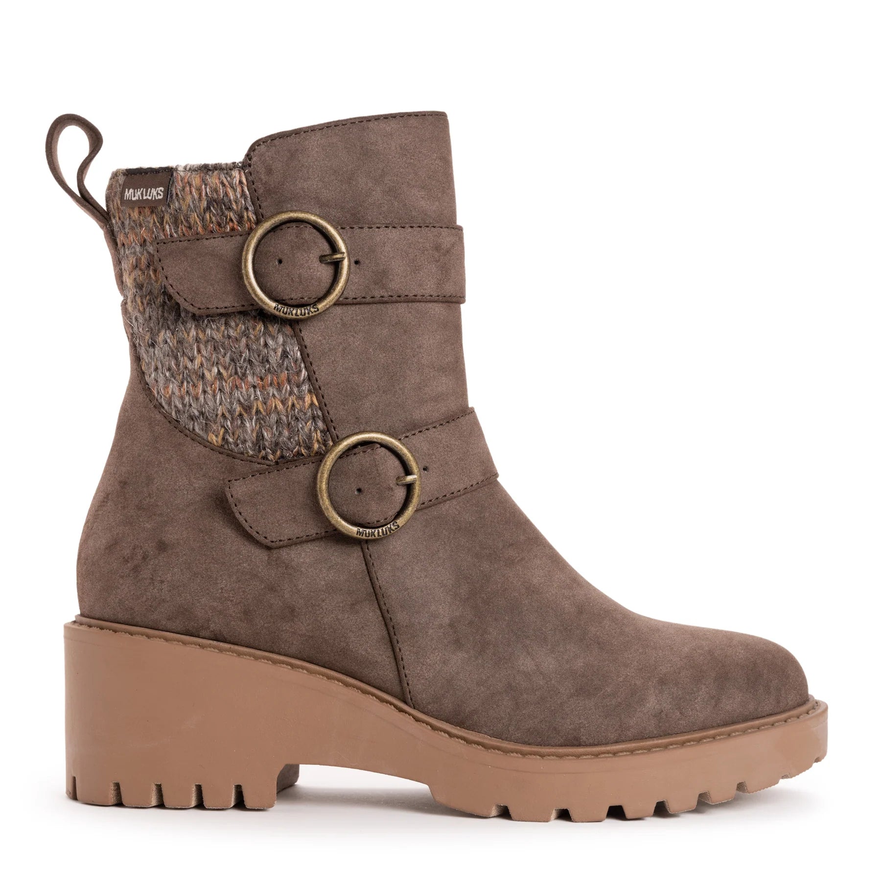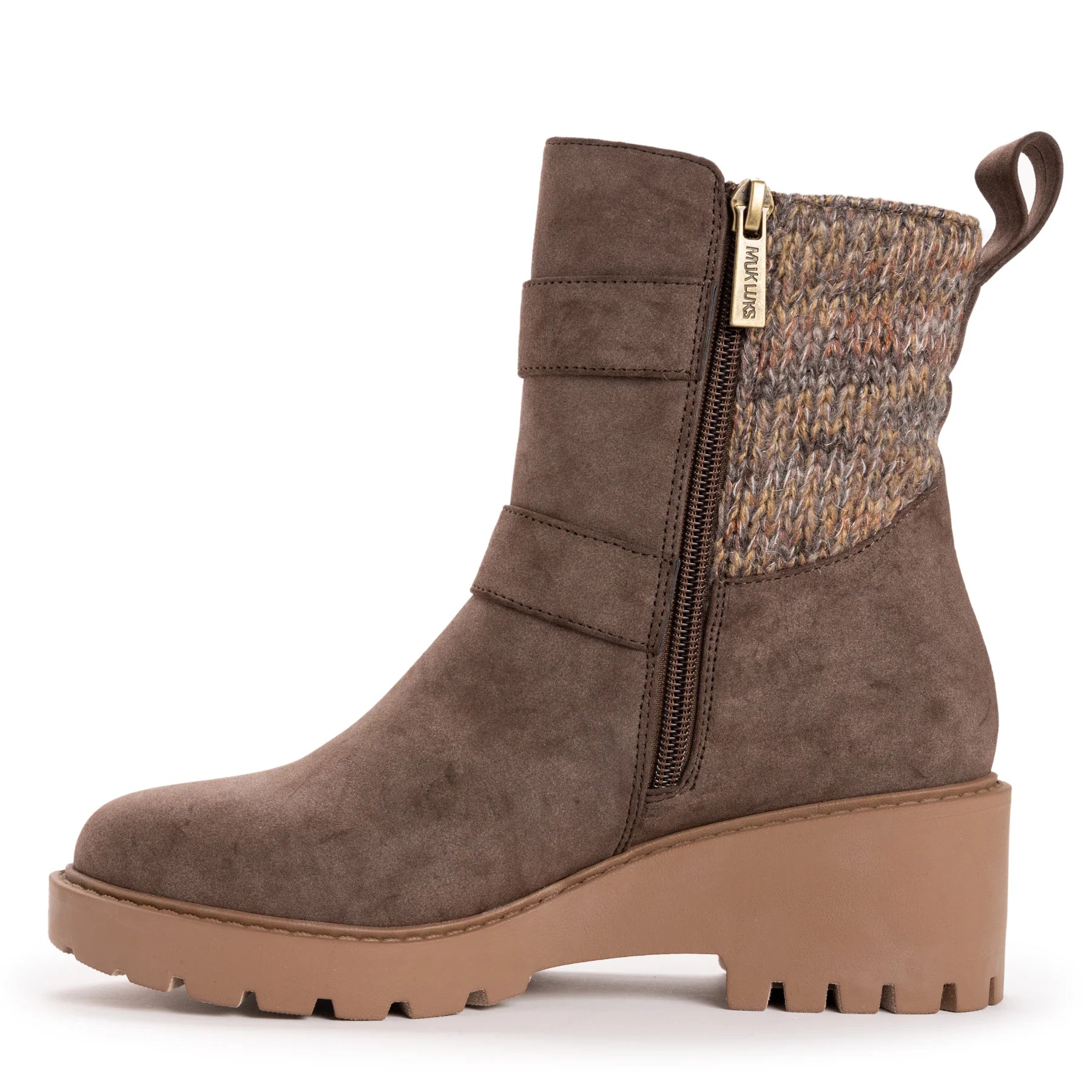 The chunky lug sole of the MUK LUKS Women's Faith Boot puts a 90s spin on this side-zip modern boot. Not only will you appreciate the neutral sweater detail and buckles, but your feet will feel cozy, thanks to the signature Muk Luxe lining. Sweater Detail. Spot clean, no bleach, lay flat to dry.