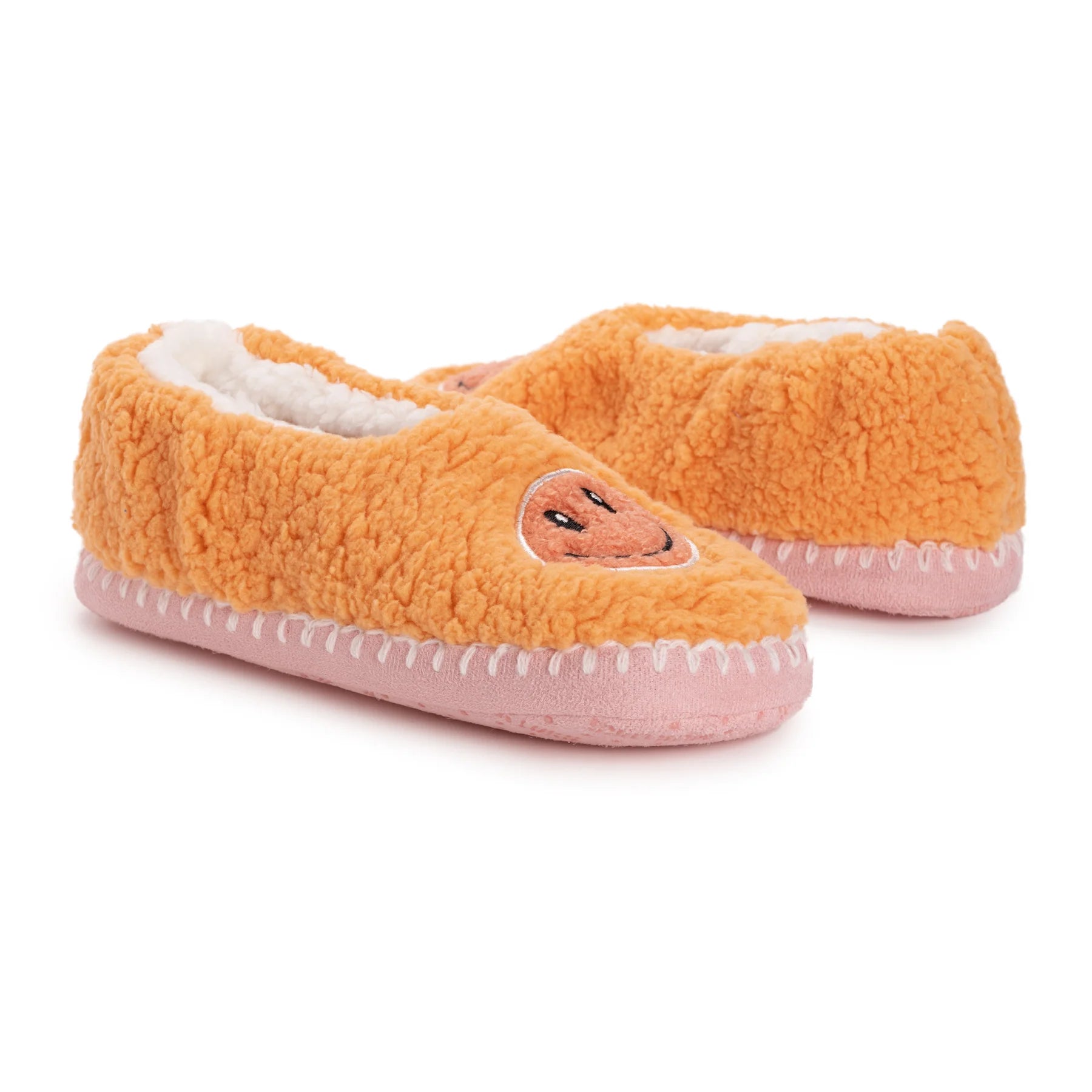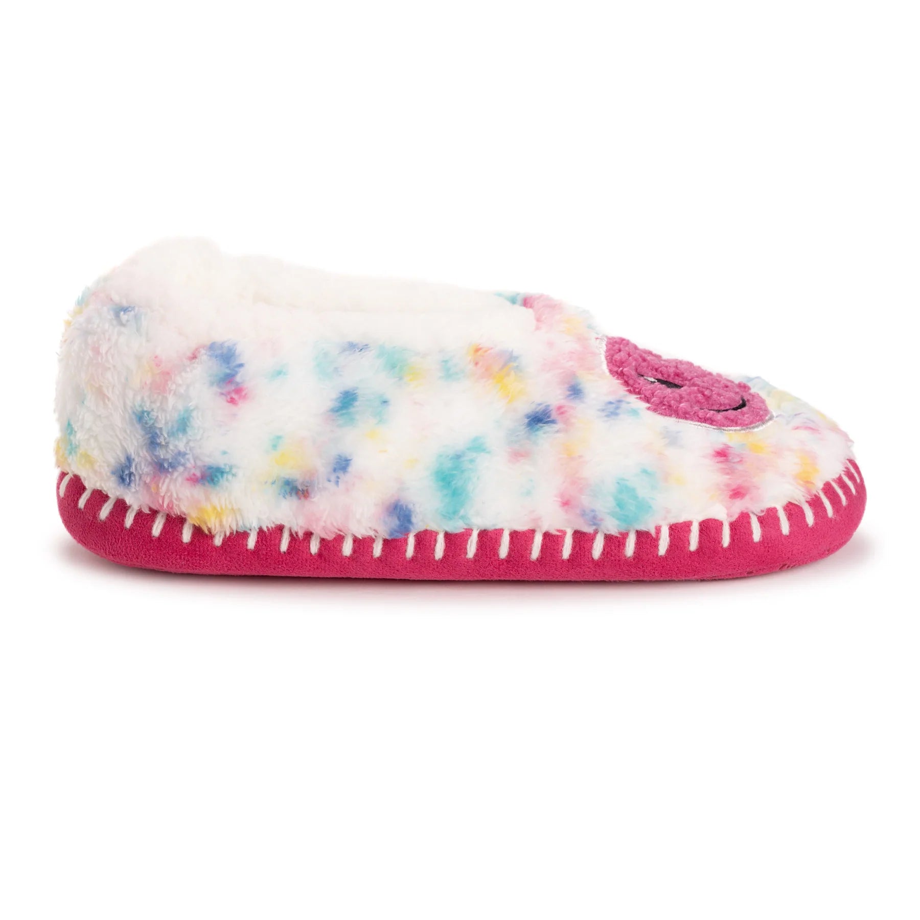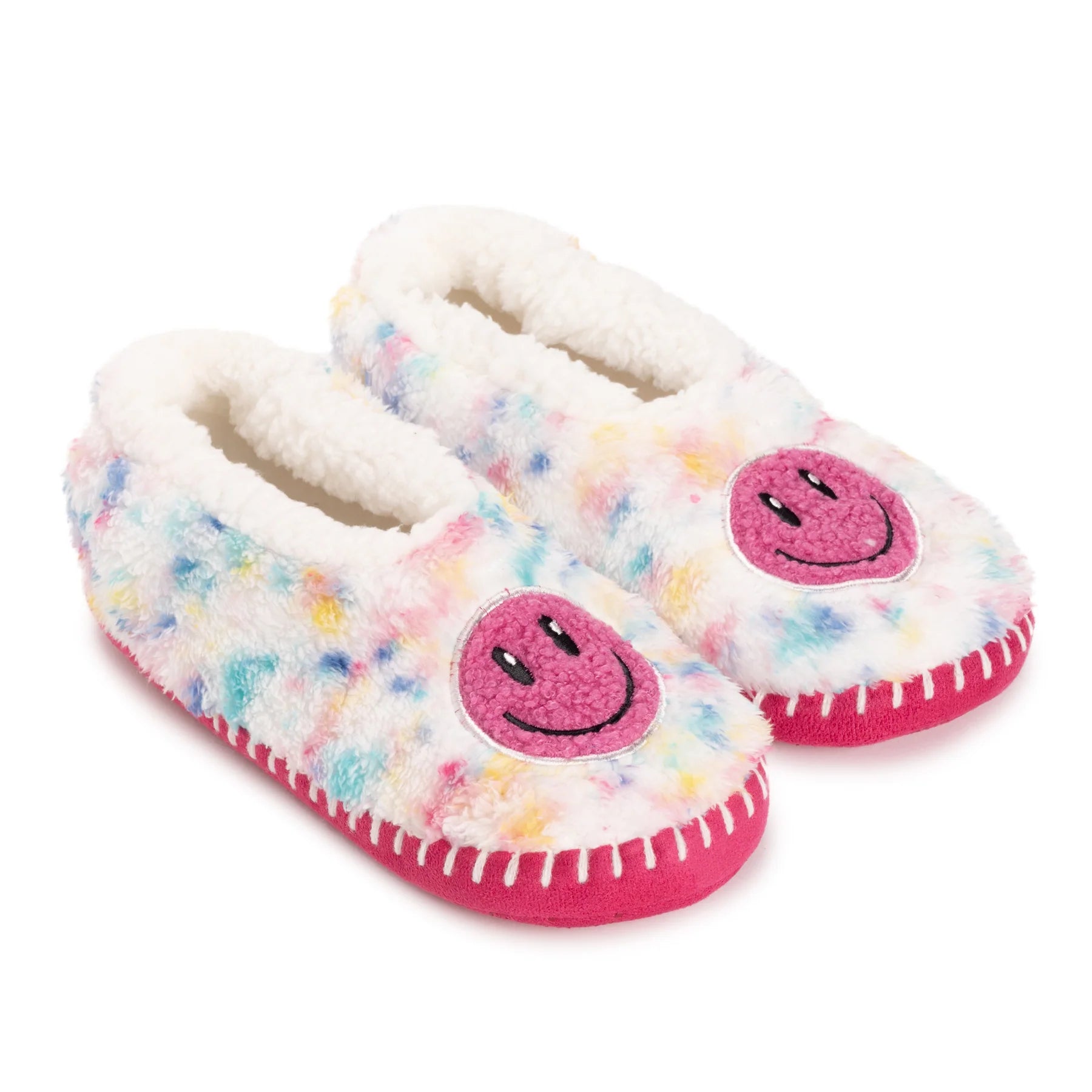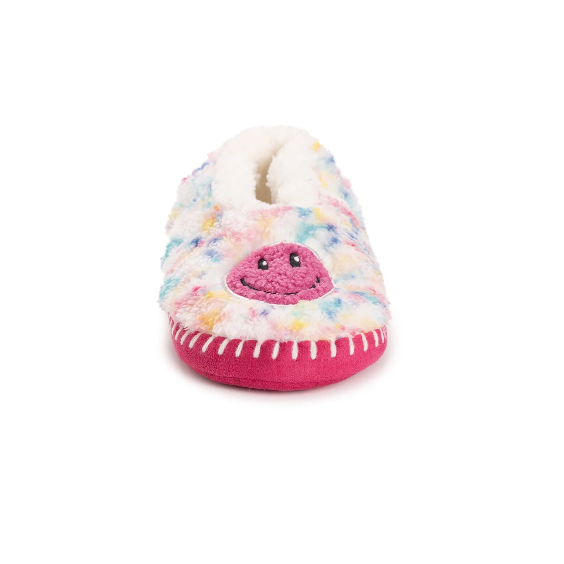 Wrap your feet in comfort and whimsy with MUK LUKS Women's Ballerina Slippers where style meets relaxation effortlessly. Featuring a faux Sherpa lining, these ballerina slippers provide a plush and warm embrace for your feet. The fun smiley face design adds a playful touch to your downtime, turning each moment into a joyful occasion. The No-Skid PVC Dot Sole ensures stability and traction, allowing you to move around with confidence on various indoor surfaces. These MUK LUKS Ballerina slippers are designed for a delightful lounging experience, making every step a cozy delight. Machine wash cold, lay flat to dry.