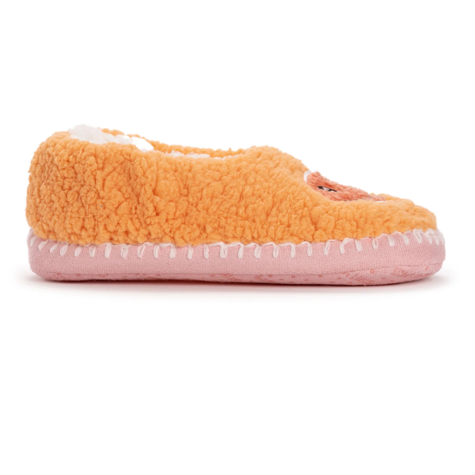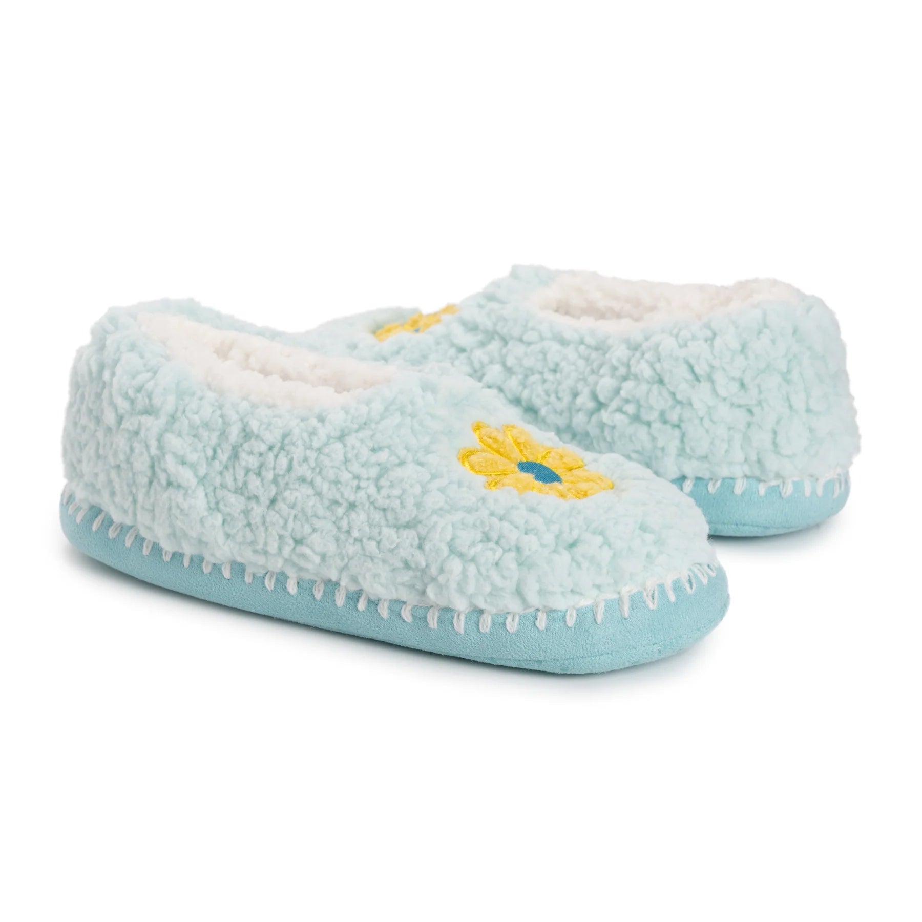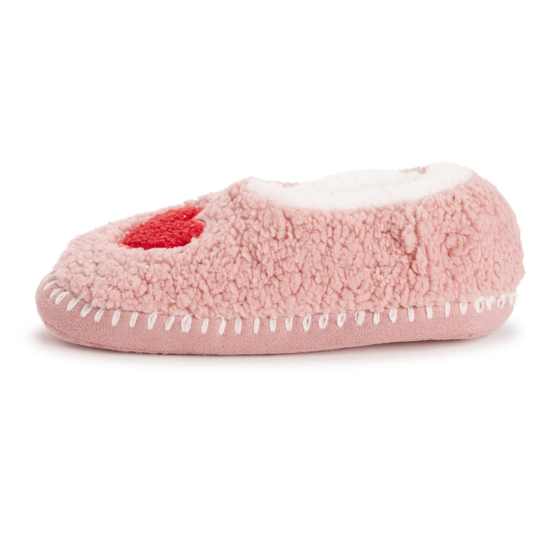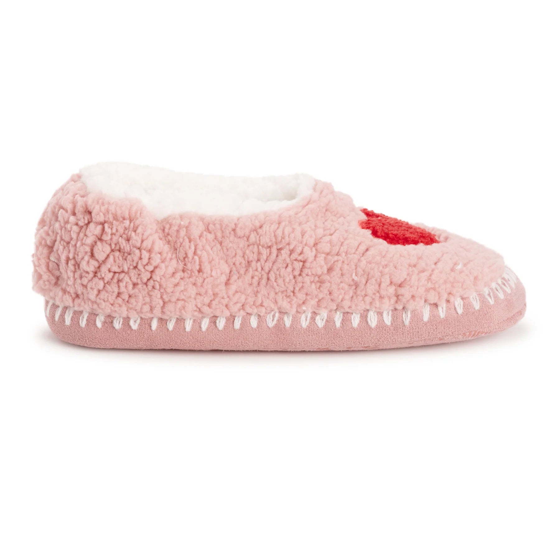 Wrap your feet in comfort and whimsy with MUK LUKS Women's Ballerina Slippers where style meets relaxation effortlessly. Featuring a faux Sherpa lining, these ballerina slippers provide a plush and warm embrace for your feet. The fun smiley face design adds a playful touch to your downtime, turning each moment into a joyful occasion. The No-Skid PVC Dot Sole ensures stability and traction, allowing you to move around with confidence on various indoor surfaces. These MUK LUKS Ballerina slippers are designed for a delightful lounging experience, making every step a cozy delight. Machine wash cold, lay flat to dry.