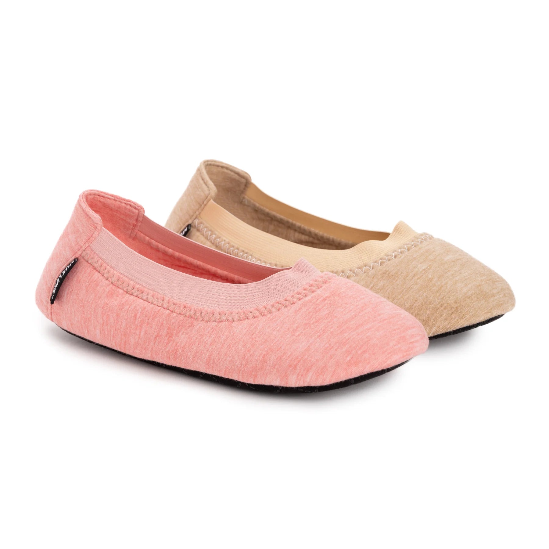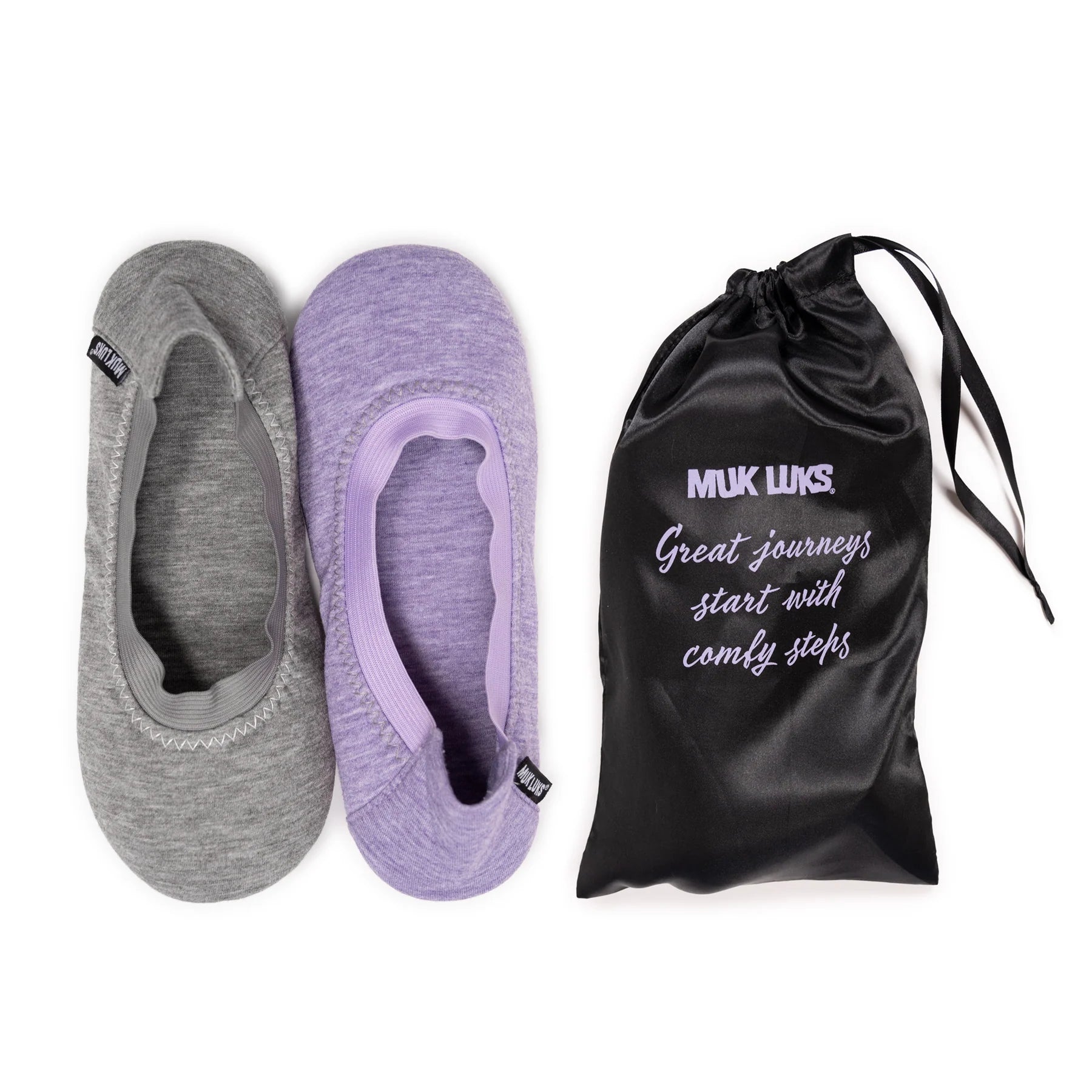 Experience Ultimate Comfort On-the-Go with MUK LUKS Women's 2 Pair Pack Travel Slippers your perfect companions for comfort on the move. With a luxurious multi-layer foam cushion and convenient step-down heel, these slippers provide unmatched comfort and functionality. Crafted to be lightweight, these travel slippers won't weigh you down! Fold them into your suitcase or carry-on easily in a special bonus travel bag! Whether you're on a plane, in a hotel, or simply relaxing at home, enjoy comfort wherever your journey takes you.