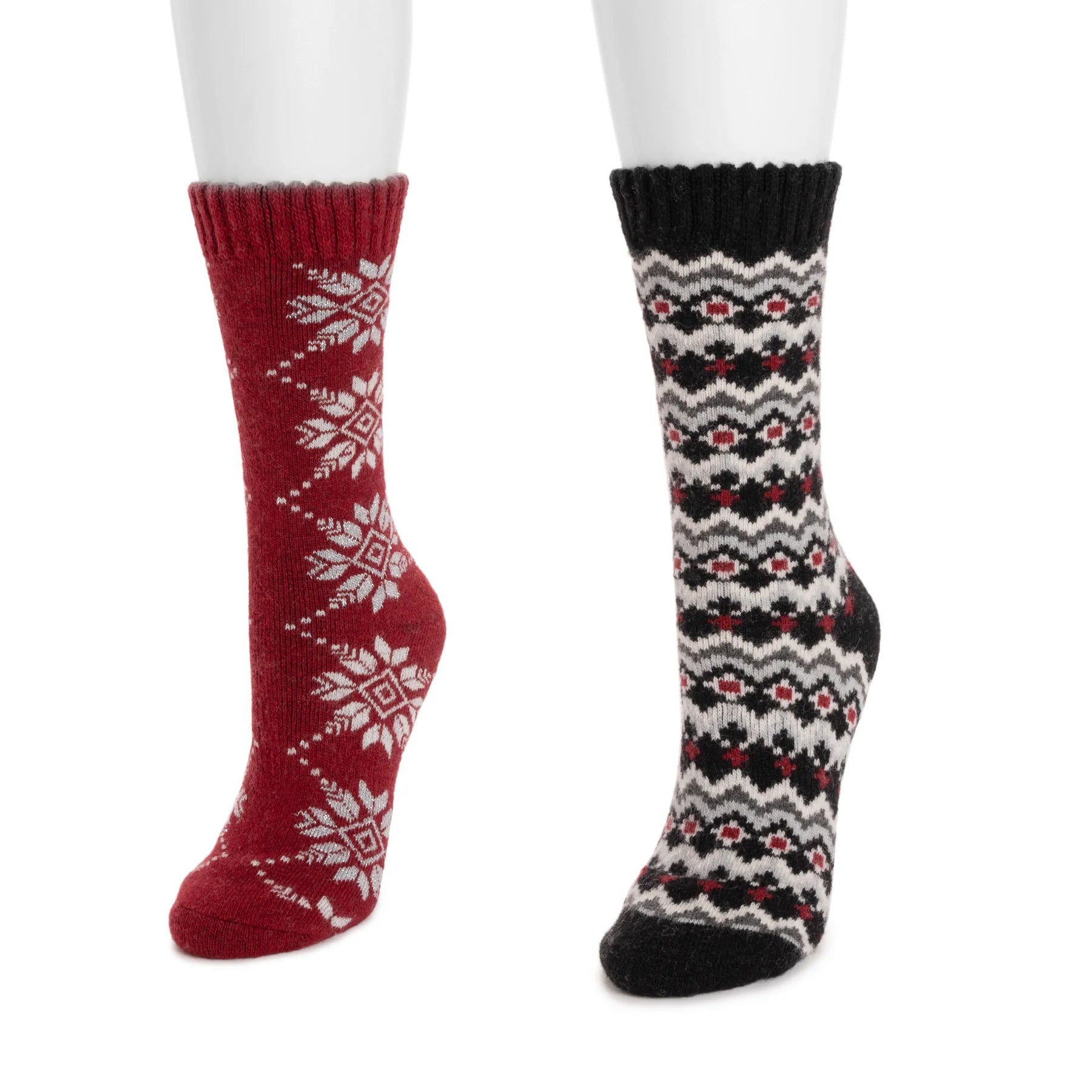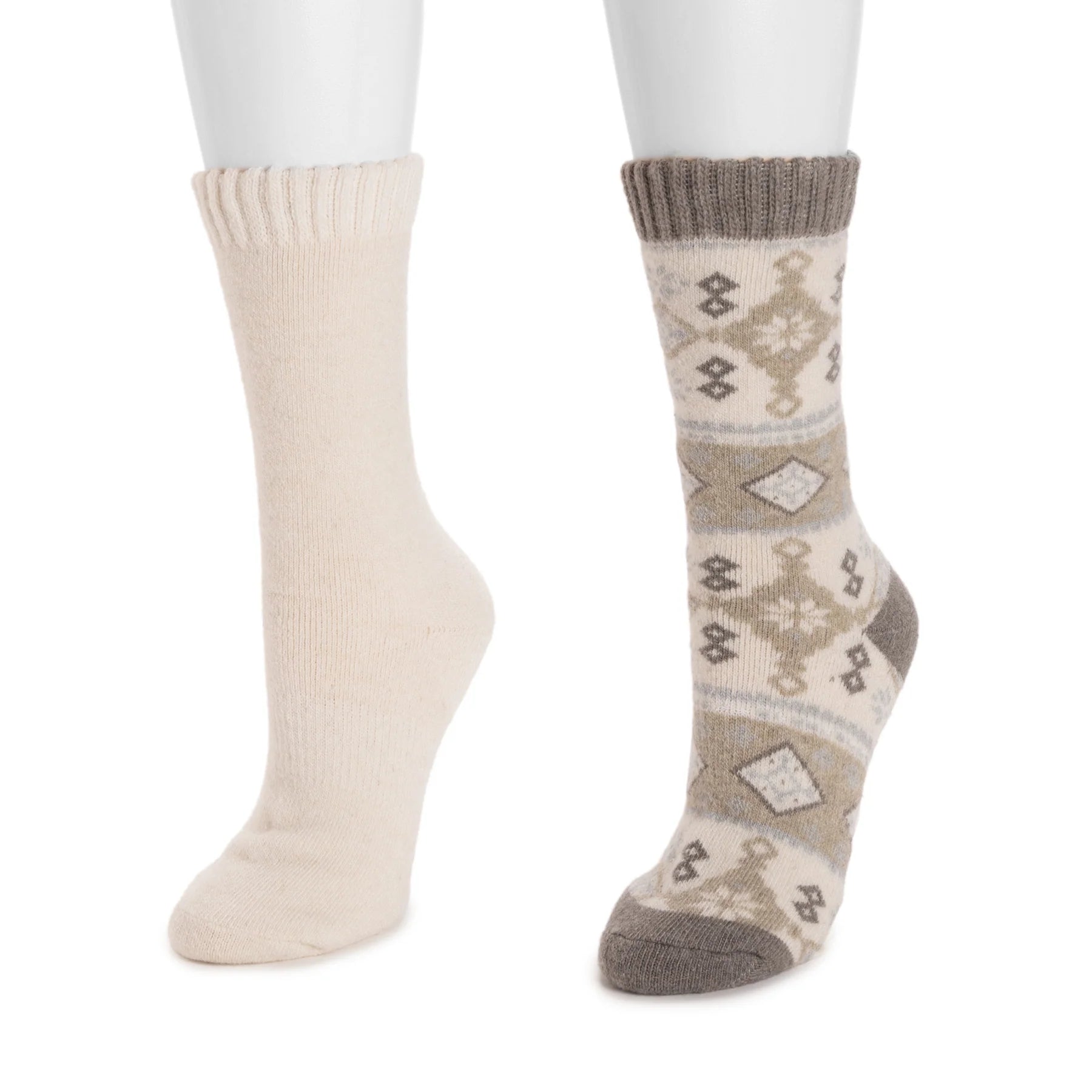 Keep the cold out and the warmth in with MUK LUKS Women's 2 Pair Pack Wool Socks. Blended with wool, these socks will not only keep toes warm, you'll also look stylish with fun patterns.