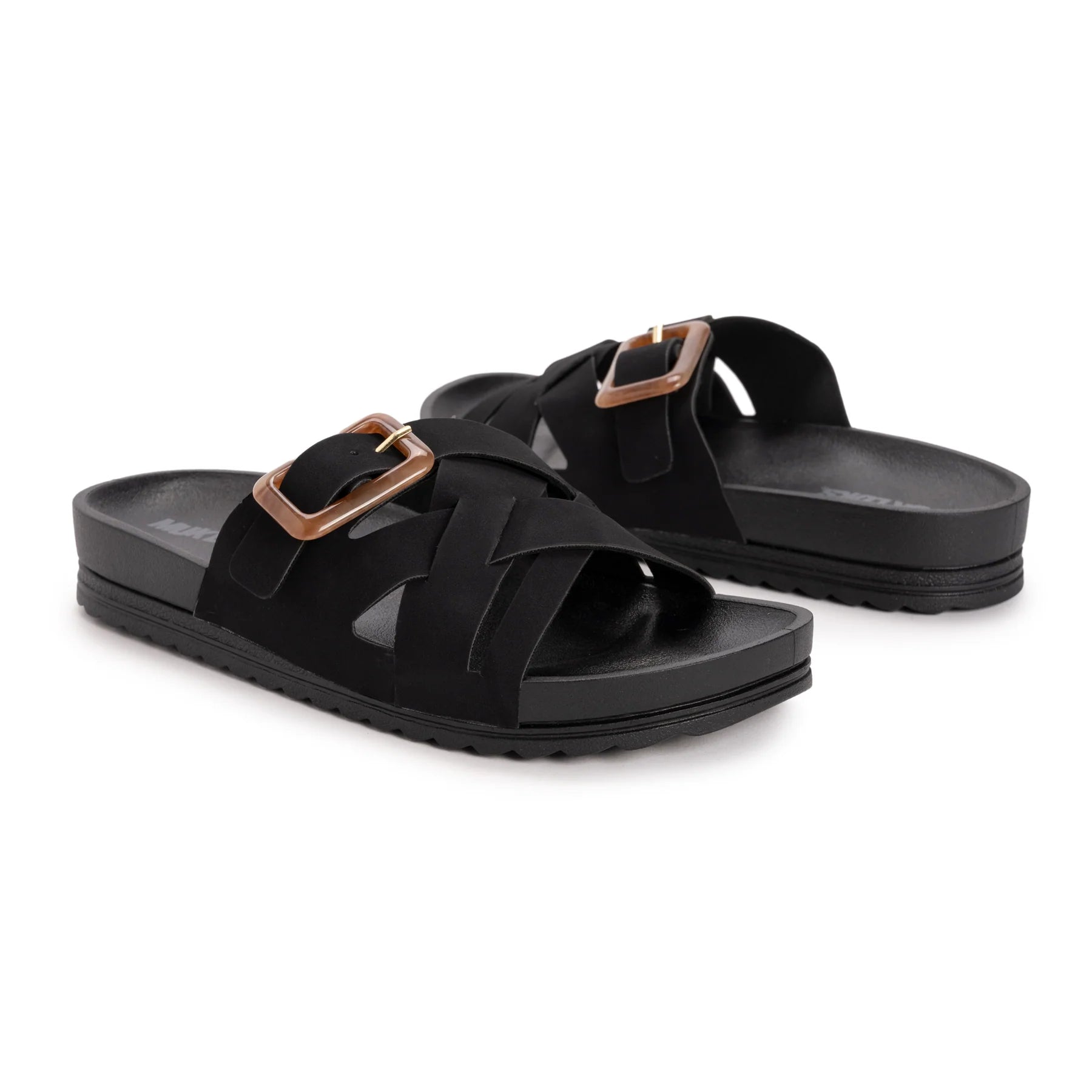 Embrace warm weather in MUK LUKS Women's Grand Sandals. With adjustable criss cross straps and cushioned insoles that mold to your foot, these fashionable sandals allow you to express your individuality while staying comfortable.