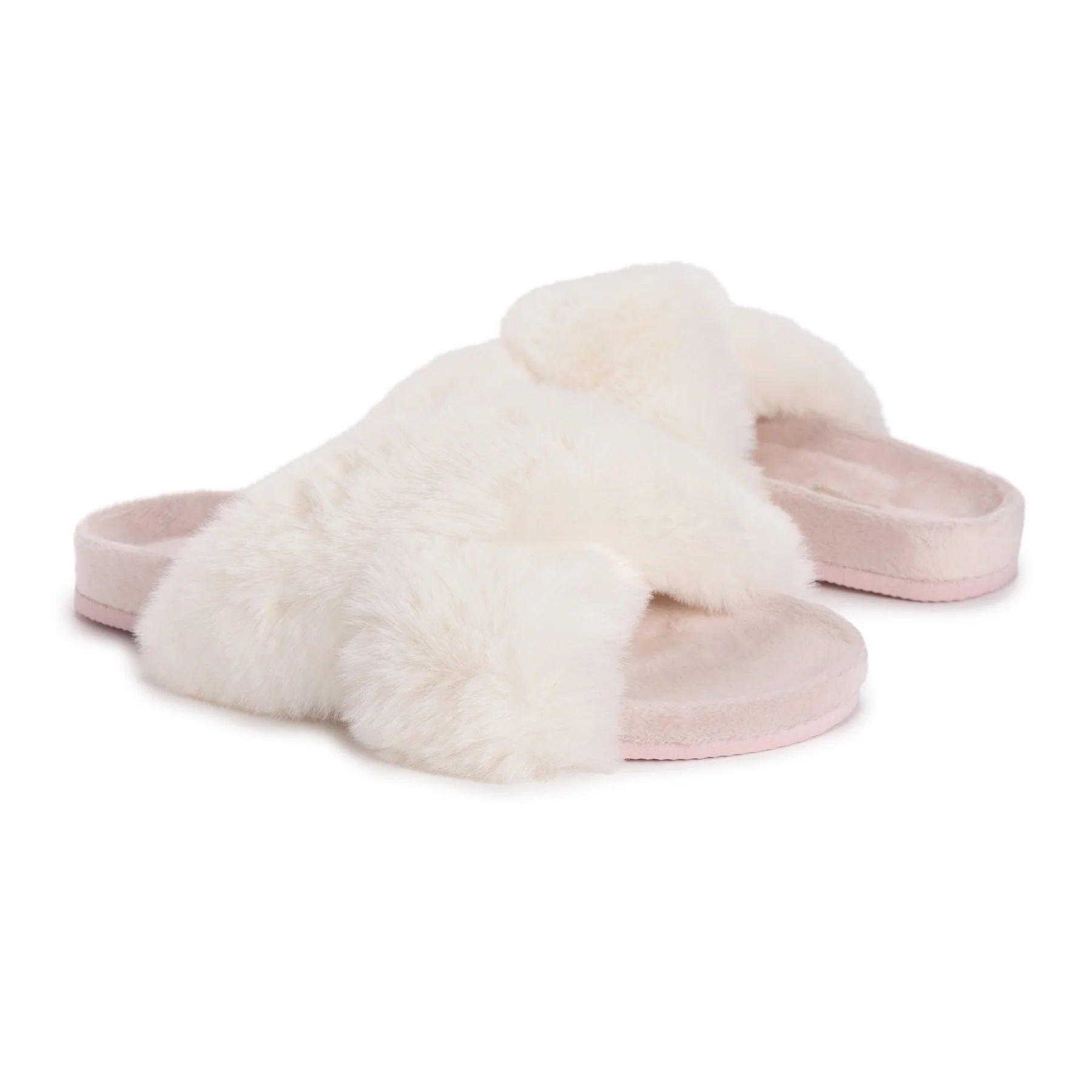 Wear your way of life in MUK LUKS® Footbed Slippers.  These vibrant slides keep feet warm with soft faux fur while foam insoles embrace your feet with all day long comfort.