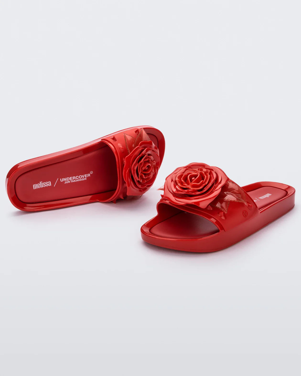 Melissa + Undercover Spike is a new version of Melissas's classic shape: the beach slide. In this super cool version, the slide gets the maxi rose adornment on the Upper strip, with translucent leaves and spikes. It is the perfect choice for those who want to add fashion information to the look of day to day.