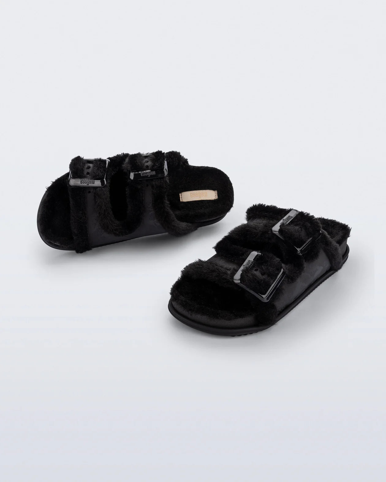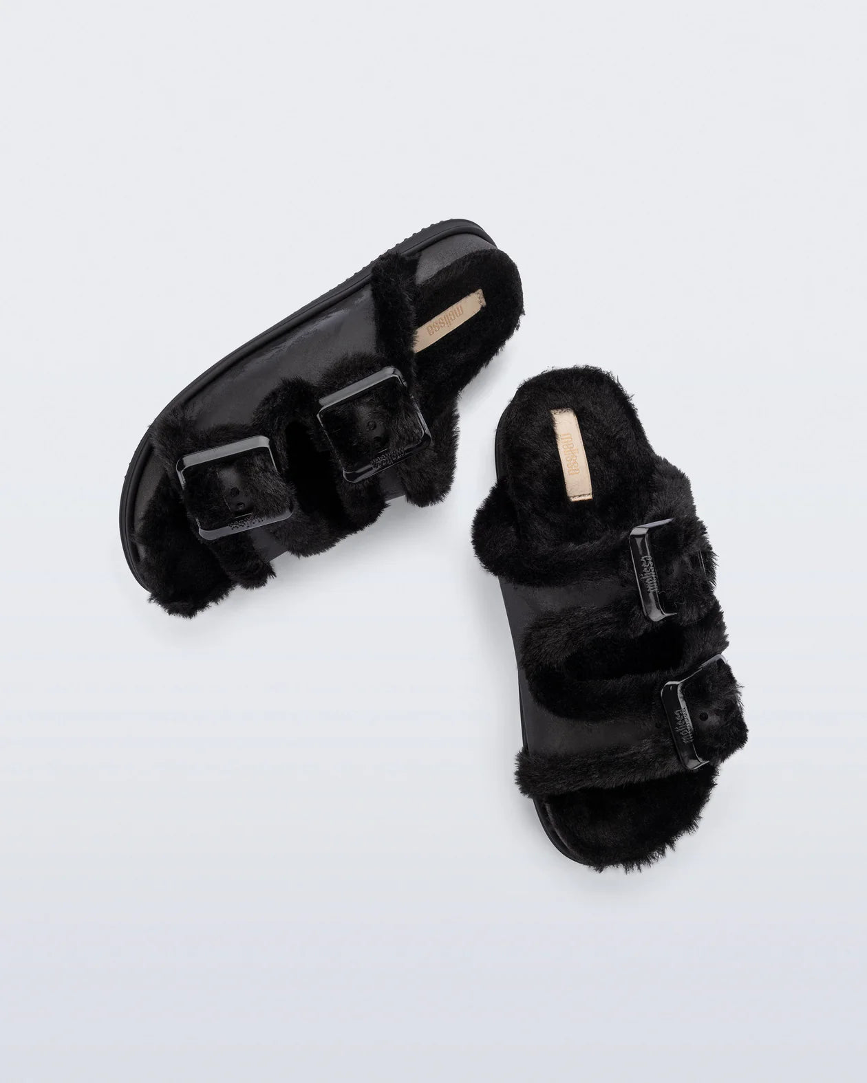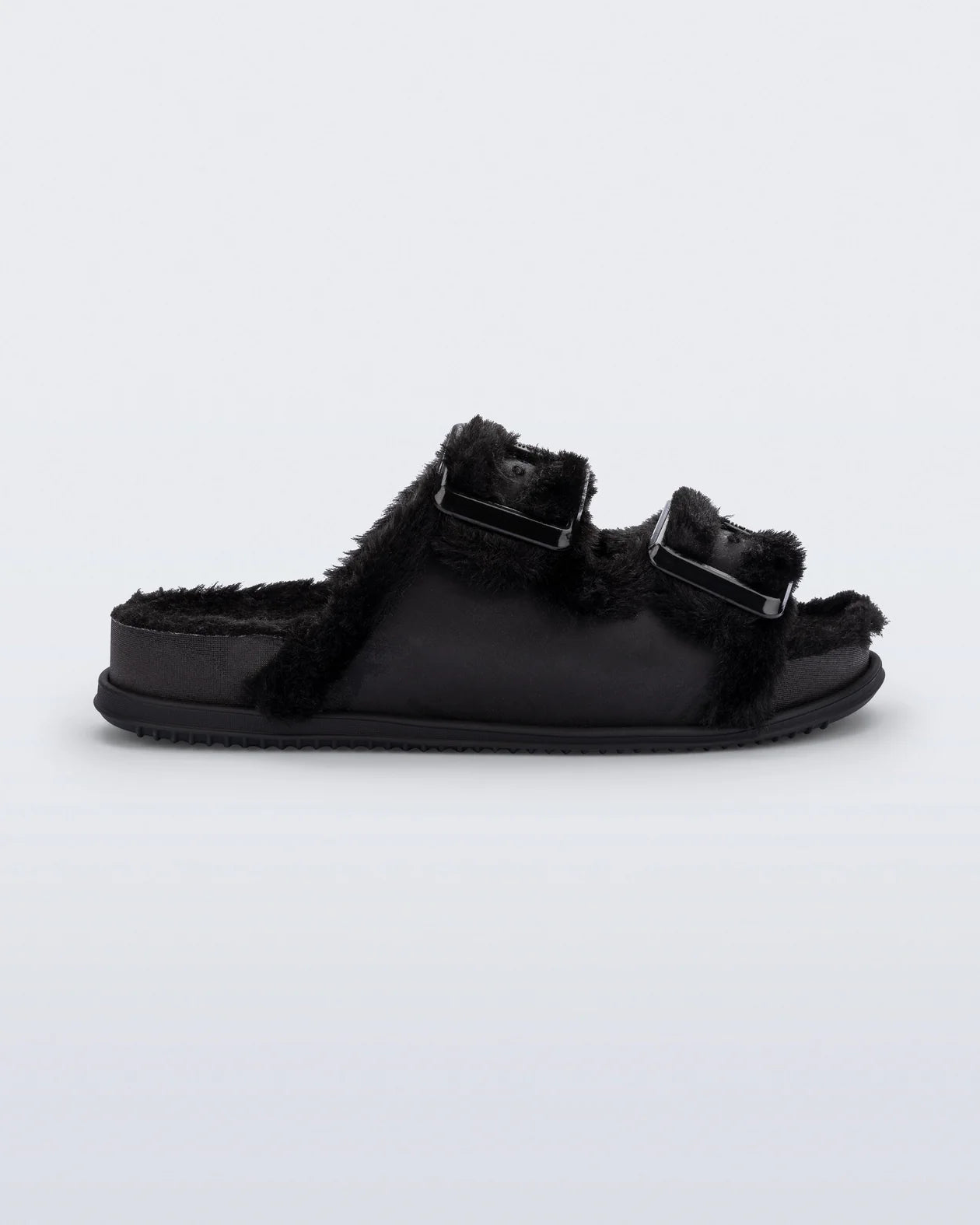 The Melissa Warm Cozy Slide keeps your feet toasty on cold days. With two straps and buckles covered in soft fur, this slide provides all the comfort you need. Made from Melflex PVC with an EVA sole, it's lightweight and durable with refined lines that add an elegant touch. This fur-lined version of the Cozy Slide is the perfect combination of fuzziness and practicality.