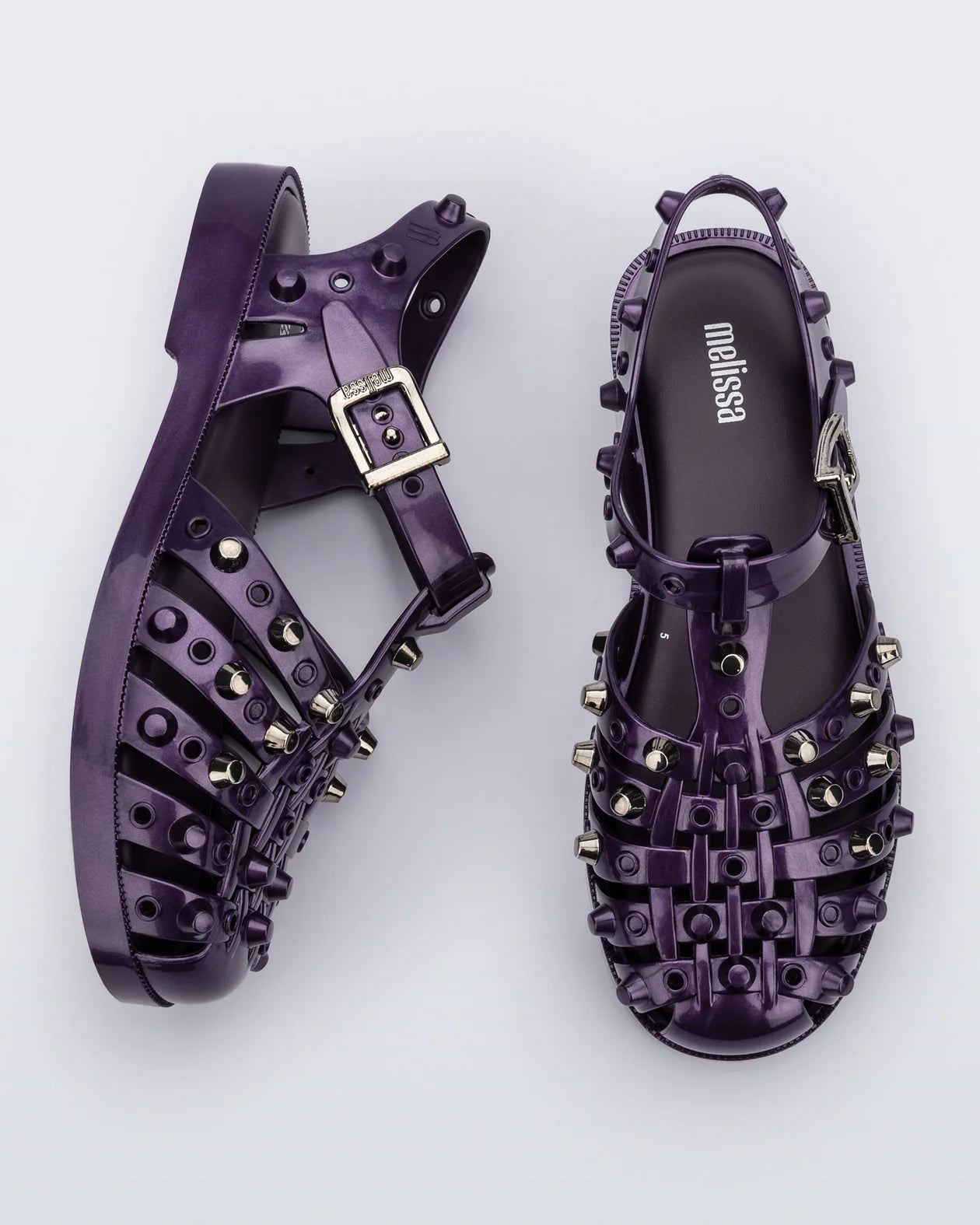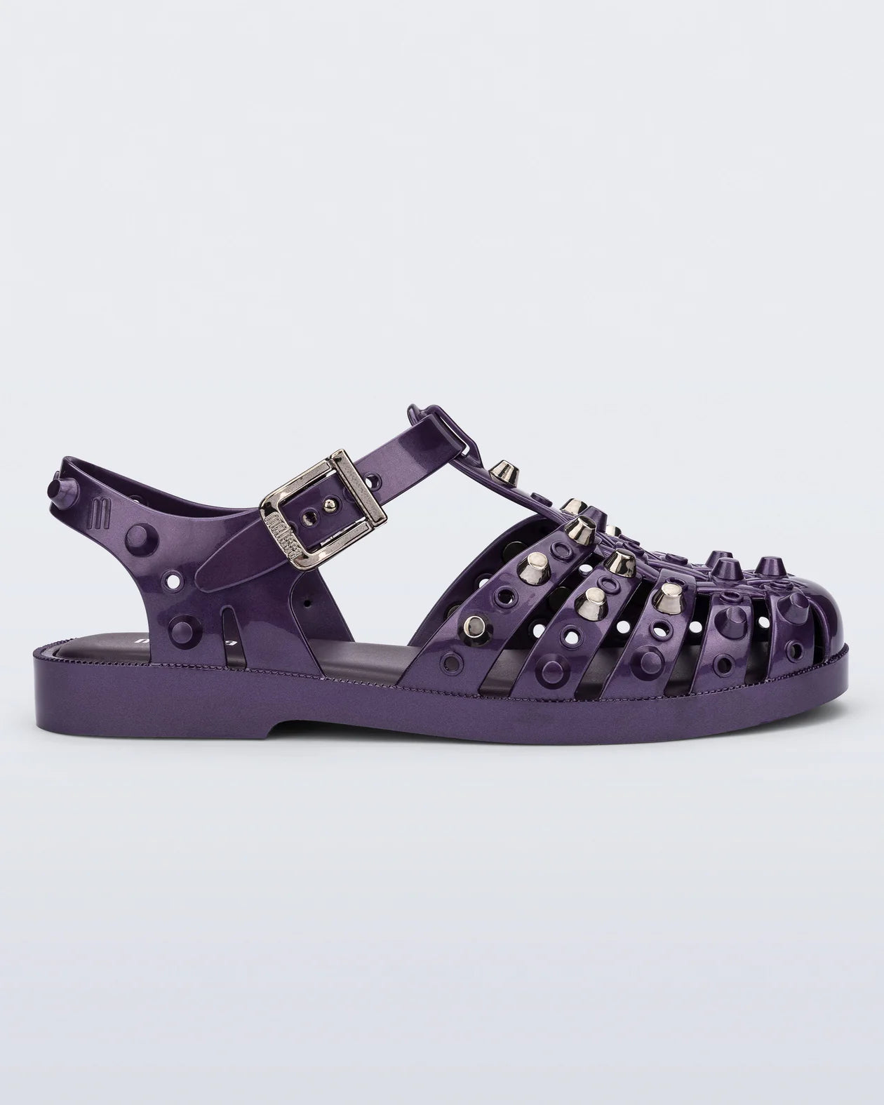 Calling all rebels. Meet the Melissa Possession Studs, the original jelly with an edge. Silver spikes line the straps, adding rebellious flair to the iconic fisherman-inspired silhouette. Despite the spikes, they're crafted from 100% Melflex, making them as comfy as ever. Your Possession, your way, rule breaker.