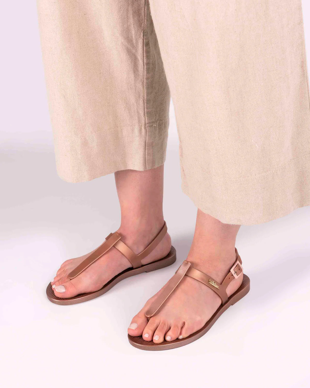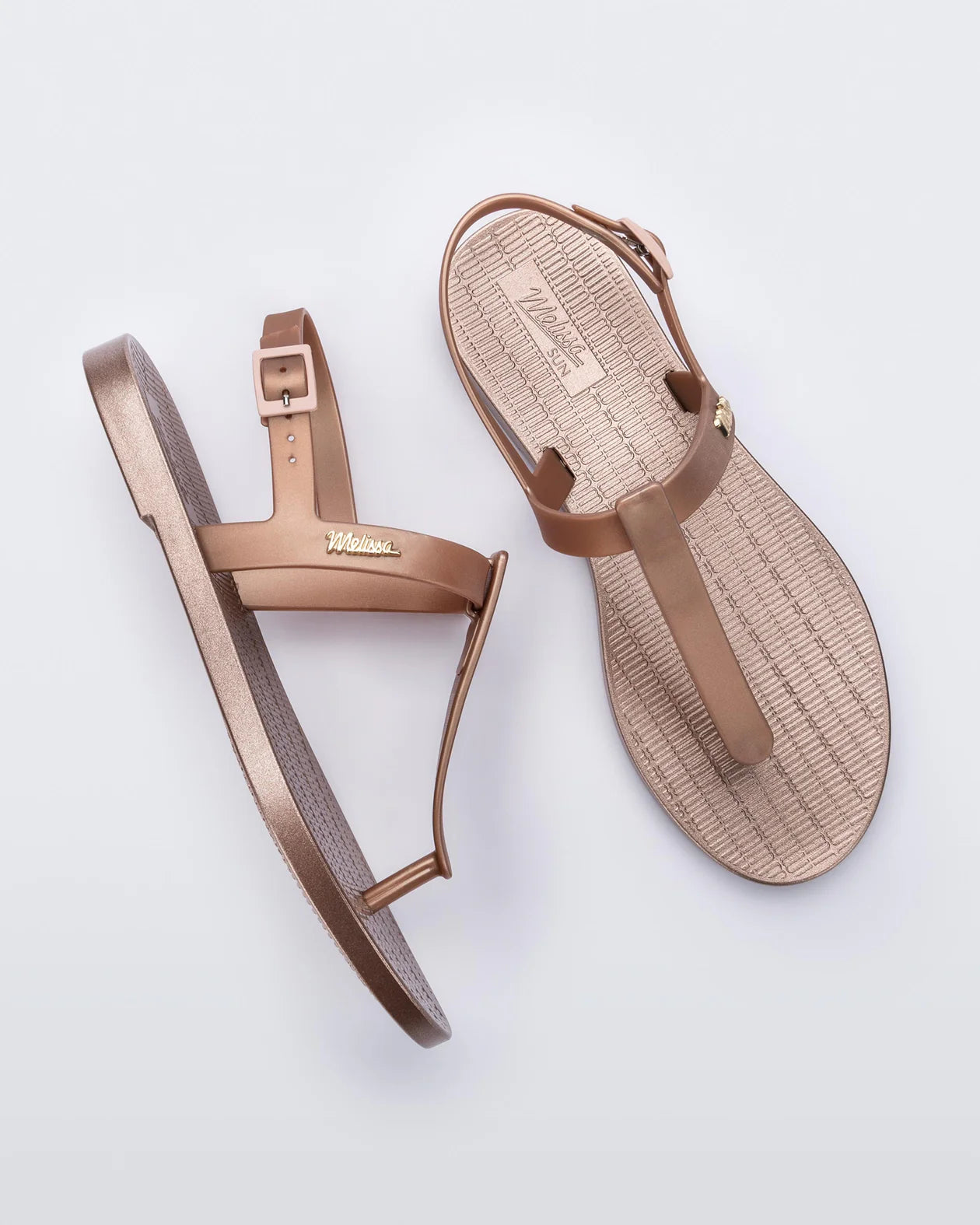 Nothing is more summery than a fresh and clean shape. Melissa Sun Ventura Metallic is a sandal with Melflex straps and a texture reminiscent of beach mats. New metallic colors are offered in the new design, bringing even more glamour to your summer. An excellent choice to put together casual looks and as a gift.