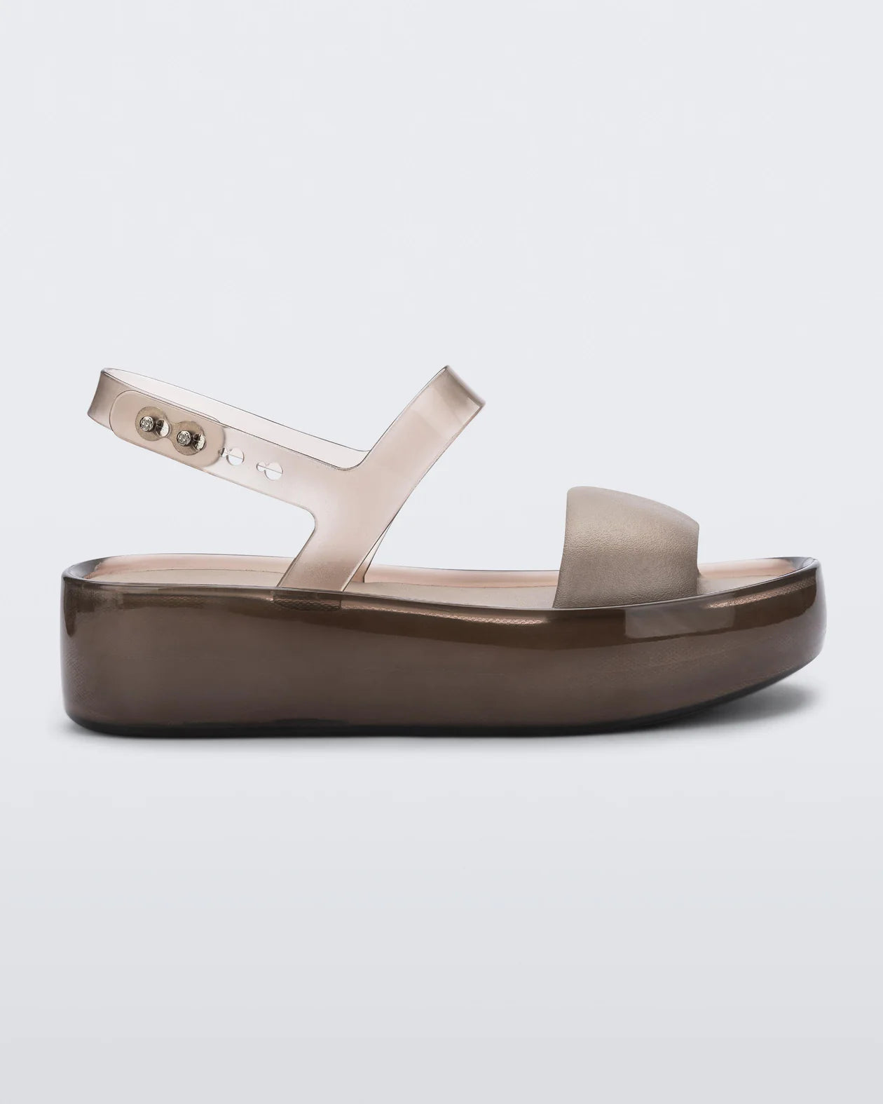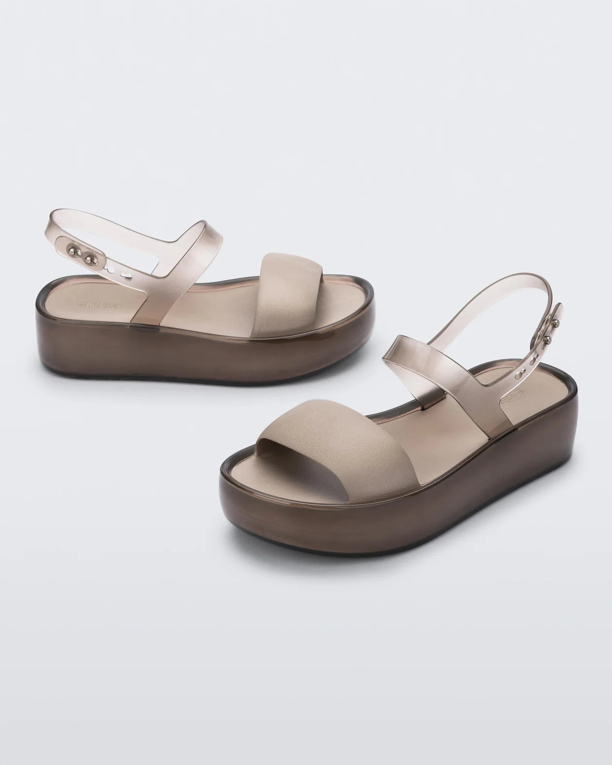 The Melissa Float Platform is your new favorite two-strap sandal. With a stylish mix of translucent jelly shine and solid matte finishes, the textural contrasts keep this platform visually interesting while a blend of PVC and EVA make it unbelievably comfortable.