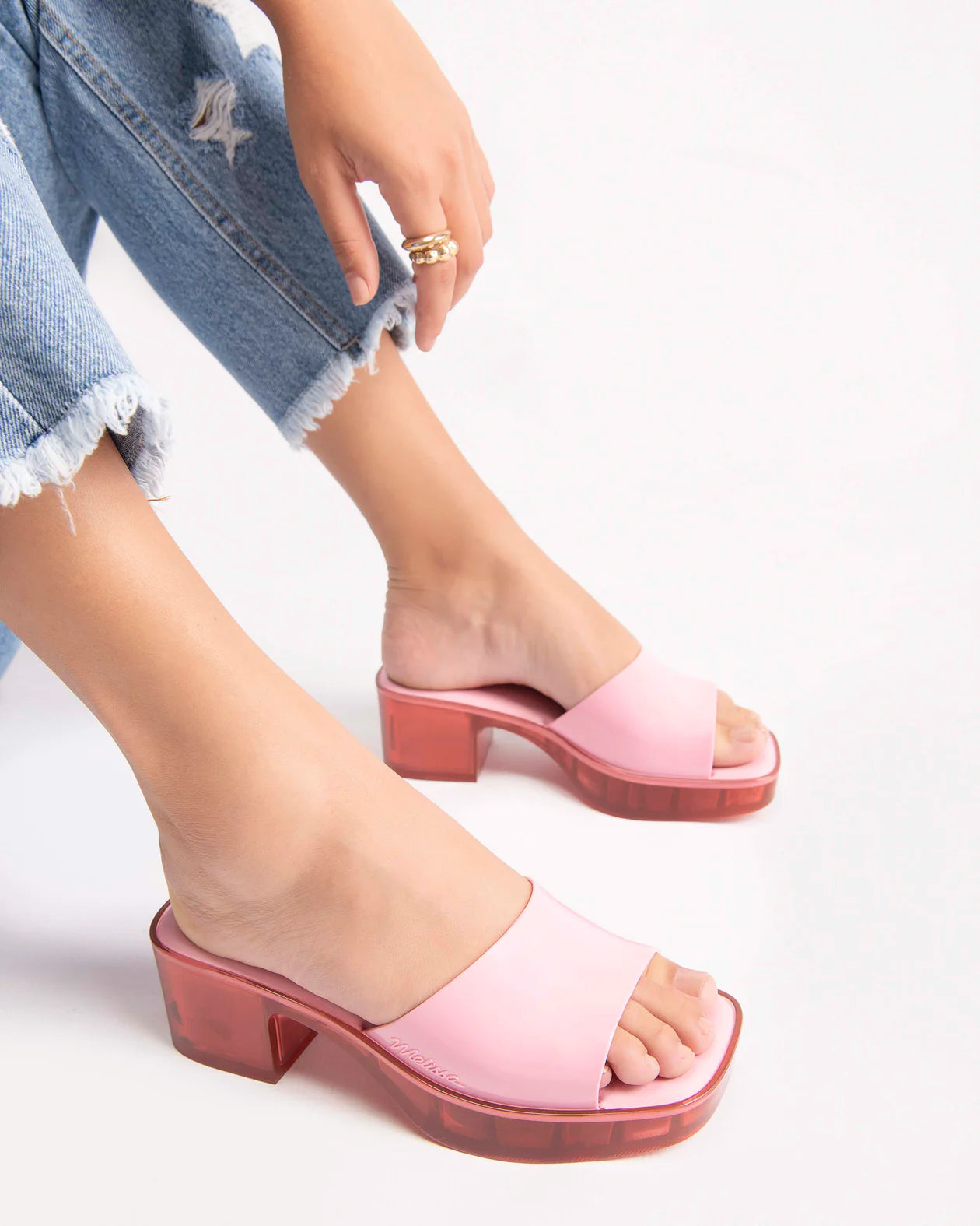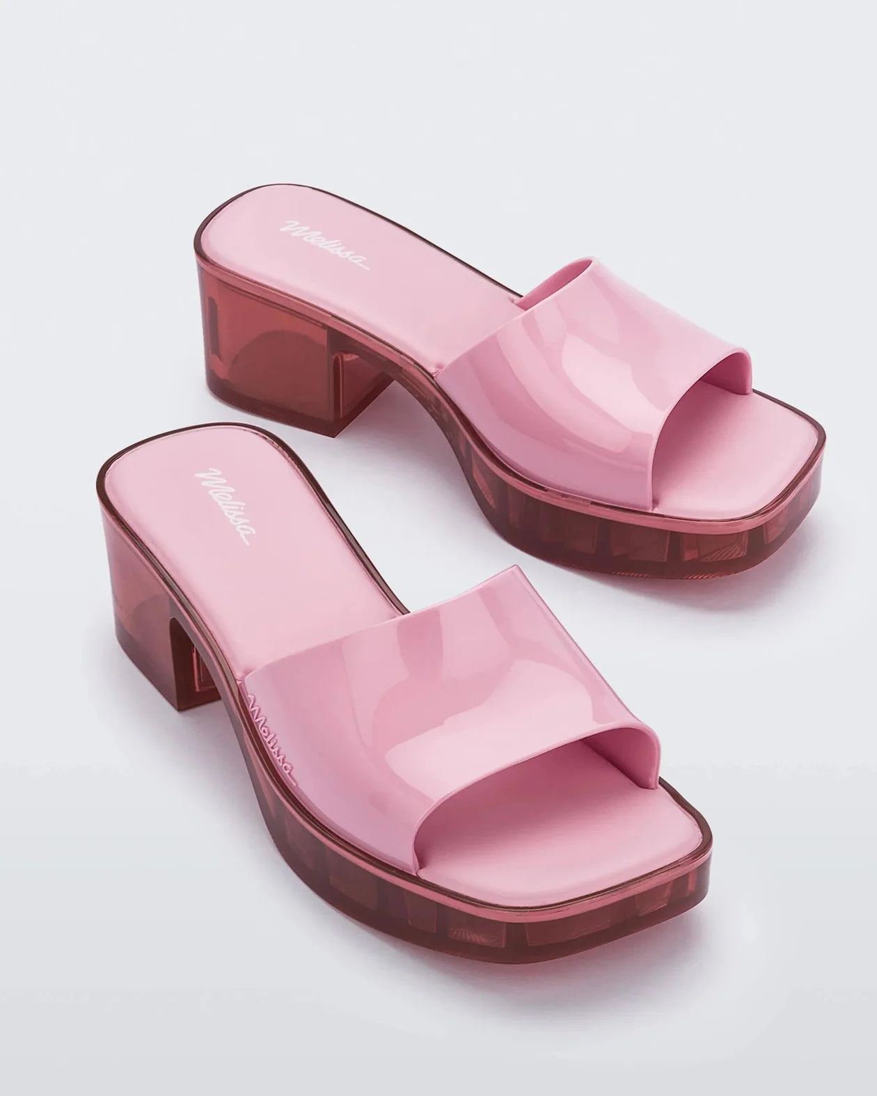 Modelled on the sandals that defined the 90’s and early 00’s, the Melissa Shape is the new must-have for anyone looking to impress with a girly, yet cool look. The new Melissa Shape is comfortable and has the popular square toe with a low block heel. A main feature is the transparent sole which is a tribute to Melissa s pure DNA where structure, lightness and technology become a hype feature of style.