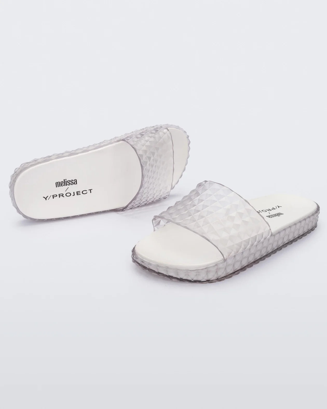 With a style that merges street energy with seductive silhouettes, the Paris-based brand Y/Project is well-established in the market of luxury fashion worldwide. With Glenn Martens as its Creative Director since 2013, the brand blends conceptual and inventive details in playful proportions with historical references. Its collaboration with Melissa brings us extraordinary shapes that are truly works of art. What’s new is the perfect match between the shape, which follows that of the much-loved beach slide, and the collab’s classic texture. The result is a model that is both casual and elegant, to create iconic looks full of style.
