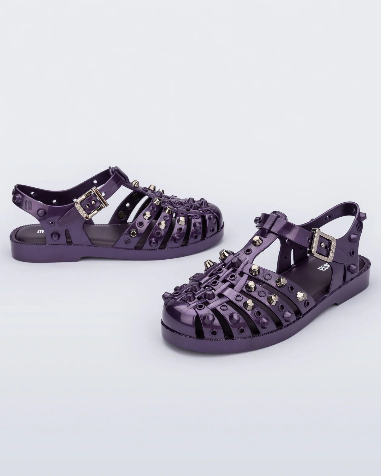 Calling all rebels. Meet the Melissa Possession Studs, the original jelly with an edge. Silver spikes line the straps, adding rebellious flair to the iconic fisherman-inspired silhouette. Despite the spikes, they're crafted from 100% Melflex, making them as comfy as ever. Your Possession, your way, rule breaker.