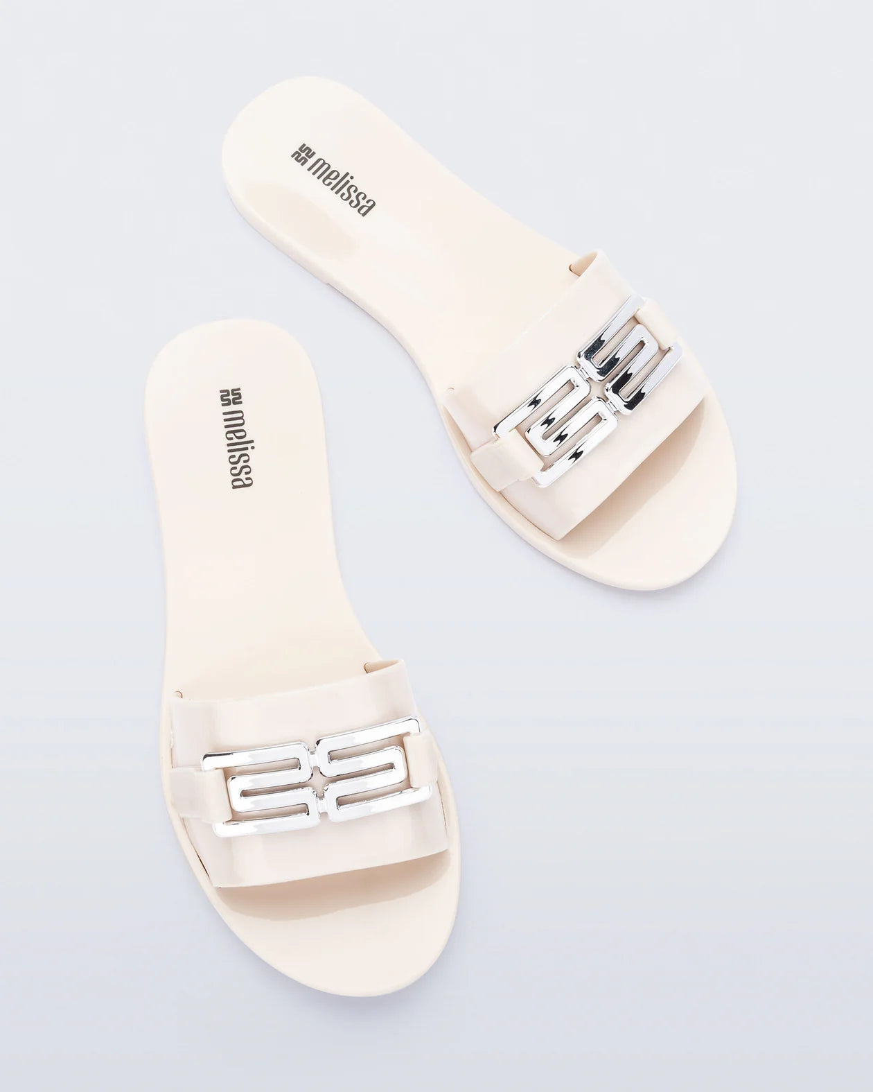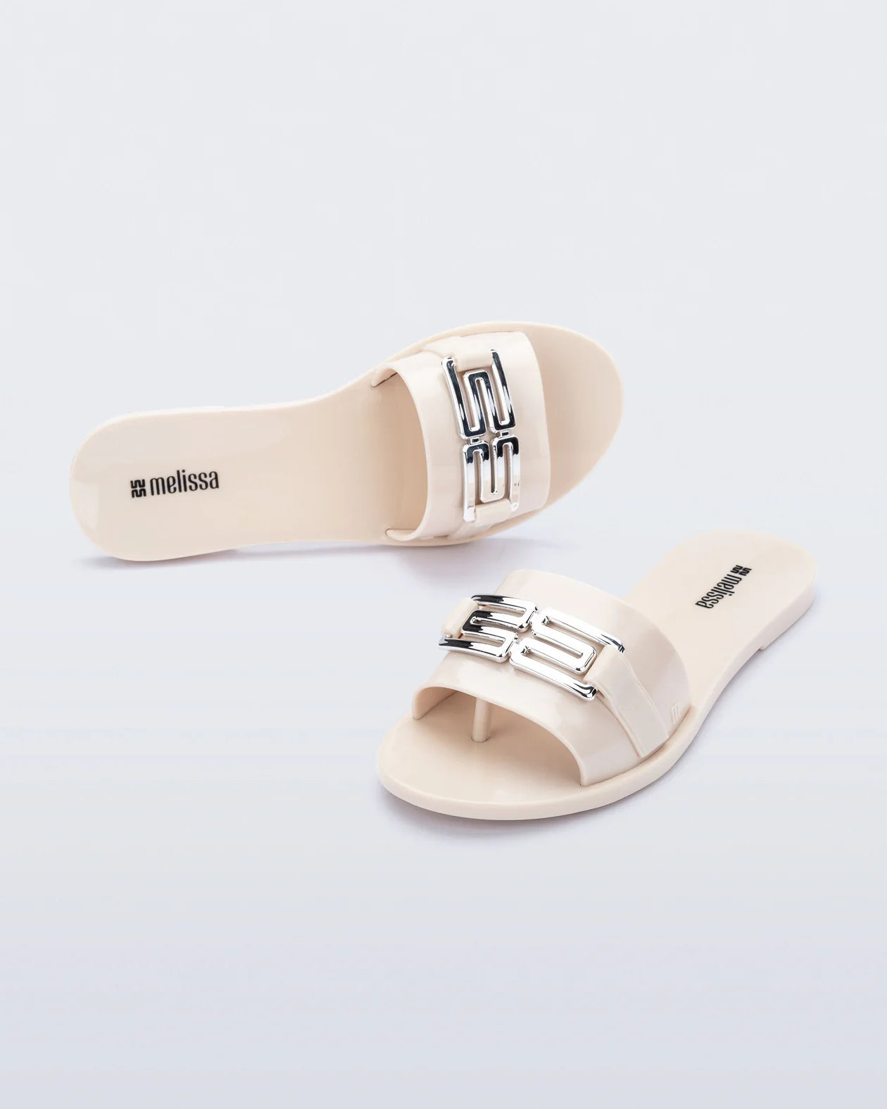 When your warm weather wardrobe calls for a sandal that's light and airy but also classy and comfy, reach for the Babe M Chic Slide, with its metallic detail and breezy look.