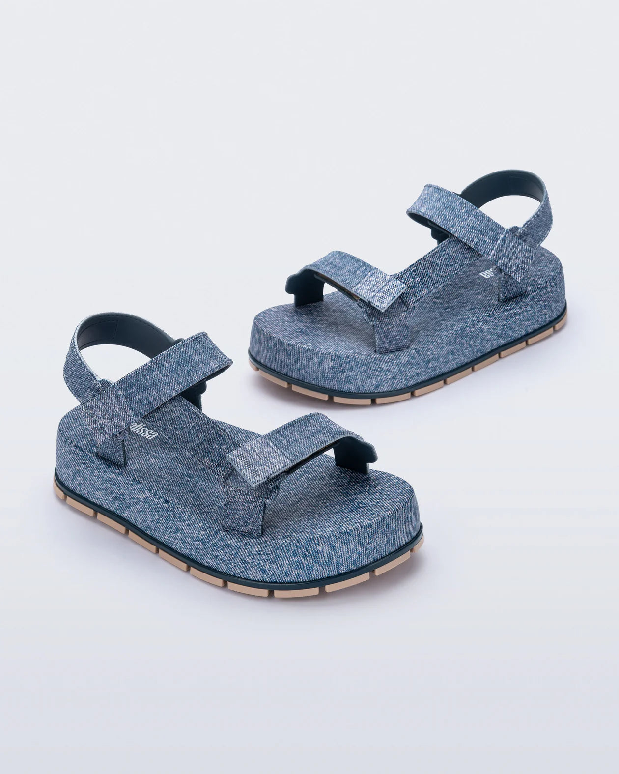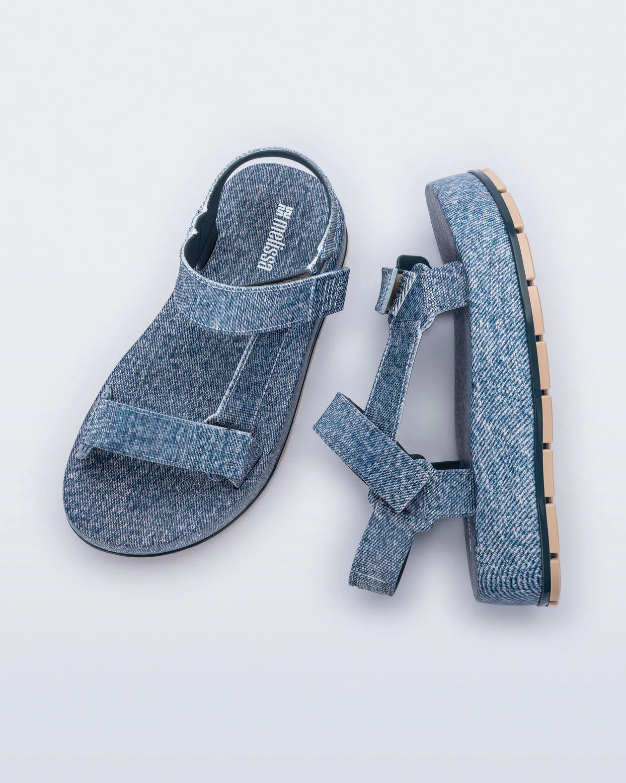 Denim never goes out of style, and the Flowing Denim Platform takes it above and beyond. This sporty, open-toed platform has a textured-denim look with multiple Velcro straps, a comfy sole and no-slip traction. It's all in the jeans.