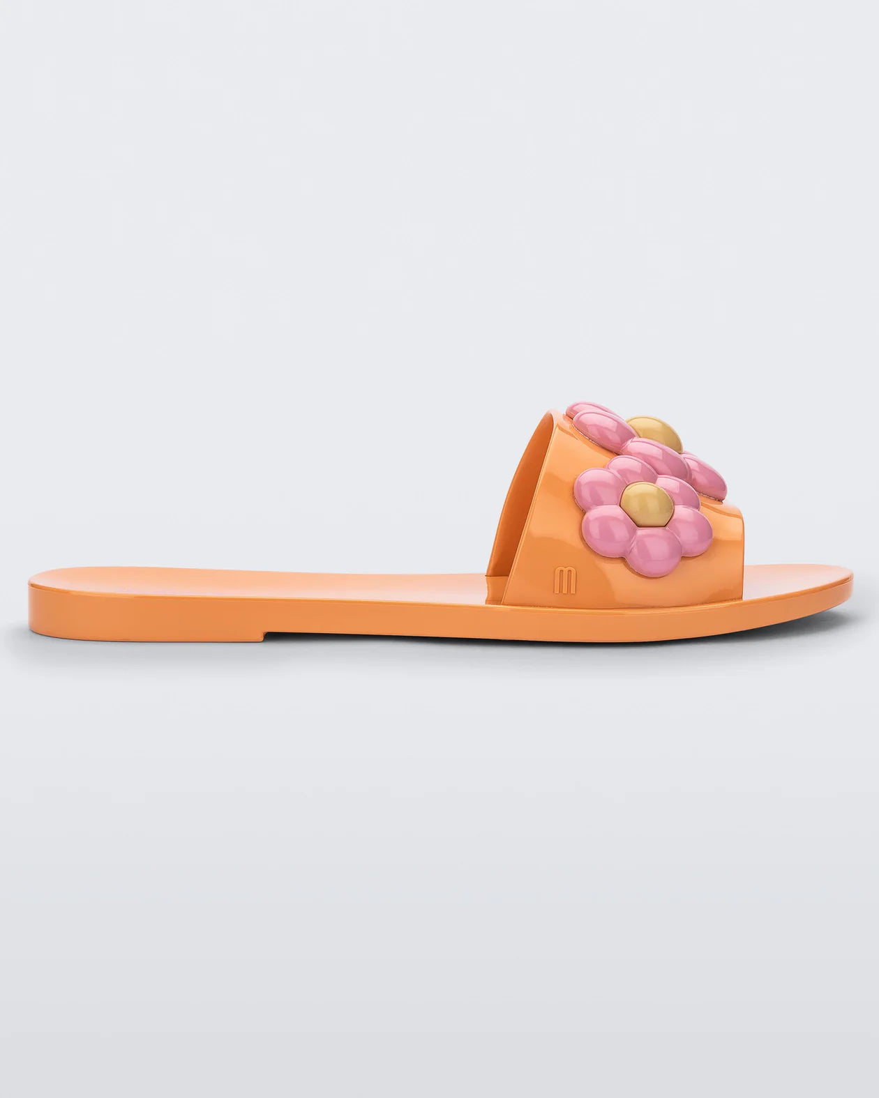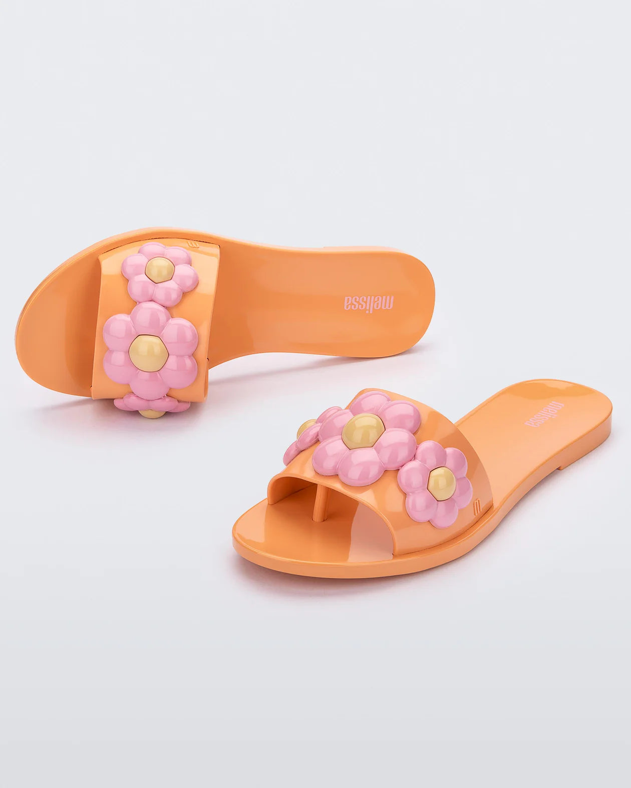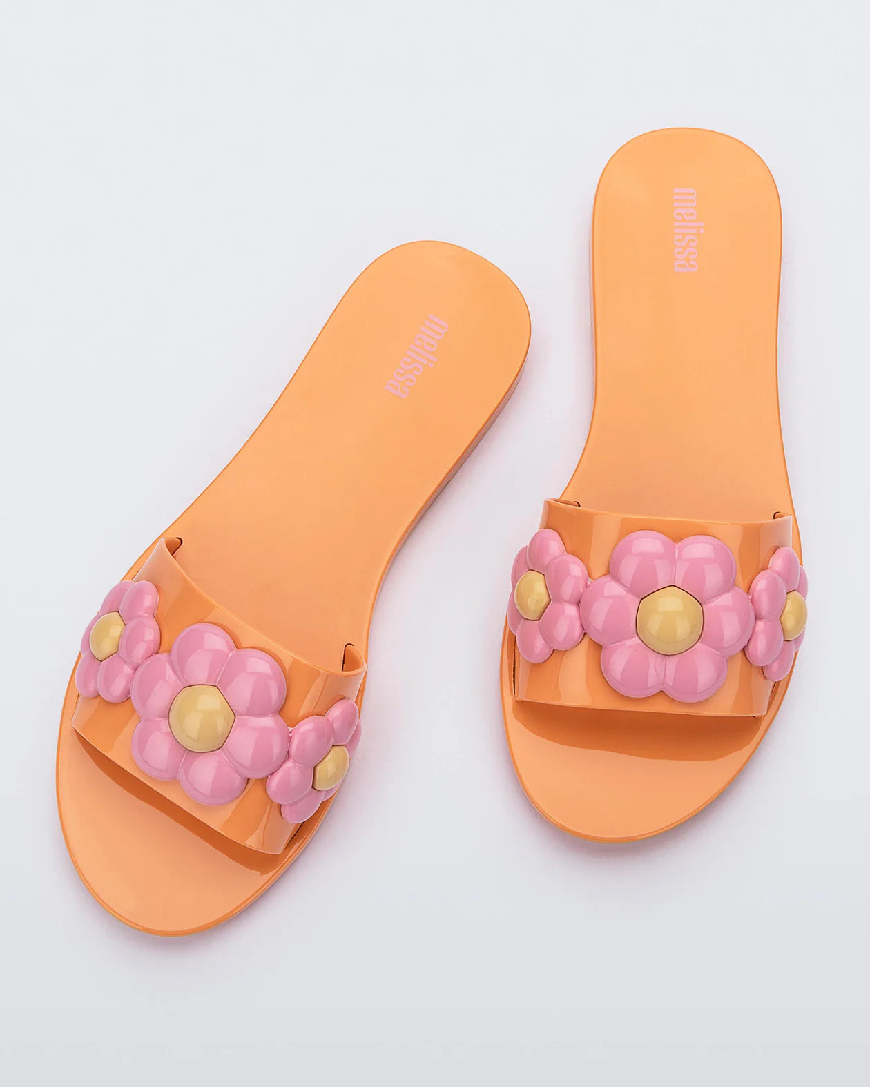 Melissa Babe Spring is a flat sandal with a wide strap on the upper with maxi flowers, which makes it a nostalgic, fun model that has everything to do with sunny days. The color palette translates the fresh and laid-back vibe of the hottest days. It's perfect to wear with dresses and skirts.