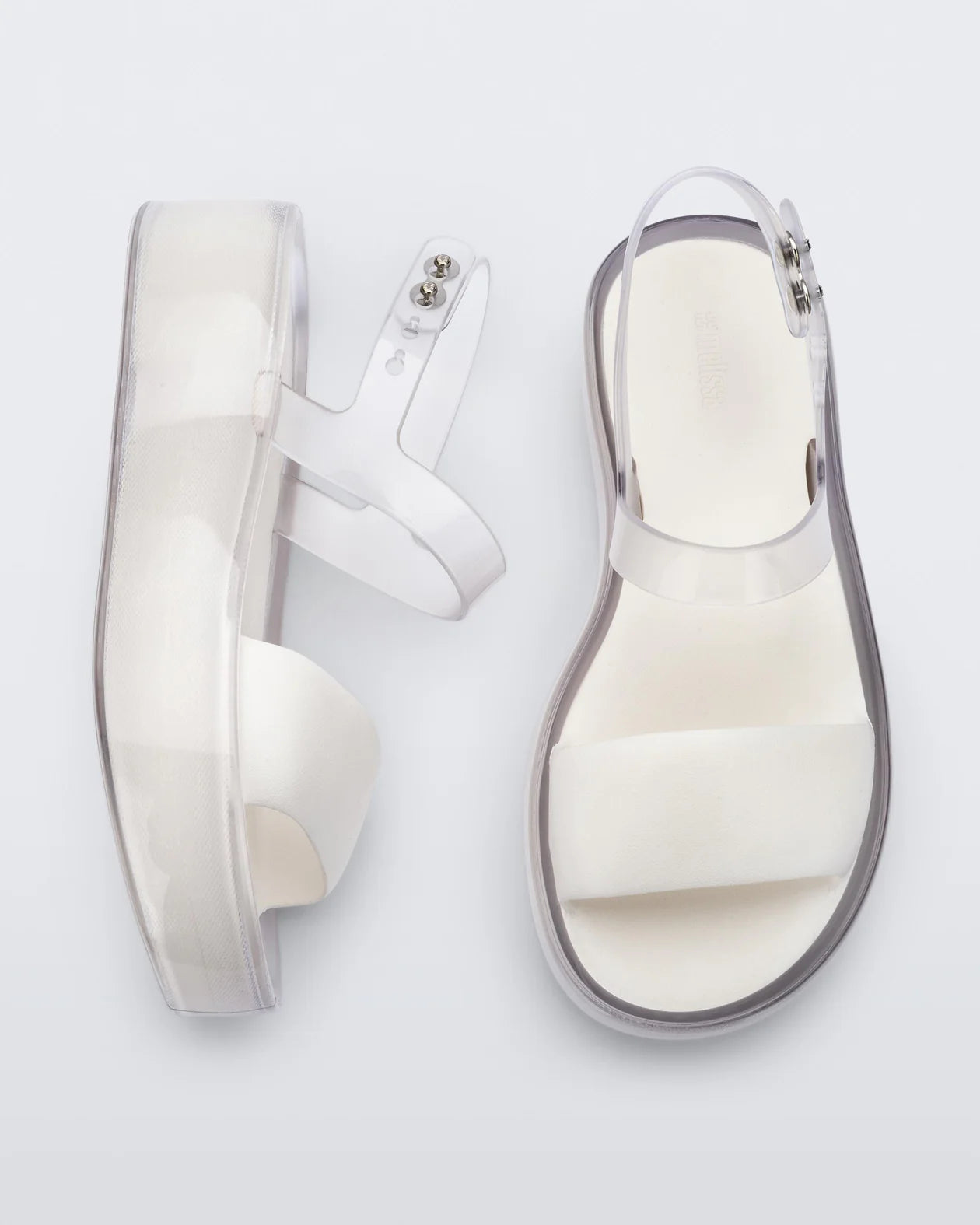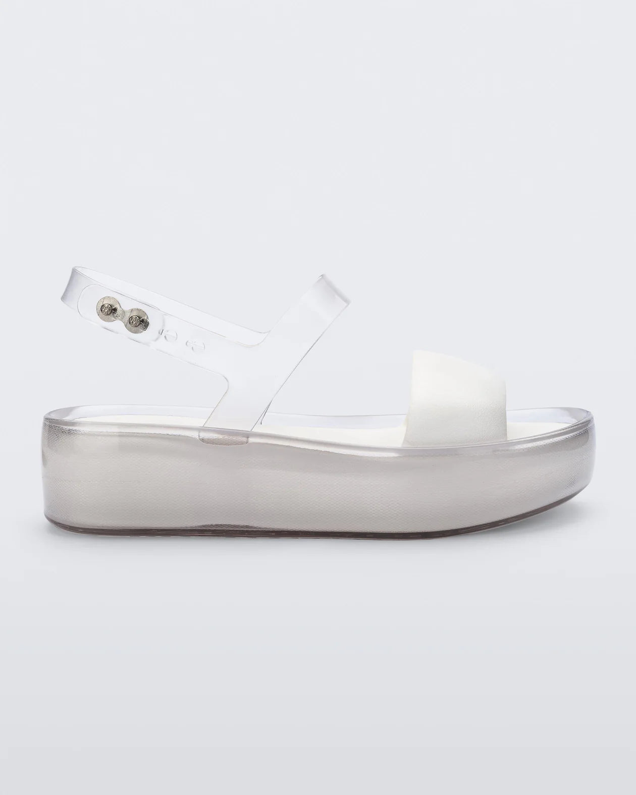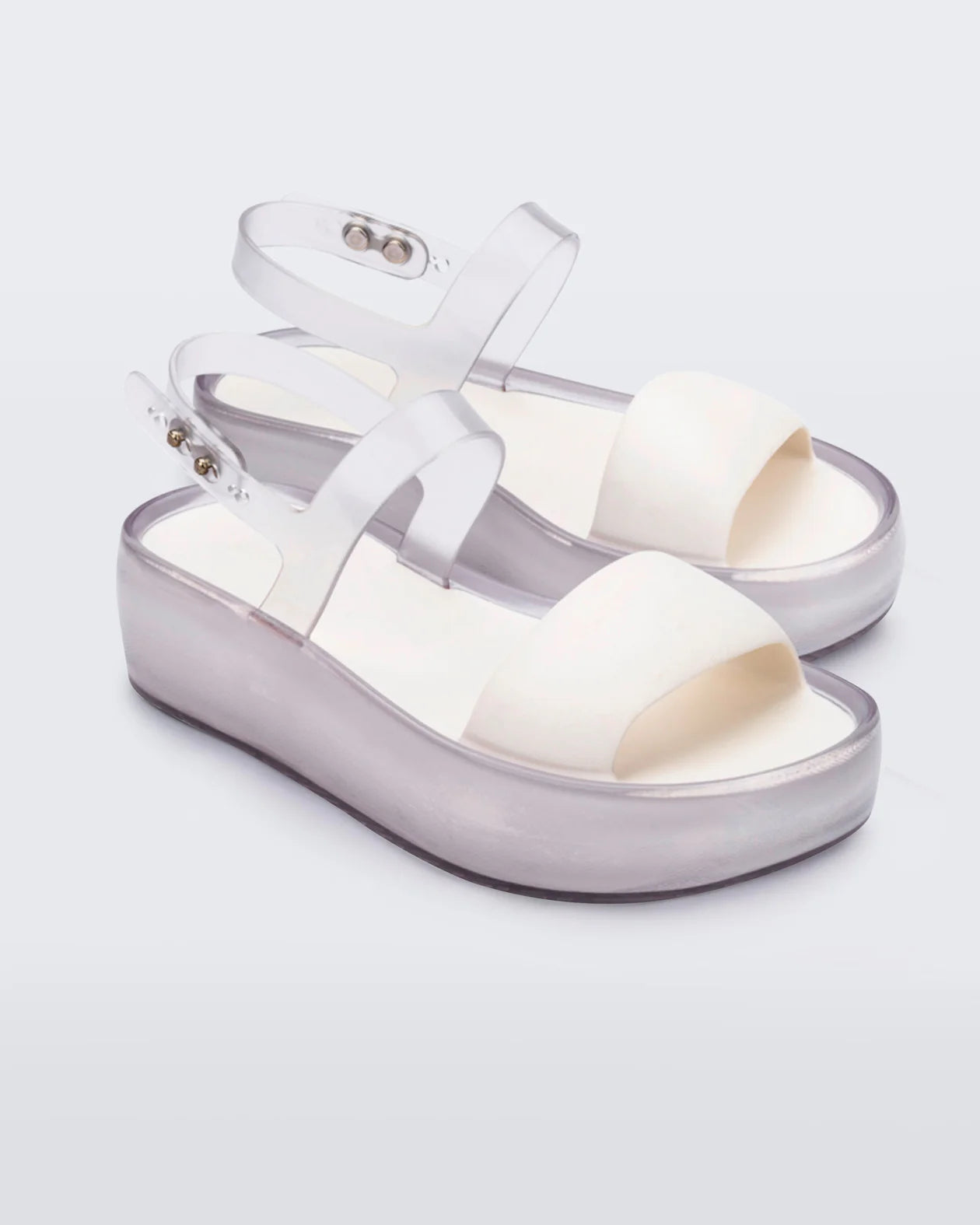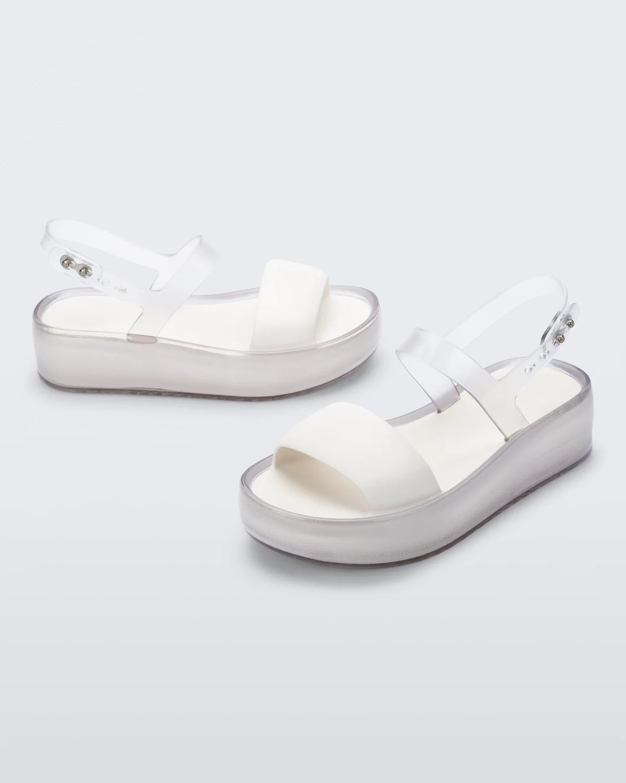 The Melissa Float Platform is your new favorite two-strap sandal. With a stylish mix of translucent jelly shine and solid matte finishes, the textural contrasts keep this platform visually interesting while a blend of PVC and EVA make it unbelievably comfortable.