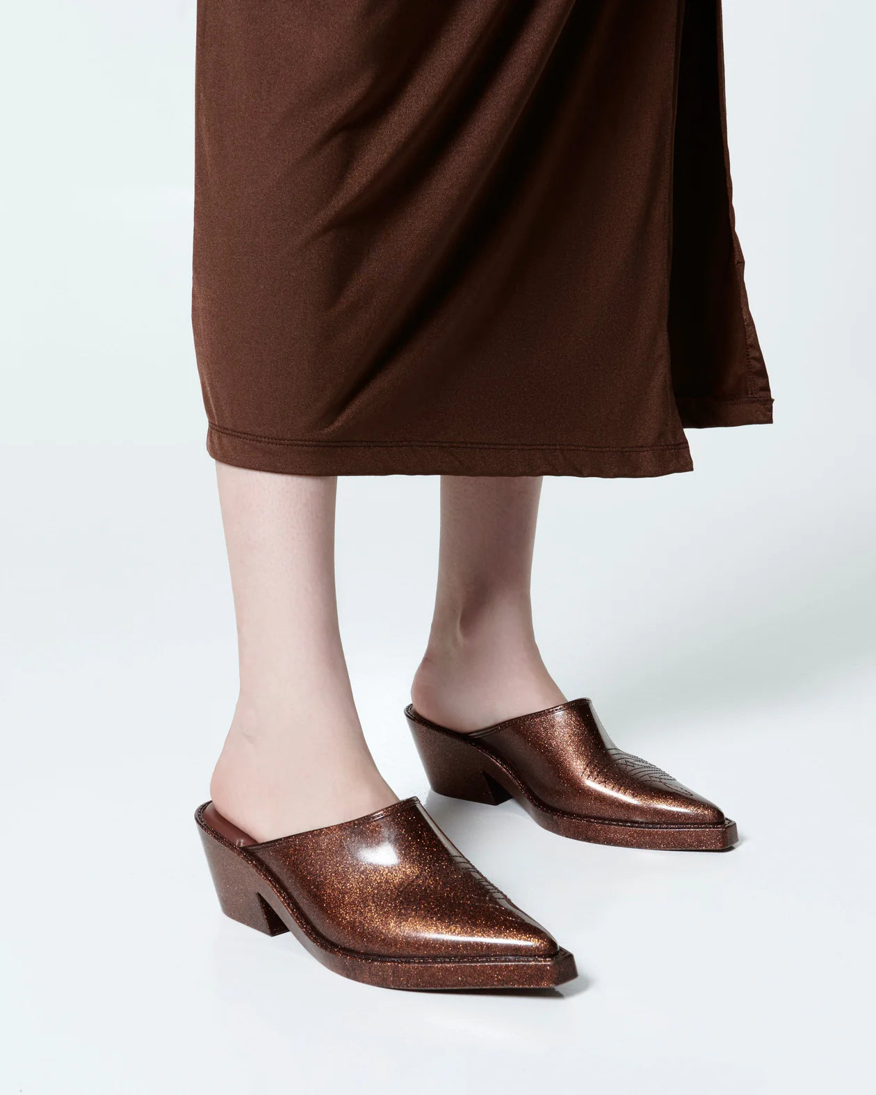Giddy up. The Texas Mule takes another western style and reinvents it in classic Melissa fashion. With a modern color palette and stitching effects on the upper, this irreverent design appeals to any cowboy or cowgirl ready for the rodeo or the festival.