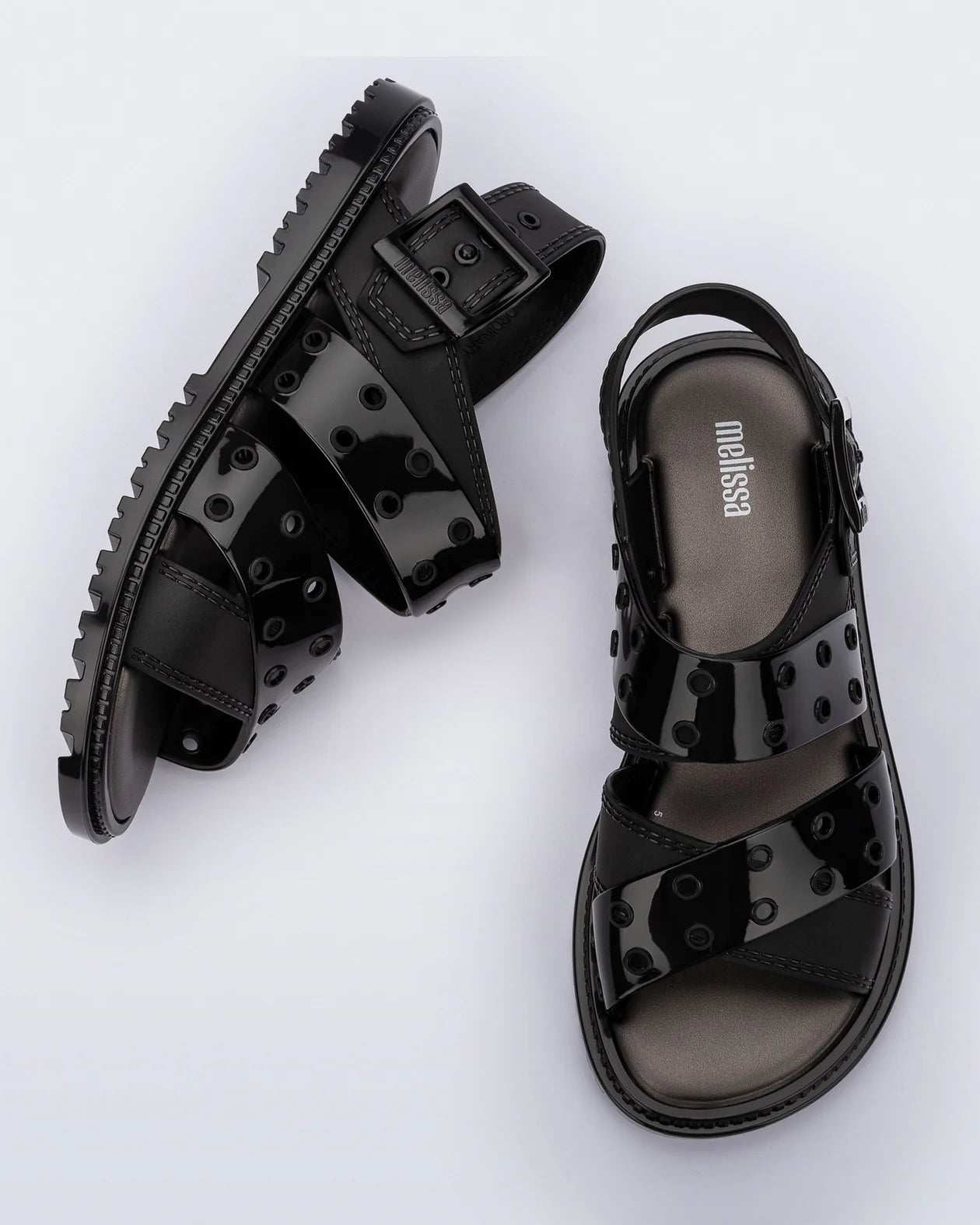Your passport to comfort and adventure. The all-new Melissa Lock Sandal adds a little something extra to your every day with its thick, perforated cross straps, and an adjustable ankle buckle so you can explore securely and in style everywhere you go.