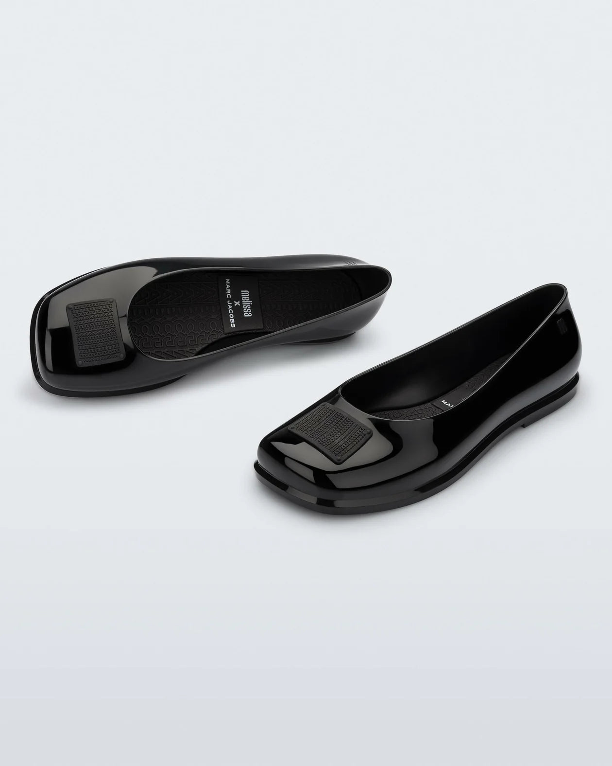 Our Ruby ballet flat gets a designer makeover with this dreamy Marc Jacobs collaboration. The Melissa Ruby + Marc Jacob ballerina boasts a square toe, metallic finish, and Marc Jacobs logo. With a soft insole you'll be feeling light, casual, and never cuter.